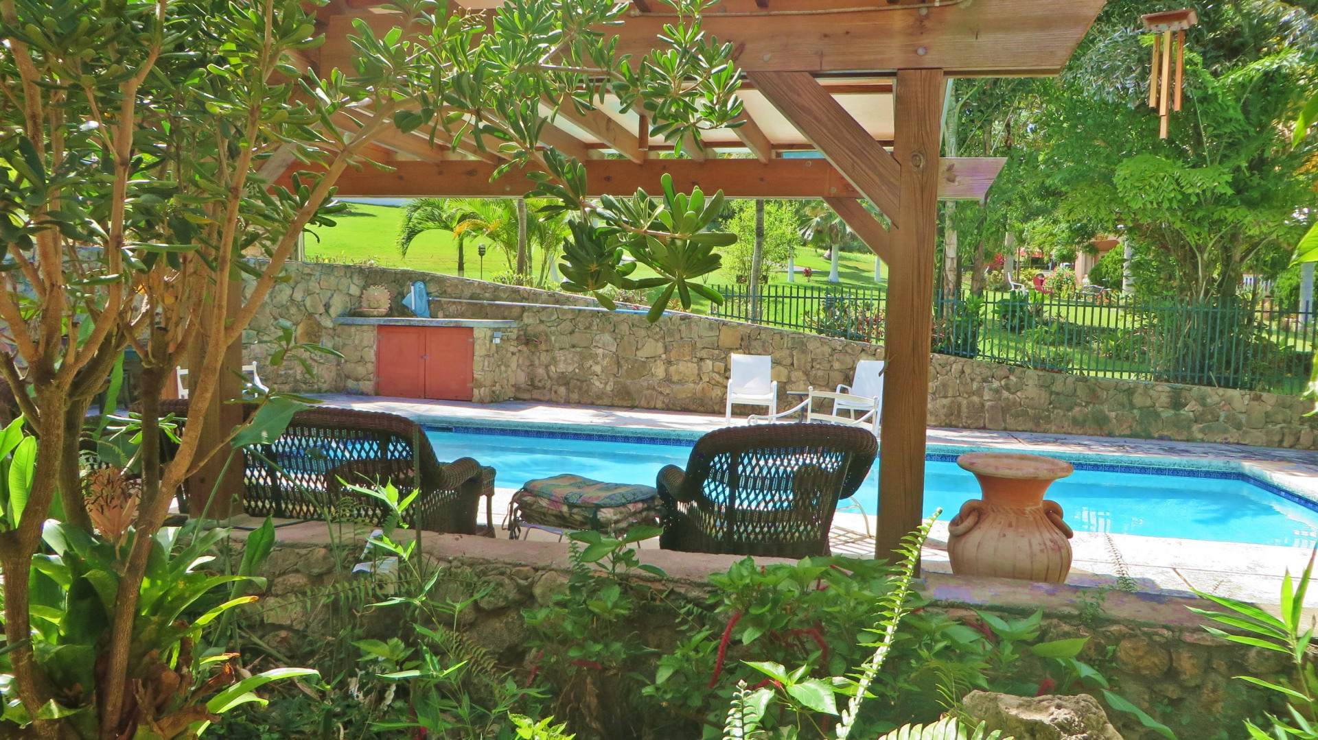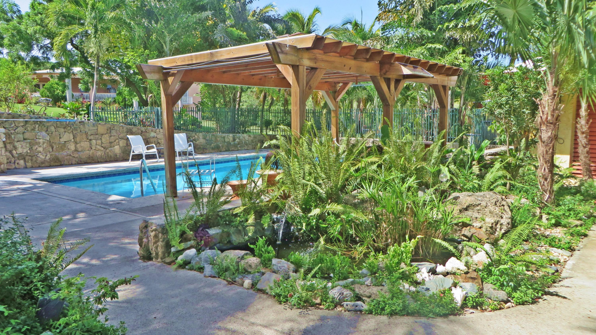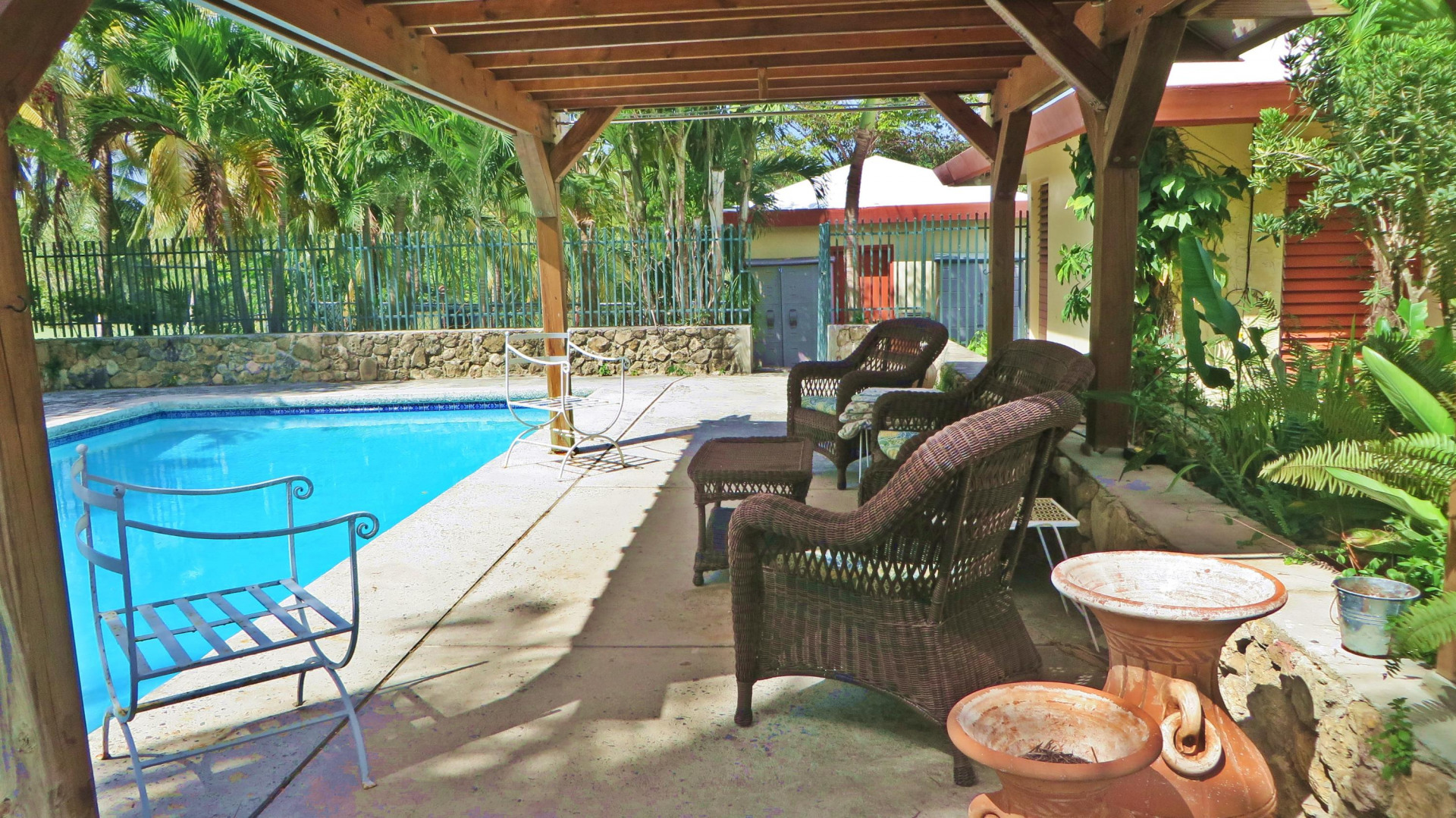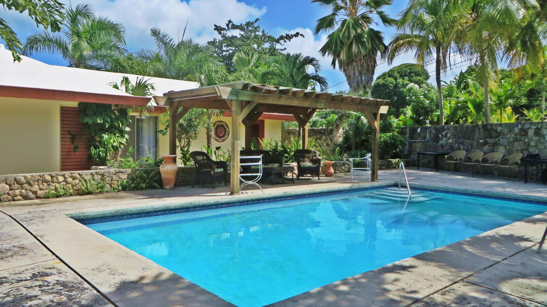 This island oasis is located on a large, flat lot with gorgeous, professional landscaping and a refreshing swimming pool. The lush and abundant grounds offer a canopy for shade and give the home complete privacy. The Mary Fancy's neighborhood has paved roads, is extremely well maintained and is in a very convenient location. The main home has two-bedrooms, two full bathrooms, upgraded kitchen and bonus space off of the open greatroom. The efficiency feels like a free standing cottage. Its cozy with a separate. private entrance and a covered gallery.When you live in the Caribbean, having your own oasis is a must and the pool area offers exactly that! There is a beautiful stone wall lined with soaring palm trees and verdant fauna that frames the swimming pool making the outdoor space completely private. In this area you can find a beautiful garden setting with a custom built pergola for a place to dine alfresco pool side or take an afternoon nap amongst nature. Additional features include a 15 KW generator, a fully fenced yard great for dogs and workshop/garage/shed.