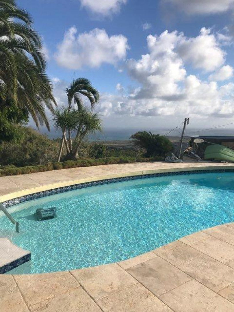 Dream house on the top of the mountain. Dual shore views. Sip your morning coffee overlooking Buck Island, take your mid-afternoon dip enjoying the wide open vista of south shore. Evenings are like being at an observatory.The tiled pool is freshly cleaned, grouted and filled. Remodeled custom kitchen 2014 with hammered cooper sink and stainless steel appliances plus first floor washer and dryer. New gutters to be installed. Don't wait on this one as it won't last long.