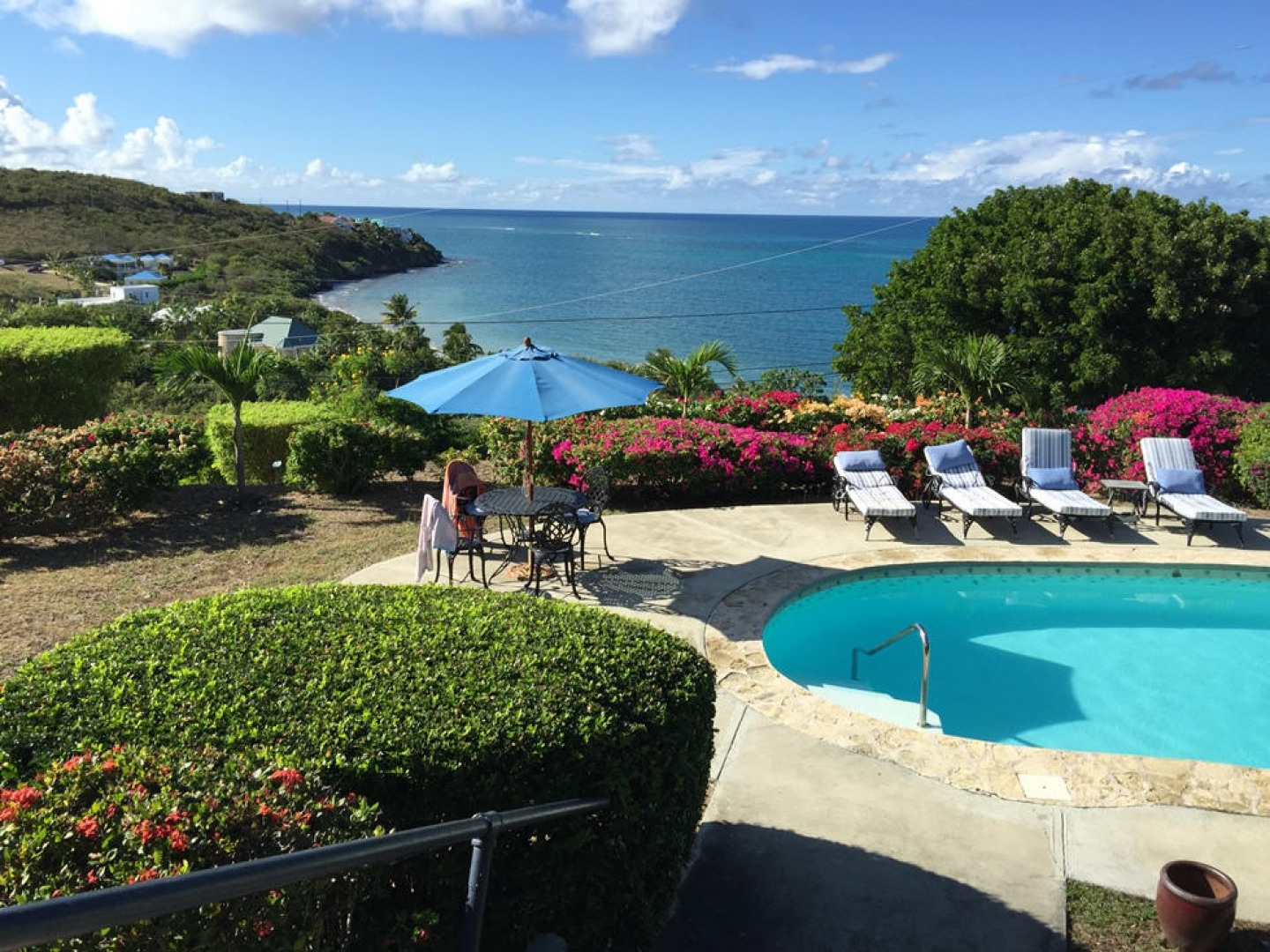 Island Retreat offers Caribbean living with gorgeous views overlooking Buck Island! Sea breezes abound year round in this pretty landscaped 4 bedroom 3 bath villa up on a hill. Lots of windows invite the outside in to see all neighboring islands. Guest suite has 2 bedrooms and pool area is perfect for entertaining! Great Vacation Rental vrbo.com/335767. Beaches, restaurants & casino closeby.