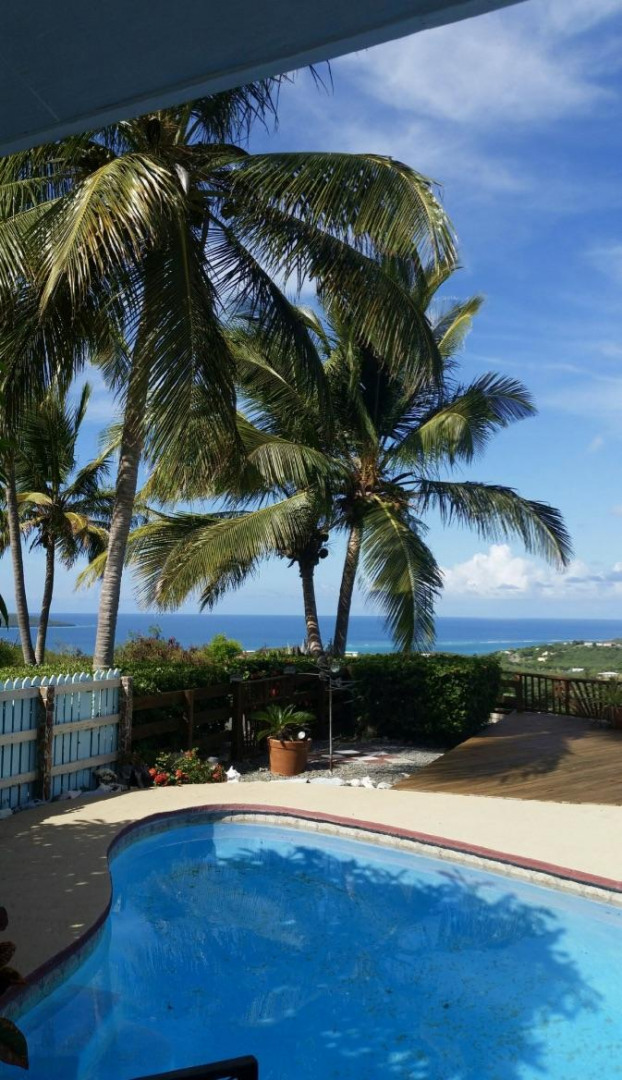 Follow Your Dreams! Relax pool side in this 3BR/2BA home with expansive views of the Carribbean sea, Buck Island and the bucolic Solitude Valley. This beautiful property is in a great neighborhood, located at the end of a road with complete privacy. Live nearly off the grid with 4 KW solar system net metering. Wonderful outdoor living spaces complete the picture with mature landscaping and a large deck surrounding the pool. Enjoy the open floor plan with updated kitchen, bathrooms and all new appliances. Plenty of attic storage as well.Solitude is nearby beautiful beaches and restaurants. Christiansted town, only a ten minute drive away. Dock your boat at the nearby St. Croix Yacht club for a quick trip to Buck Island. Hike or snorkel in purely unadulterated Point Udall.There are many upgrades to this home. The beautifully maintained kitchen cabinets and counters were replaced in 2010 and the bathrooms remodeled in 2011. Live nearly off the grid, thanks to the 4KW solar net metering system, high efficiency pool pump and solar water tank. The deck was rebuit, pool recoated, septic pumped and serviced in 2014 and the house was repainted in 2015. Additionally, there are new hurricane shutters on the south side of the house and a new 7 KW generator with new transfer switch, as well as whole house surge protector system for transfer switch and solar. New slate kitchen appliances, water pump, pressure tank, and roof coating, add to the new improvements just done in 2017!
