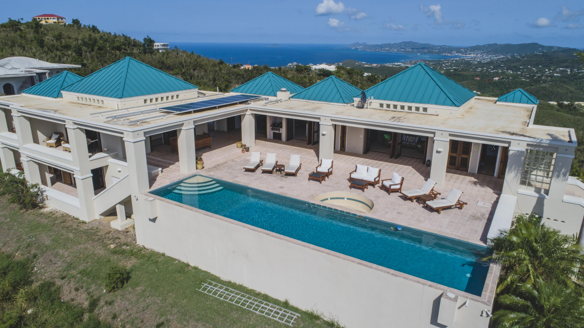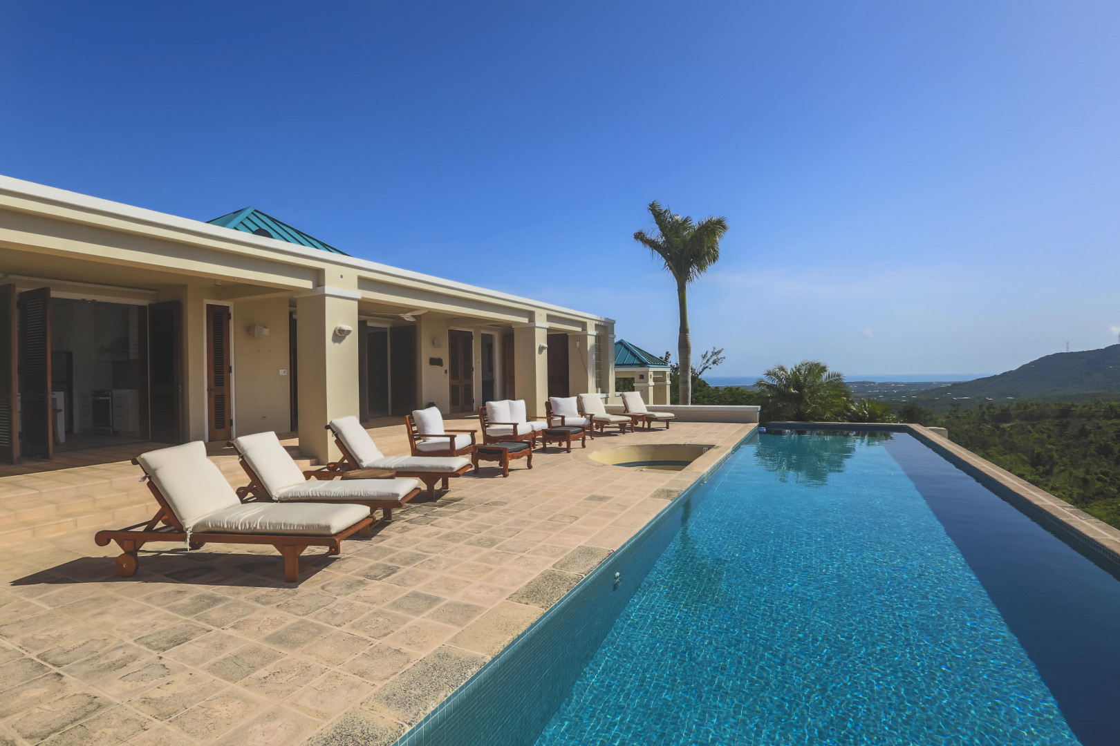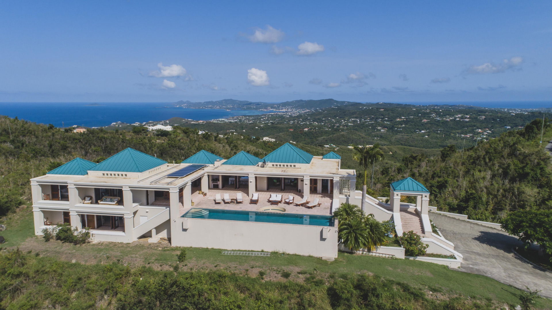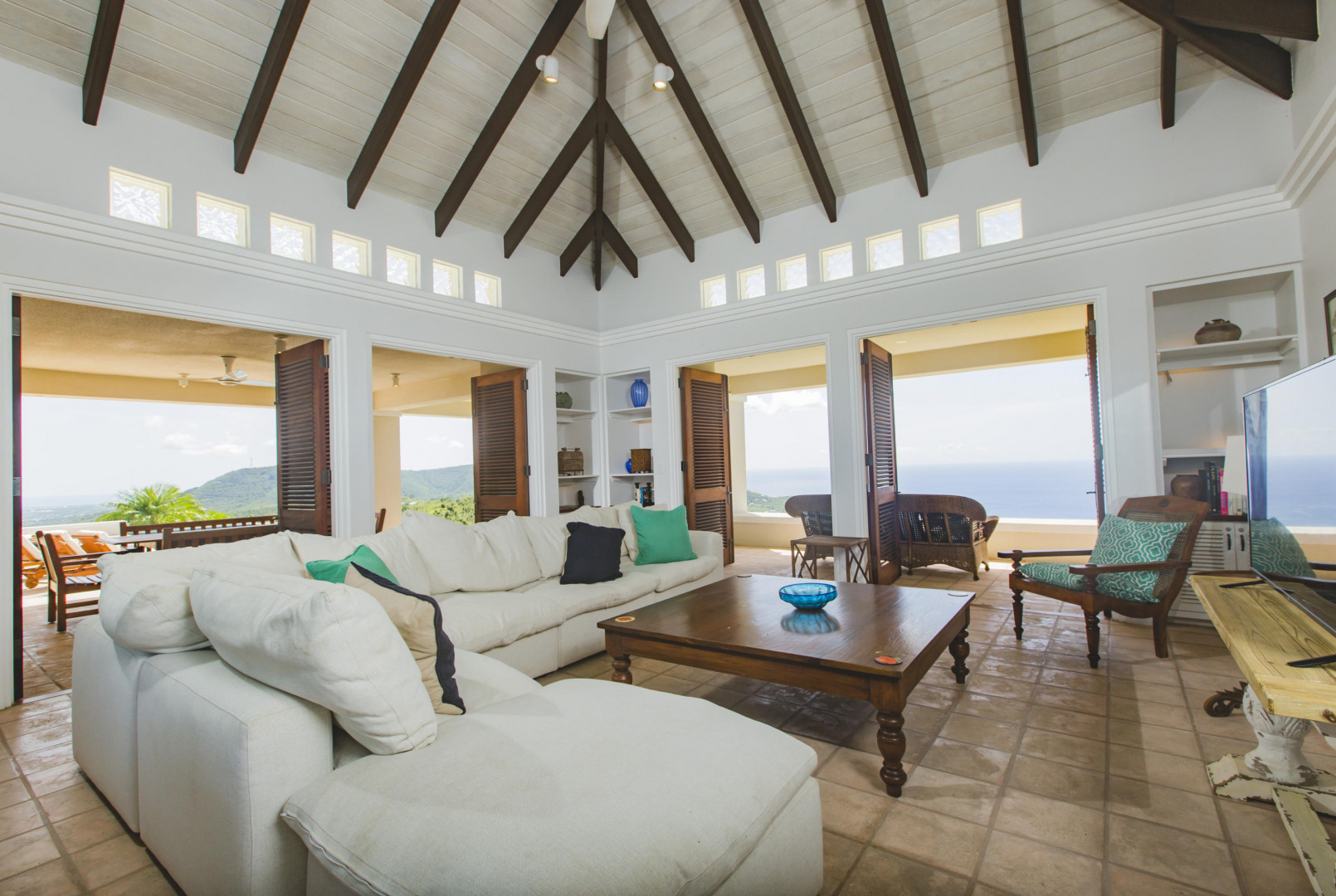 Seeing is Believing! Nestled on a sunny hillside and surrounded by tropical foliage, Serenity enjoys 360 panoramic views of the Caribbean and distant islands. This 4 Bedroom 4 1/2 bath ultra comfortable open-floor plan home includes a beautiful 1 Bedroom 1 bath care-takers apartment. Located on a private mountain top, every single room in this home looks out to the Caribbean Sea and beyond. This amazing location guarantees a gorgeous sunrise and sunset every day. With nearly 3 acres of land, large lap pool, massive patios, 20 kw generator, garage, large storage rooms, carport, lift, this amazing home has everything you need to enjoy the Caribbean Life!