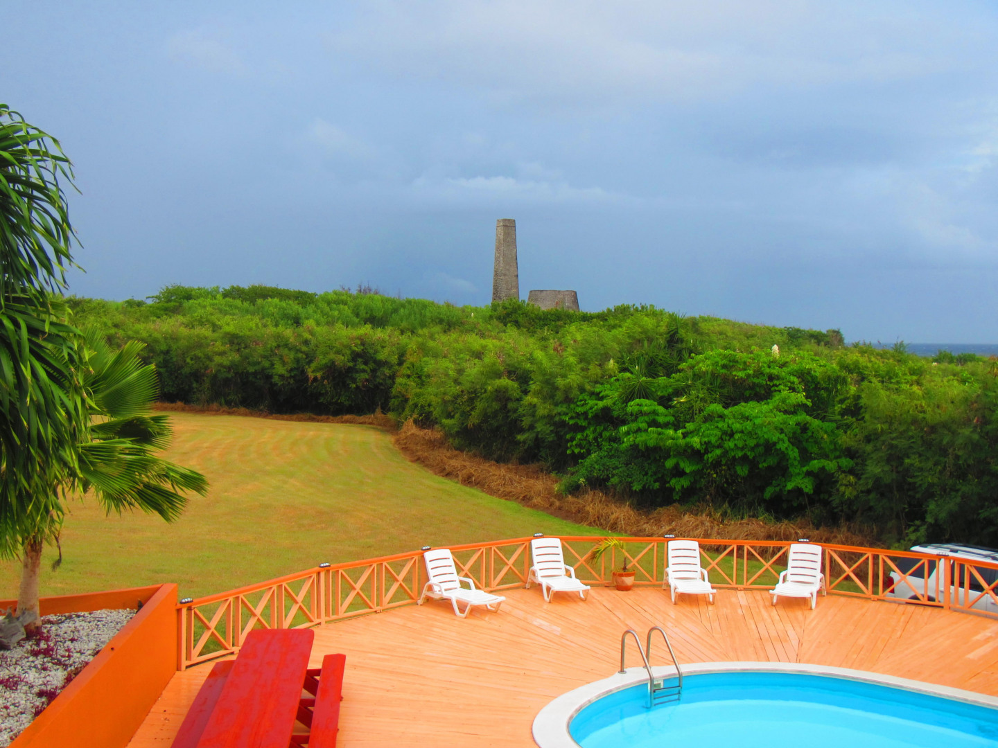 Amazing location, next door to Judith's Fancy Ruins, huge yard, terrific entertainment area around the pool and covered patio area. Patio is lighted for entertaining, extremely large picnic table for family and parties. Inside very large great rooms, granite kitchen counter tops, beautiful tiled floors, lots of space. Easy dreamy lsland living.