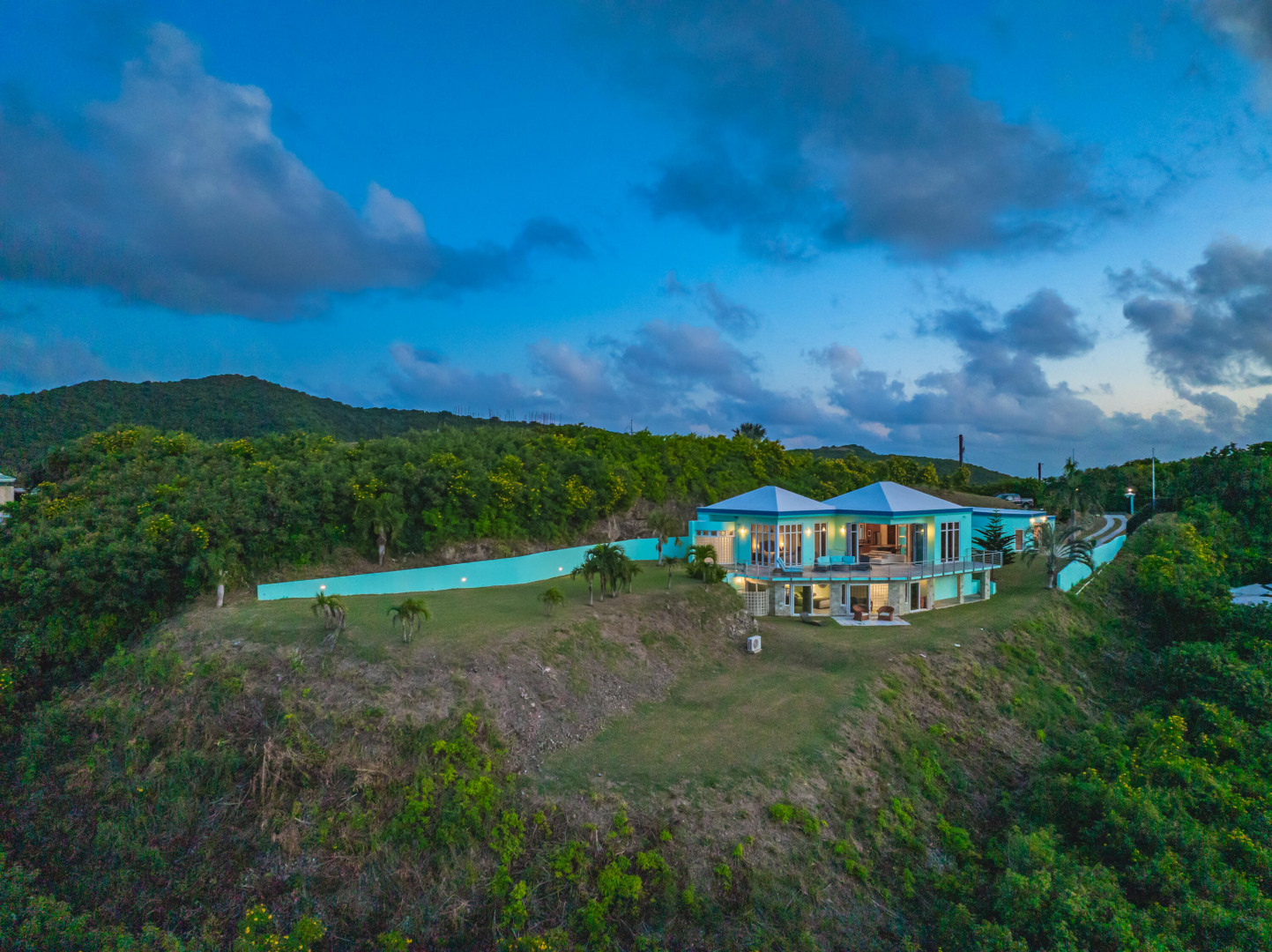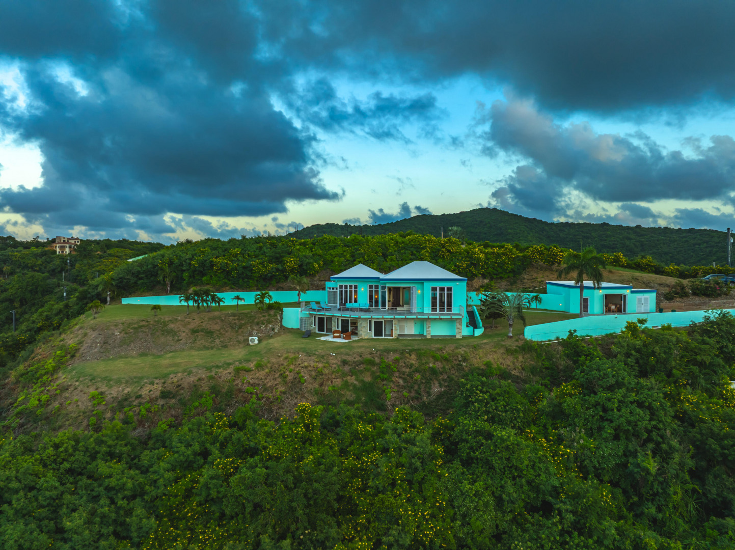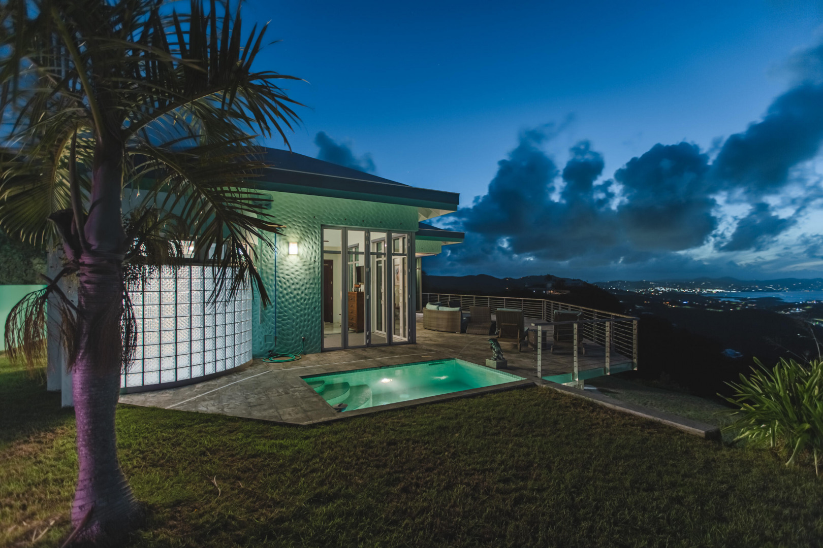 Experience elevated island living from this custom-built 3-bedroom, 3.5-bath, two-story home perched on nearly 2 acres in St. Croix's desirable East End. With sweeping views from Buck Island west to Christiansted harbor, this hilltop retreat offers privacy, style, and sophistication. Designed for comfort and entertaining, the home features an open layout with marble and granite floors, sleek Nanawall impact glass doors that bring the outdoors in, and pool surrounded by spacious patios and gallery space perfect for gatherings. Each bedroom offers its own en-suite bath, while the primary suite is a true sanctuary. Stand-alone 3rd bedroom suite perfect for an efficiency apt. Additional features include split A/C units, gated entry, and an automatic generator for peace of mind. This one-of-a-kind property captures the best of Caribbean luxury with unbeatable views and breezy East End living.