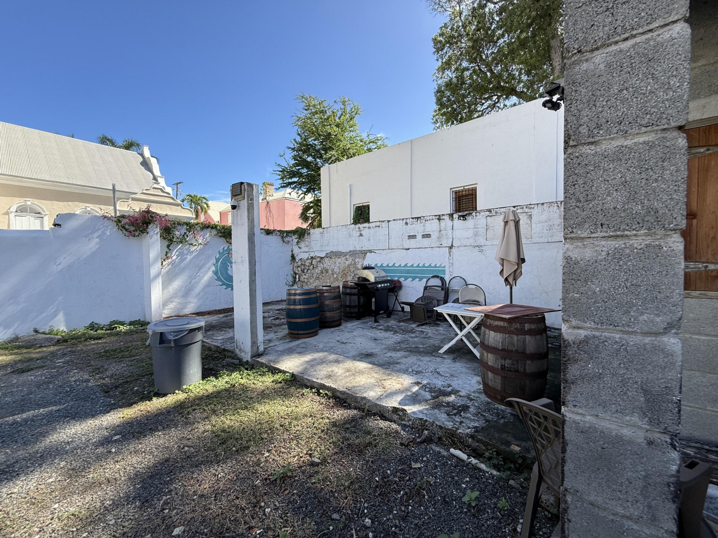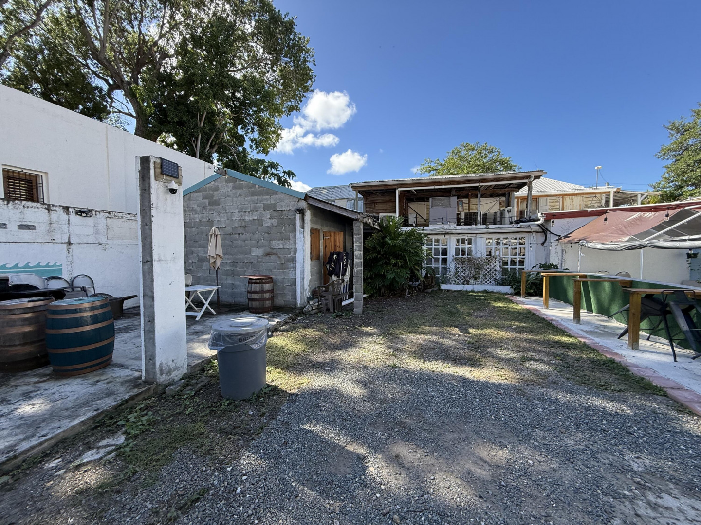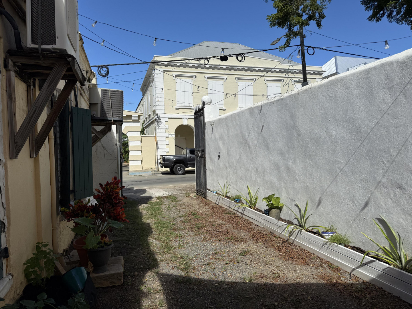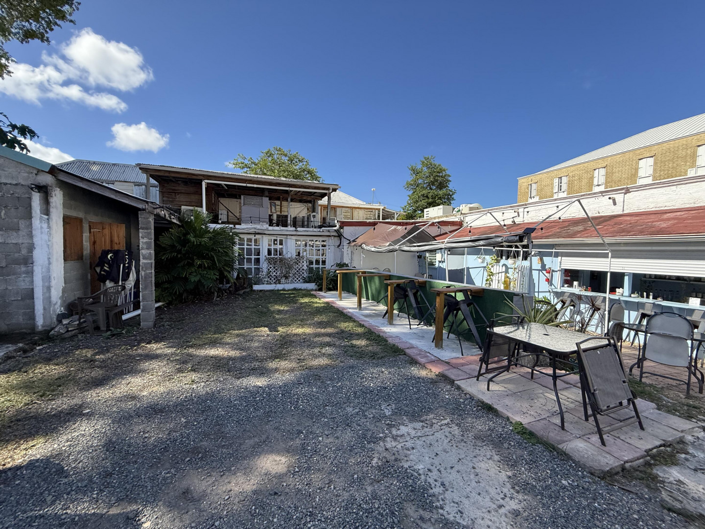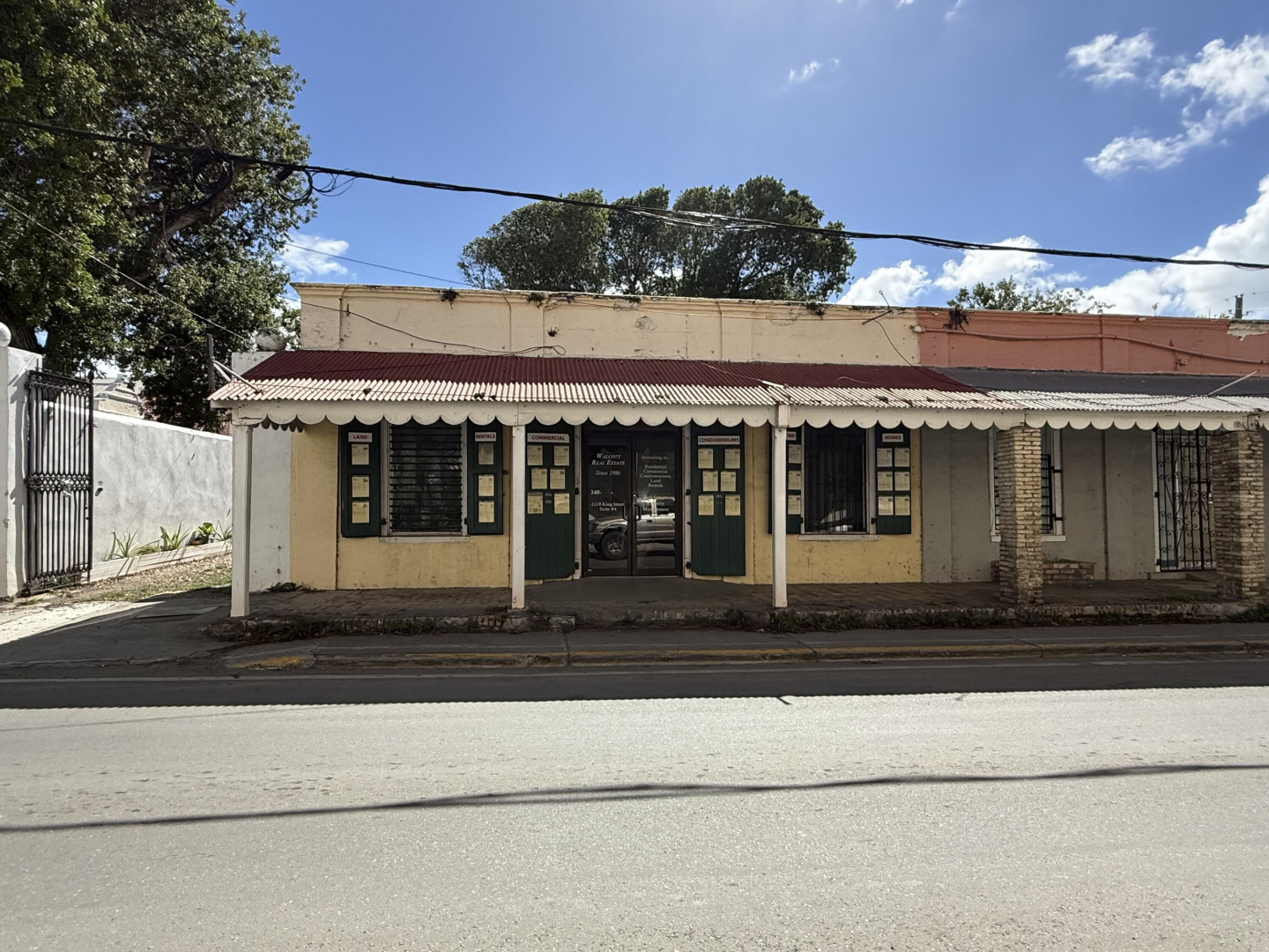 5 King Street is a B-1 zoned single-story historic structure situated on approximately 0.10 acres (4,356 sq ft) in the heart of downtown Christiansted. The property features a courtyard configuration with mixed-use occupancy, currently housing a real estate office and a courtyard restaurant.This property occupies a rare and highly desirable niche within the historic core: a single-story building on a main thoroughfare, with an interior courtyard, existing commercial income, and the uncommon ability to accommodate on-site parking. Courtyard properties with off-street parking are exceptionally limited in downtown Christiansted, giving this asset a distinct competitive advantage over nearby comparables. The courtyard offers flexibility of uses.Additionally, the property includes a substantial concrete block storage structure within the courtyard area, providing valuable ancillary utility. Included in this listing under the documents tab are renderings for a studio apartment for above the storage structure.