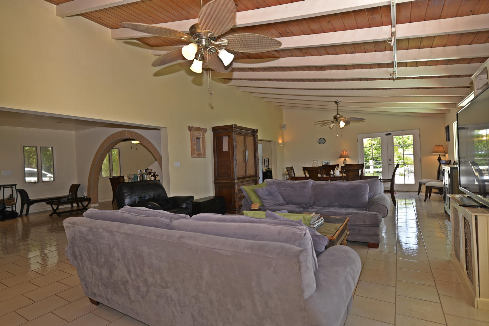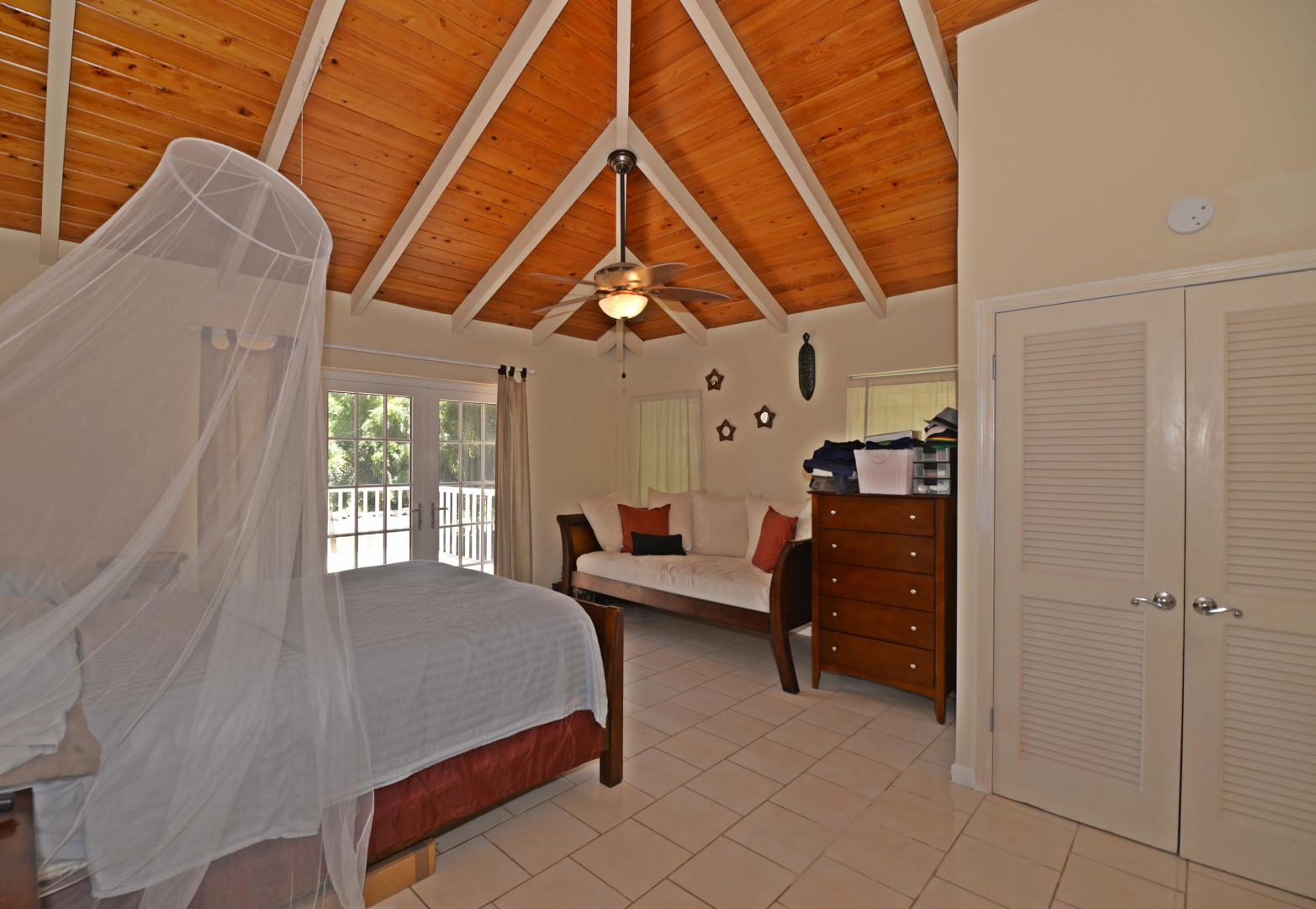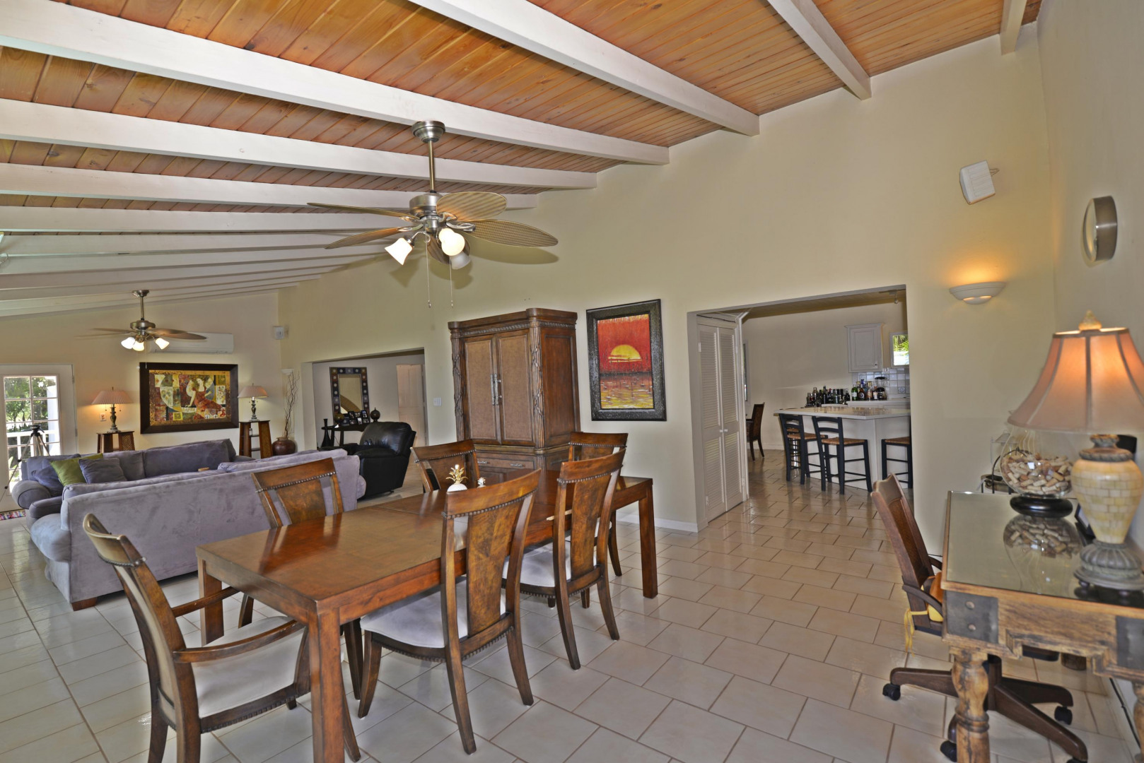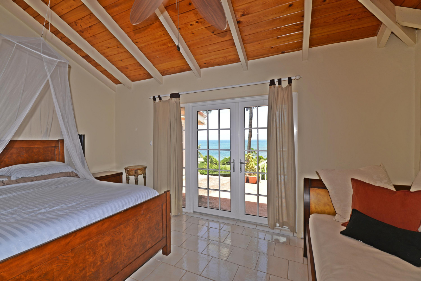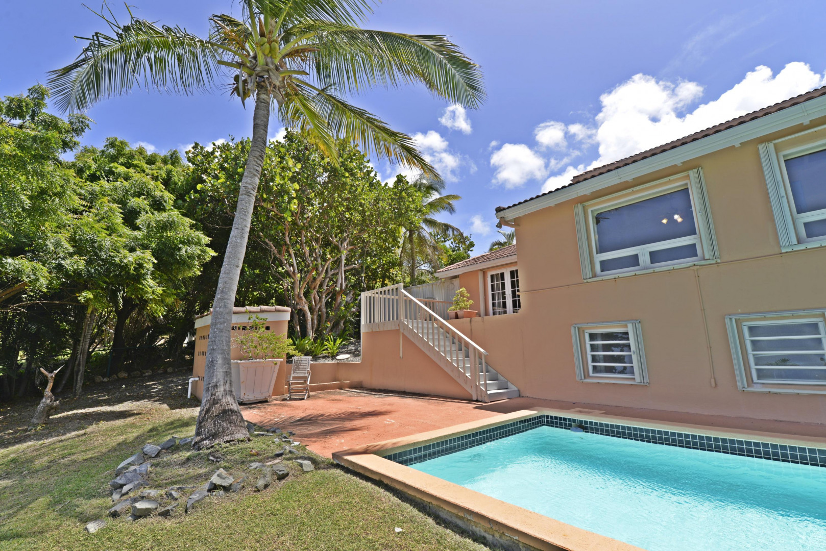 This Caribbean estate in the gated, beachfront community of Shoys has a big swimming pool, multi-level decks, a 3 bedroom/3.5 bath main home, two apartments, beautiful sea views and it is walking distance to a sandy beach. The main home has a big open great room with a wall of windows on the sea side of the home allowing the brilliant blues of the sea and natural light to fill the space. The great room is flanked by French doors that open to sunny decks and it seamlessly flows into the gracious kitchen. The first floor includes two bedrooms with sea views and bath en suites. The spacious master suite spans the entire upper level of the main home, has impressive sea views and a sizable bath en suite.Steps down from the upper-level decks is a large swimming pool great for lounging, pool parties or getting some laps in. The pool is shaded by big palm trees and lined by green space great for a game of bocce ball or planting an edible garden. The pool side, 700 square feet apartment has a cozy sitting/TV room with French doors that open out to covered outdoor space, a big bedroom, full kitchen, full bathroom and laundry. The second apartment, 350 square feet, has a kitchen and full bathroom. Either space would be great for a workshop, art studio, office space, a caretaker, overflow guests, or additional rental income. Life is sweet in this beachfront community known to all as Shoys! The neighborhood beach is crescent shaped with calm waters and coconut palms - great for napping, reading, swimming or ,for the more adventurous, snorkeling and paddle boarding. Neighboring Shoys is the famed Buccaneer Hotel where you can take up golfing, get a message at the Hideaway Spa, indulge in the epicurean lifestyle at one of their delicious restaurants or be entertained by fire dancers during their Caribbean Nights. The home has a 20KW Generator and a triple water filtration system.
