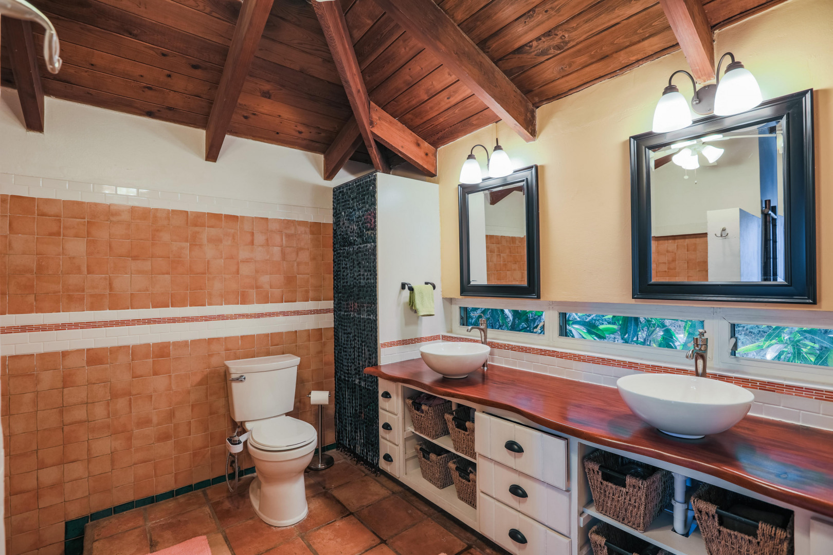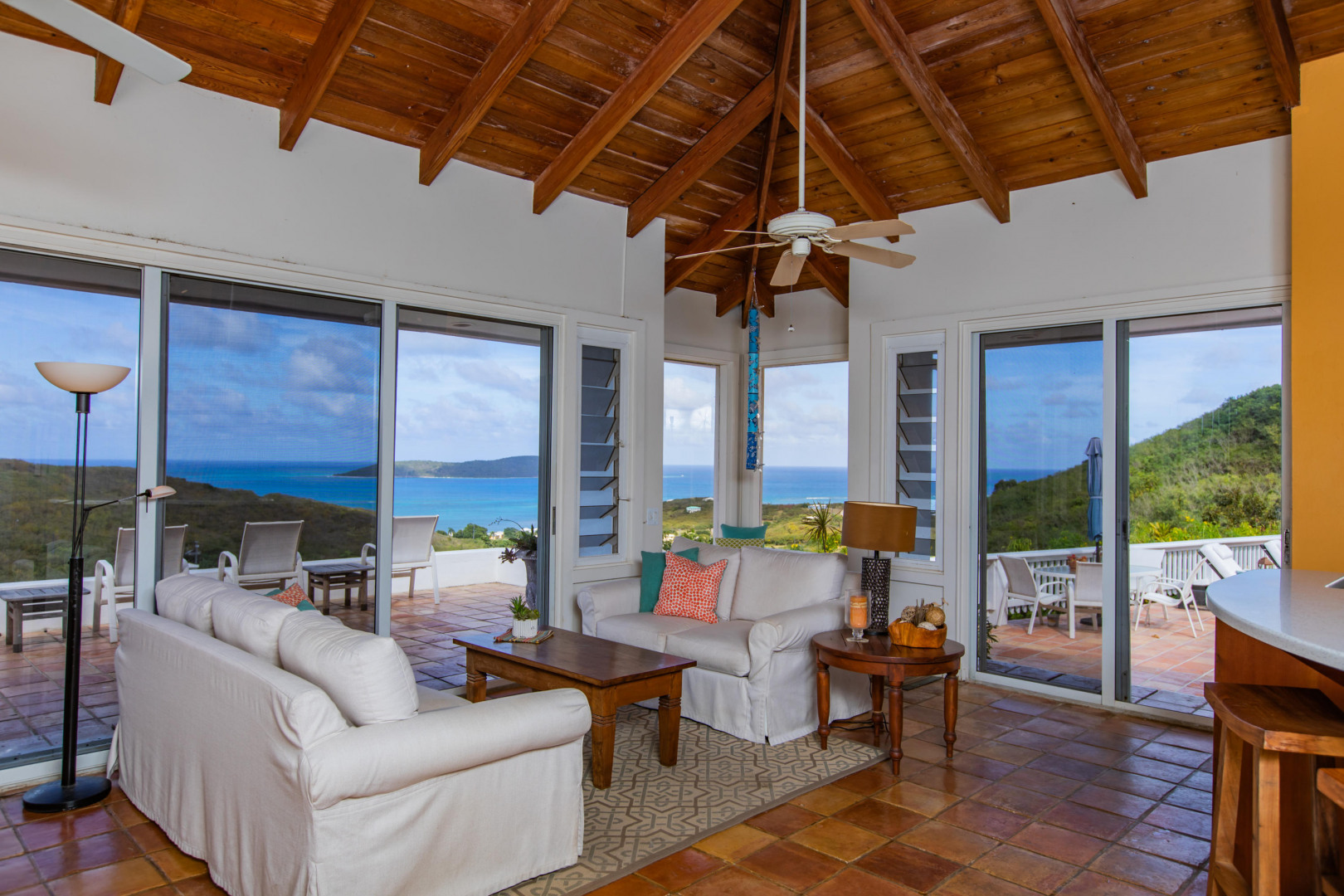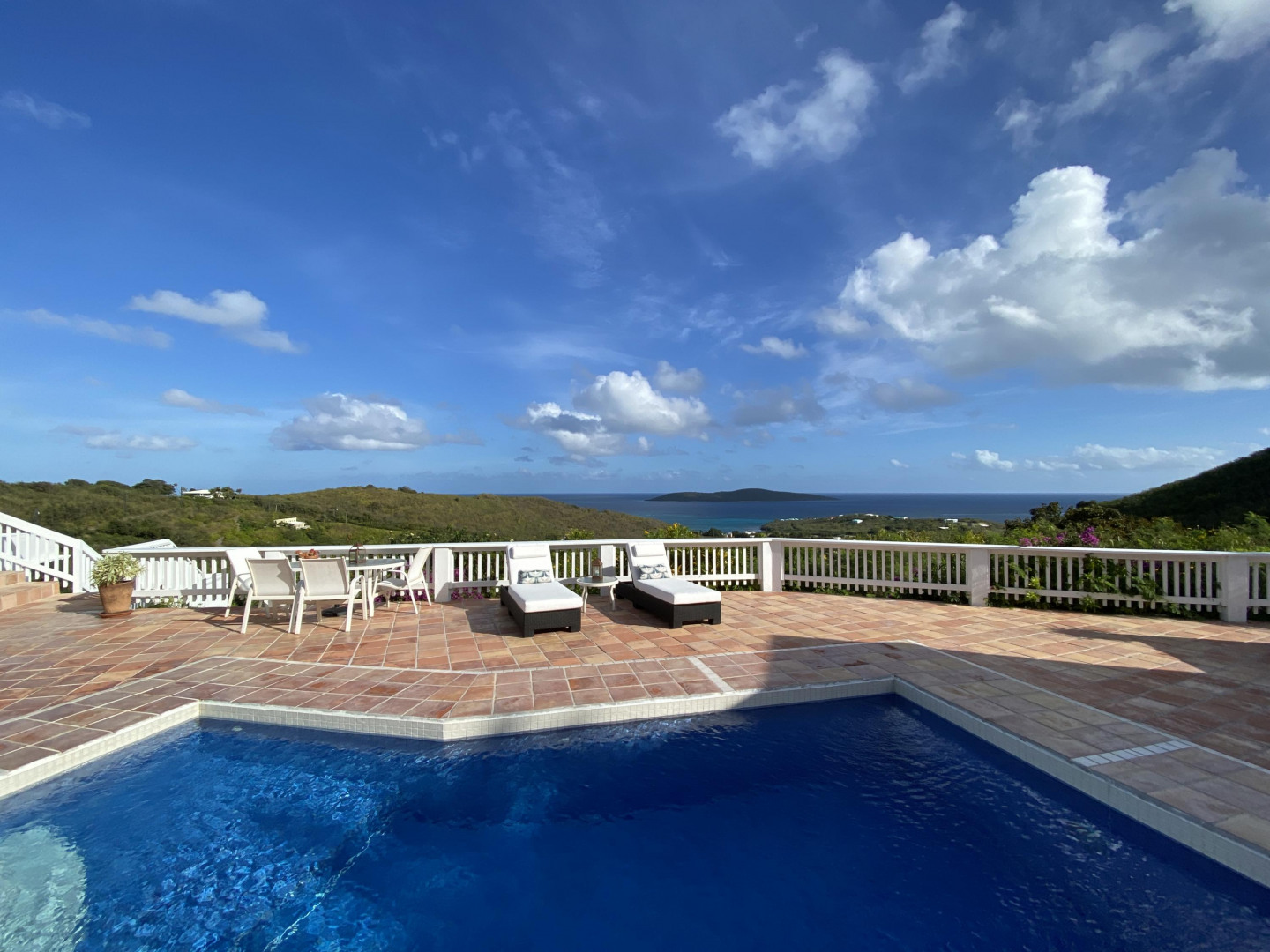 Perfect for large family or vacation rental! 4 acre hillside estate comprising a total of 7-bedrooms & 7-baths! ''Serenity at Solitude'' is a West Indian style home which features three detached buildings & a spacious pool patio w/ sweeping views of Buck Island and beyond! Main BR in one building w/ en suite bath & bonus office or nursery w/full bath. Kitchen & LR across the pool patio from MBR, guest BR & laundry below. Two more guest suites & baths plus a den for your guests or kids classroom/playroom! Solar panels & net metering, automatic gate, plus a separate 2BR, 1BA guesthouse - this East End home has it all!
