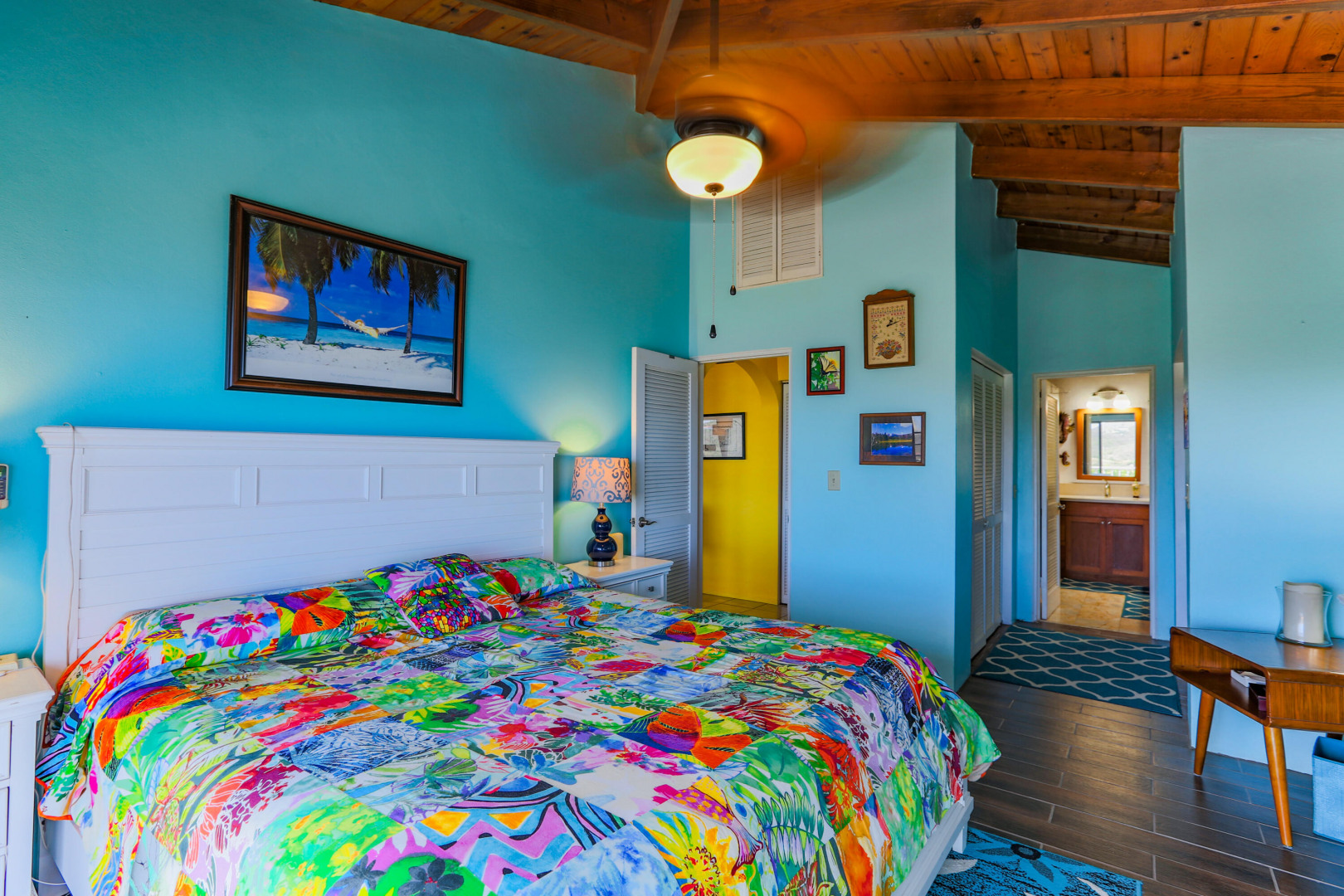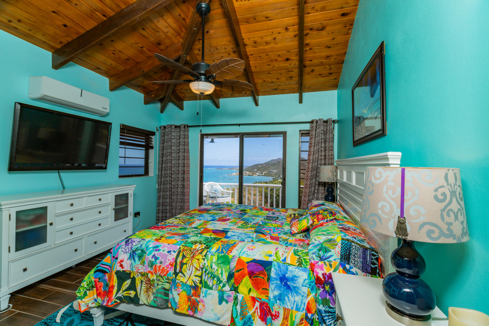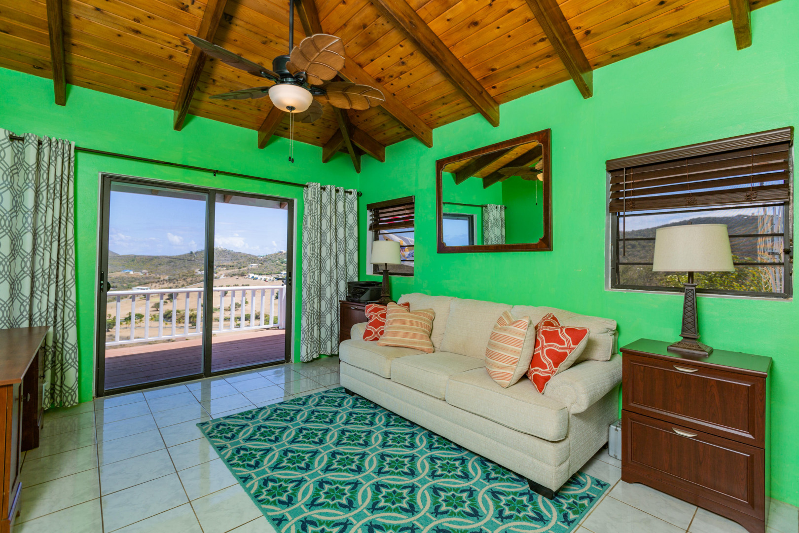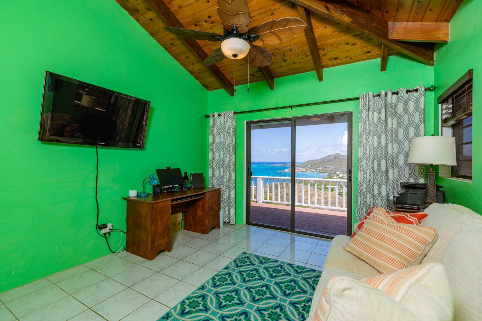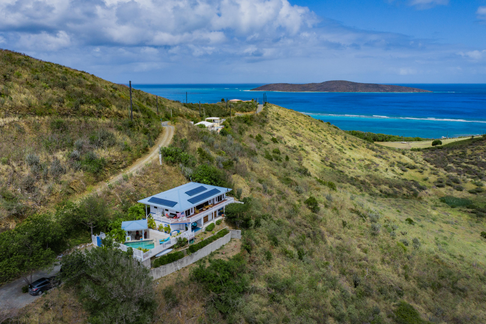 Big views East over Teague Bay to the Yacht Club from this 2-bedroom, 2-bath East End Villa with 1-bedroom apartment below. Tropical courtyard w/ outdoor shower, pool cabana, outdoor kitchen & wet bar, 26 solar panels, net-metering, Tesla battery & 20KW diesel generator! Main house has a covered gallery off LR, pass through kitchen, cathedral ceilings, en-suite bath w/ double vanity off main bedroom, W/D. Apartment features full kitchen, W/D, sofa bed that converts into either 2 twins or a king, private outdoor dining gallery w/ Buck Island views. Tucked away in a very private location - this is your ideal island hideaway!