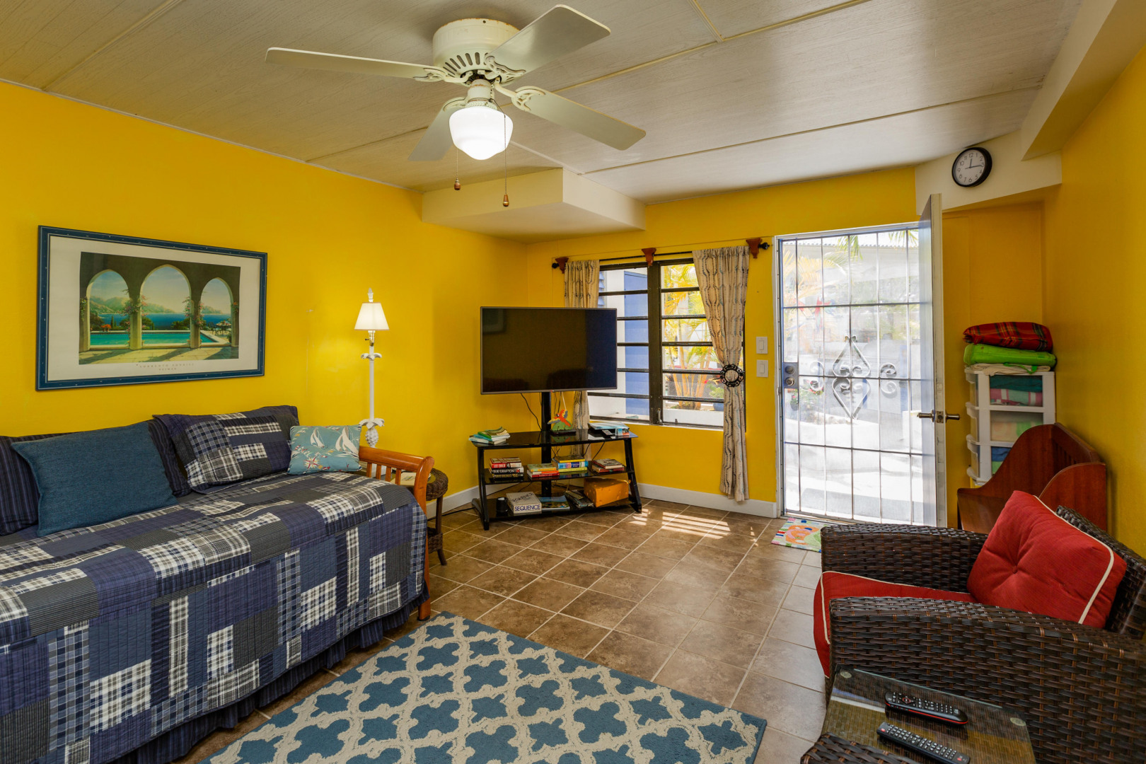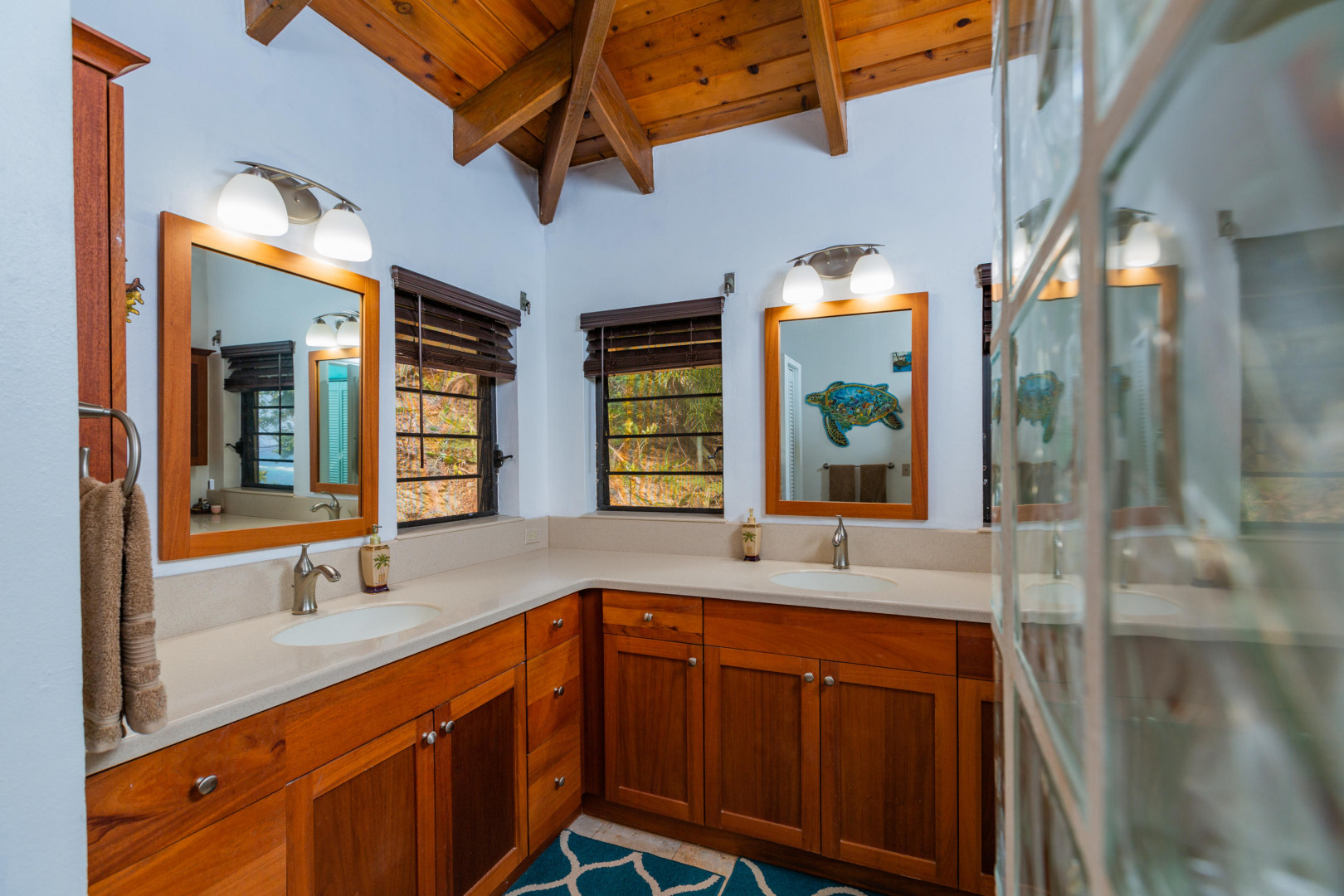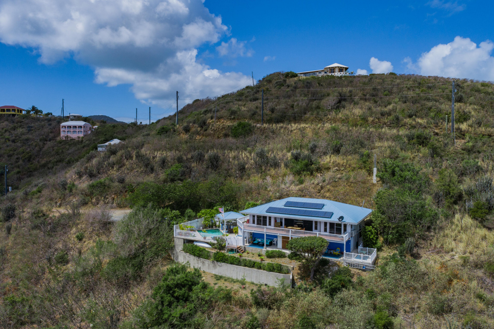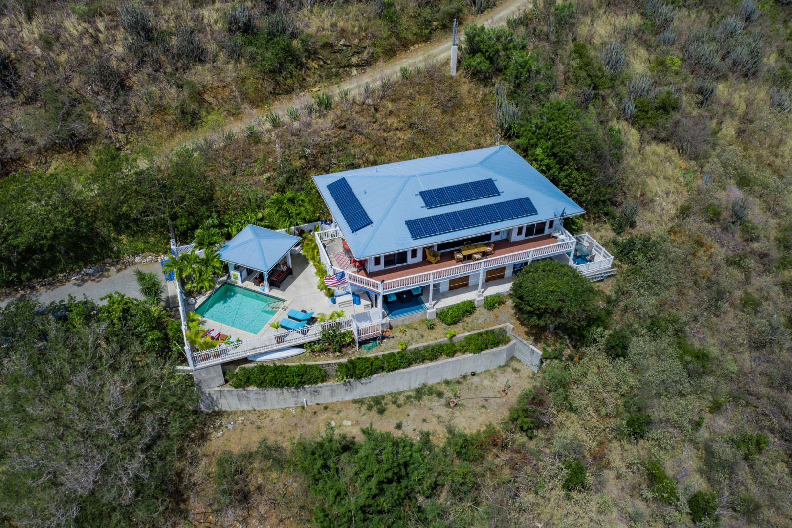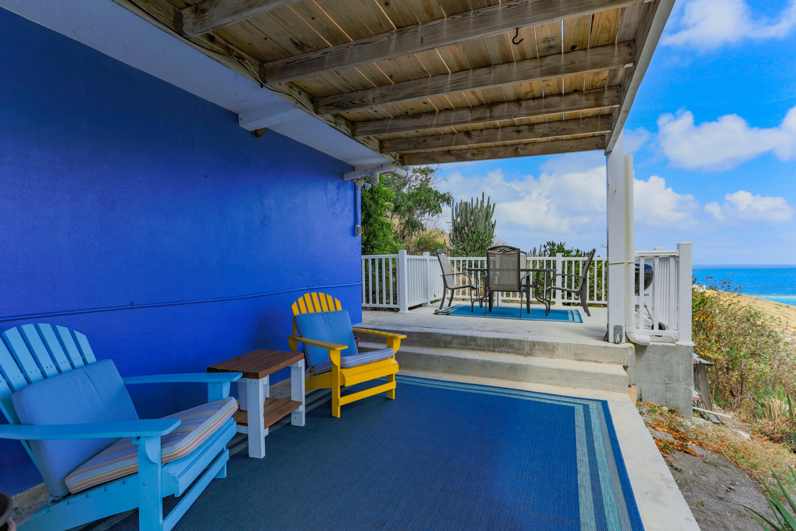 Big views East over Teague Bay to the Yacht Club from this 2-bedroom, 2-bath East End Villa with 1-bedroom apartment below. Tropical courtyard w/ outdoor shower, pool cabana, outdoor kitchen & wet bar, 26 solar panels, net-metering, Tesla battery & 20KW diesel generator! Main house has a covered gallery off LR, pass through kitchen, cathedral ceilings, en-suite bath w/ double vanity off main bedroom, W/D. Apartment features full kitchen, W/D, sofa bed that converts into either 2 twins or a king, private outdoor dining gallery w/ Buck Island views. Tucked away in a very private location - this is your ideal island hideaway!