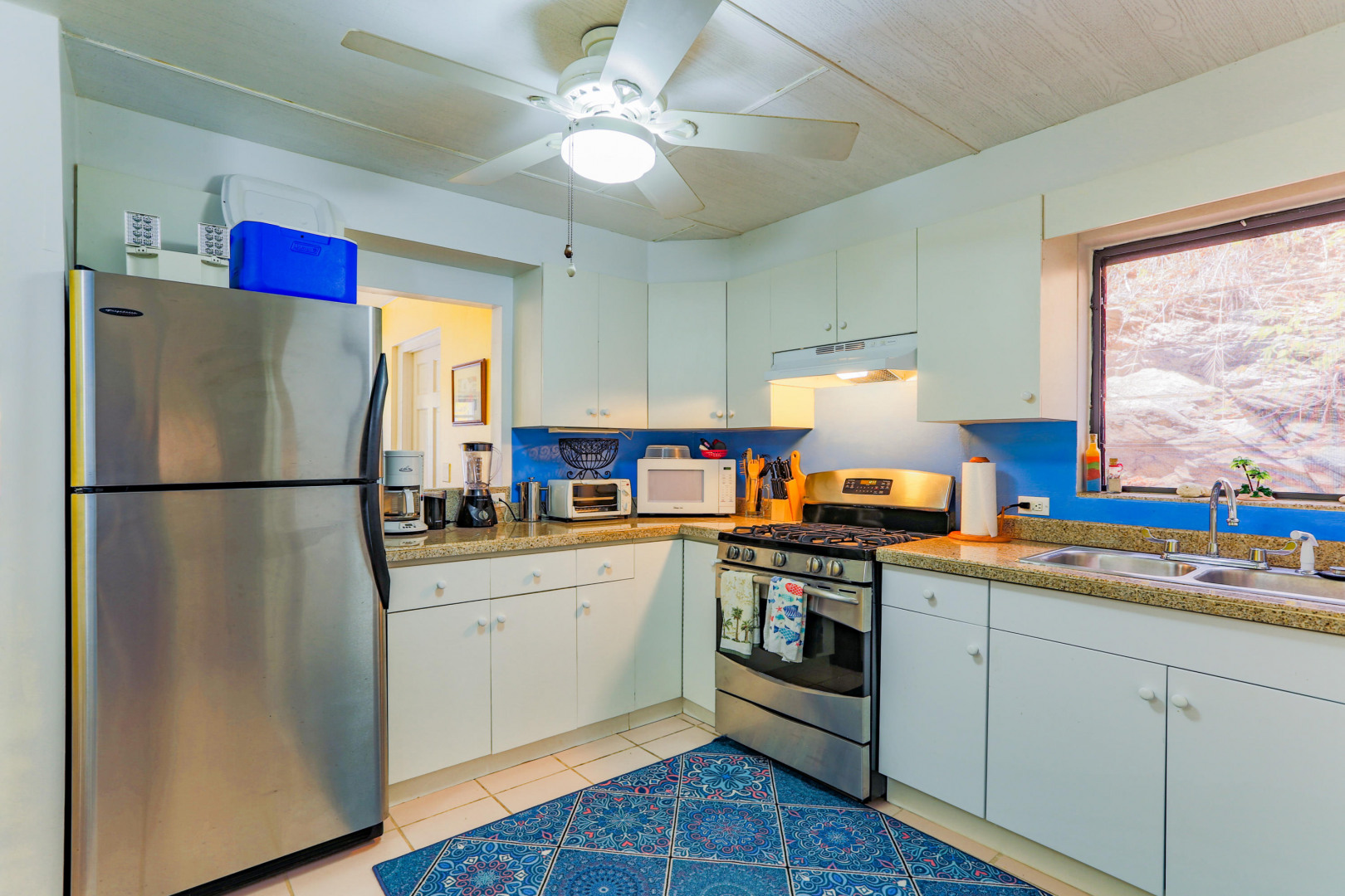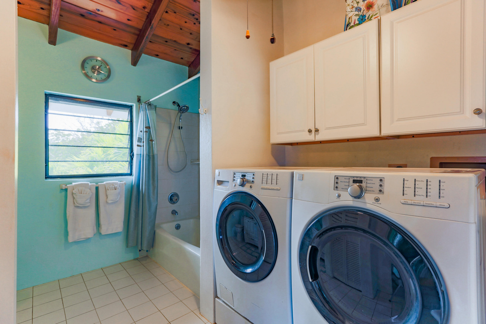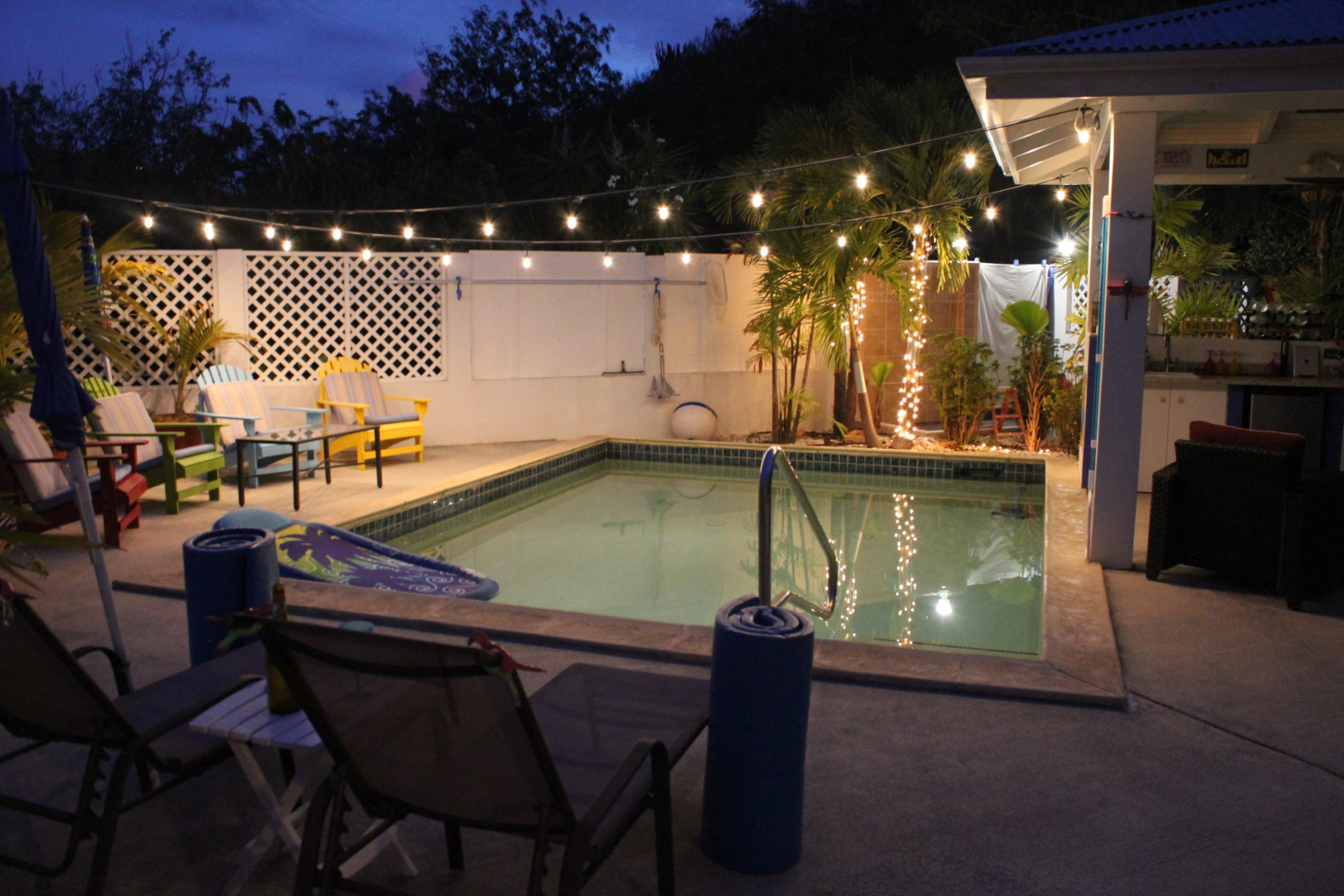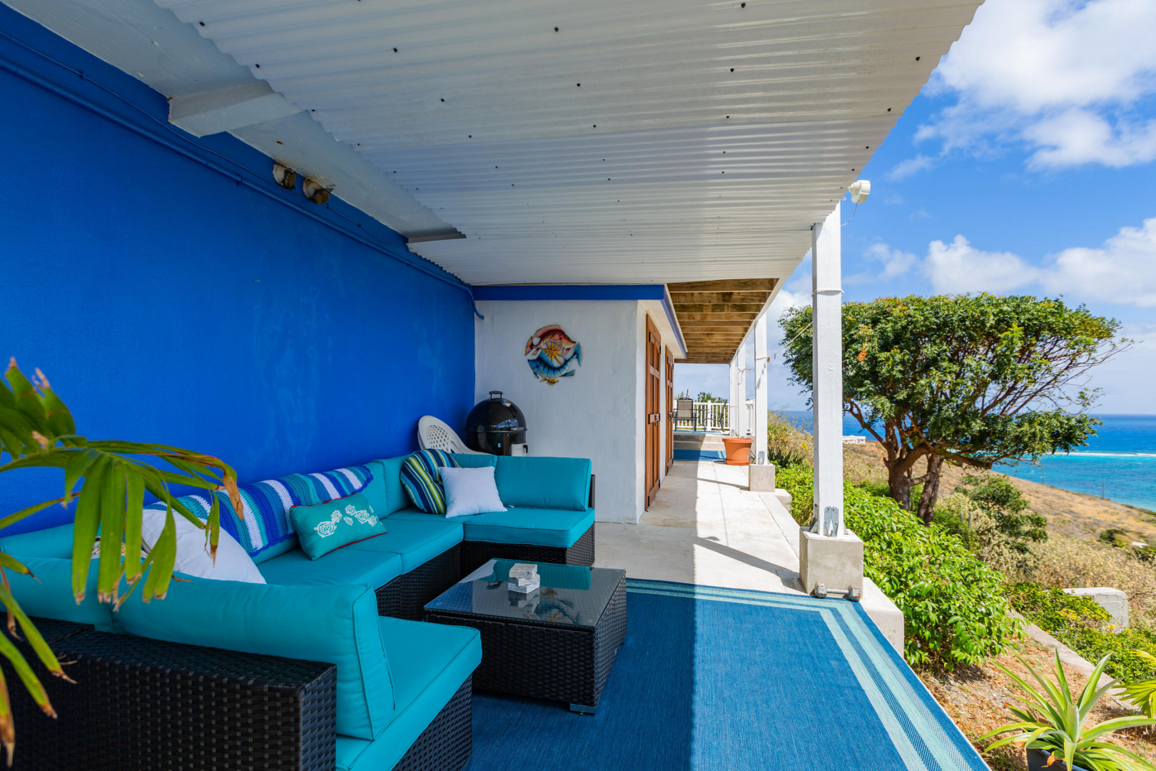 Big views East over Teague Bay to the Yacht Club from this 2-bedroom, 2-bath East End Villa with 1-bedroom apartment below. Tropical courtyard w/ outdoor shower, pool cabana, outdoor kitchen & wet bar, 26 solar panels, net-metering, Tesla battery & 20KW diesel generator! Main house has a covered gallery off LR, pass through kitchen, cathedral ceilings, en-suite bath w/ double vanity off main bedroom, W/D. Apartment features full kitchen, W/D, sofa bed that converts into either 2 twins or a king, private outdoor dining gallery w/ Buck Island views. Tucked away in a very private location - this is your ideal island hideaway!