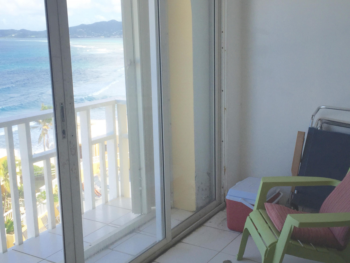 Breathtaking ocean views from this roomy (1200 sq ft) condo overlooking the North Shore of St Croix. Enjoy the constant tradewinds from this condo, which is perched about 125 feet above sea level. Large rooms and tall ceilings give this a very spacious feel. No dogs allowed; 1 cat only.
