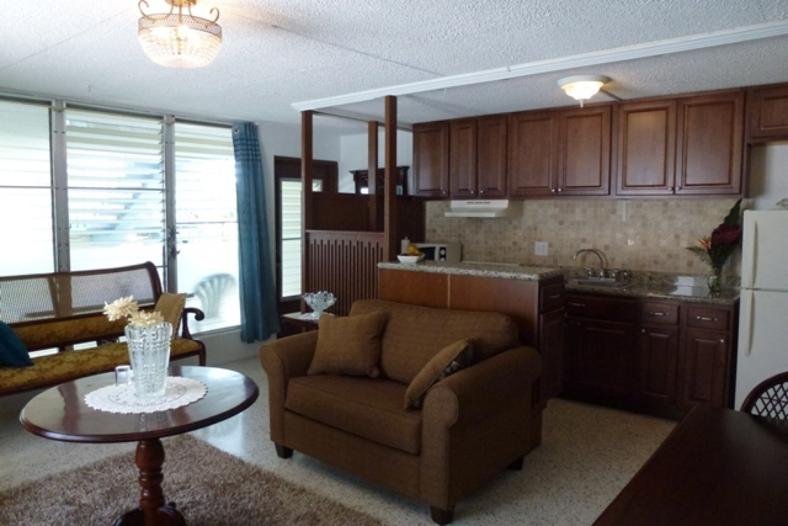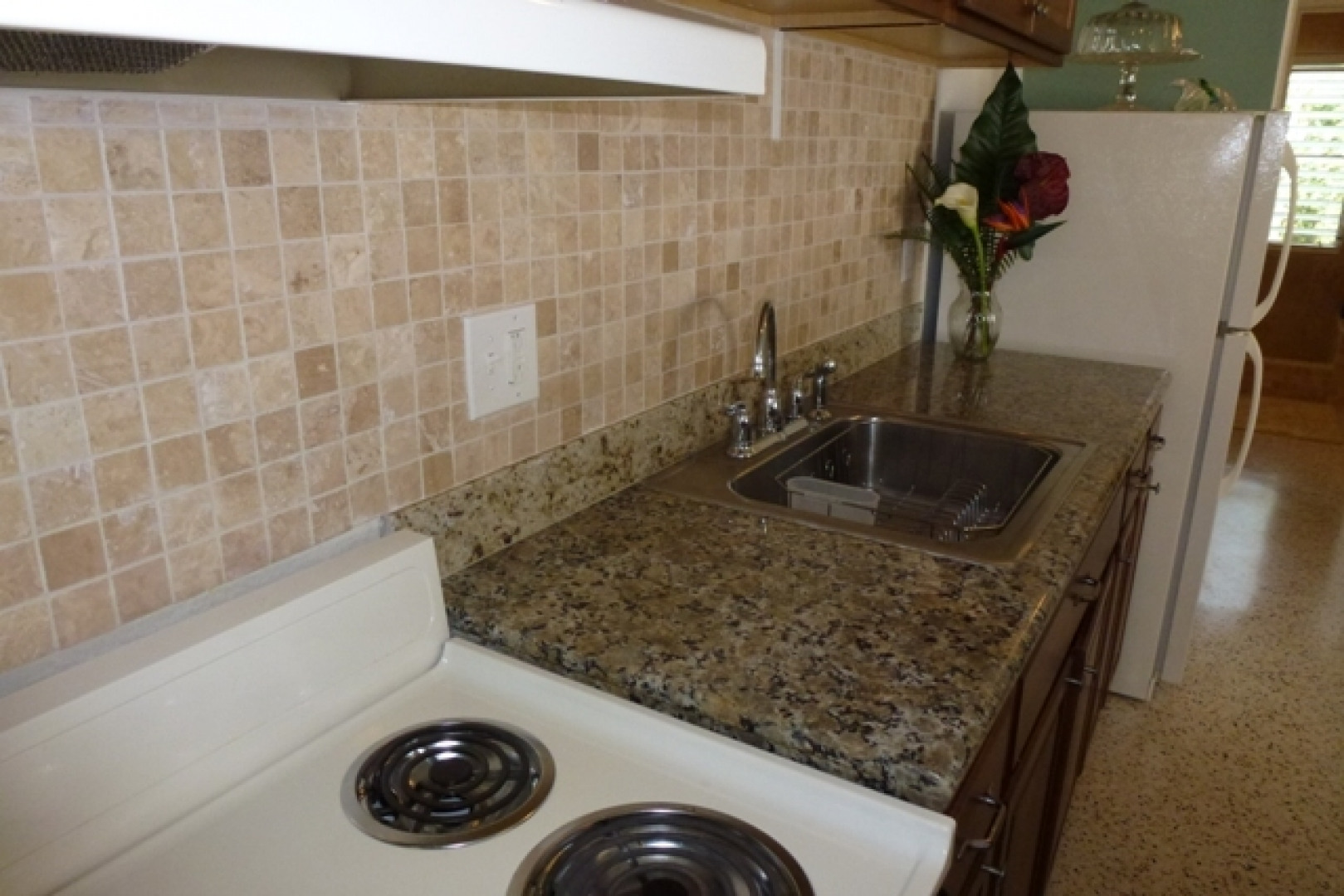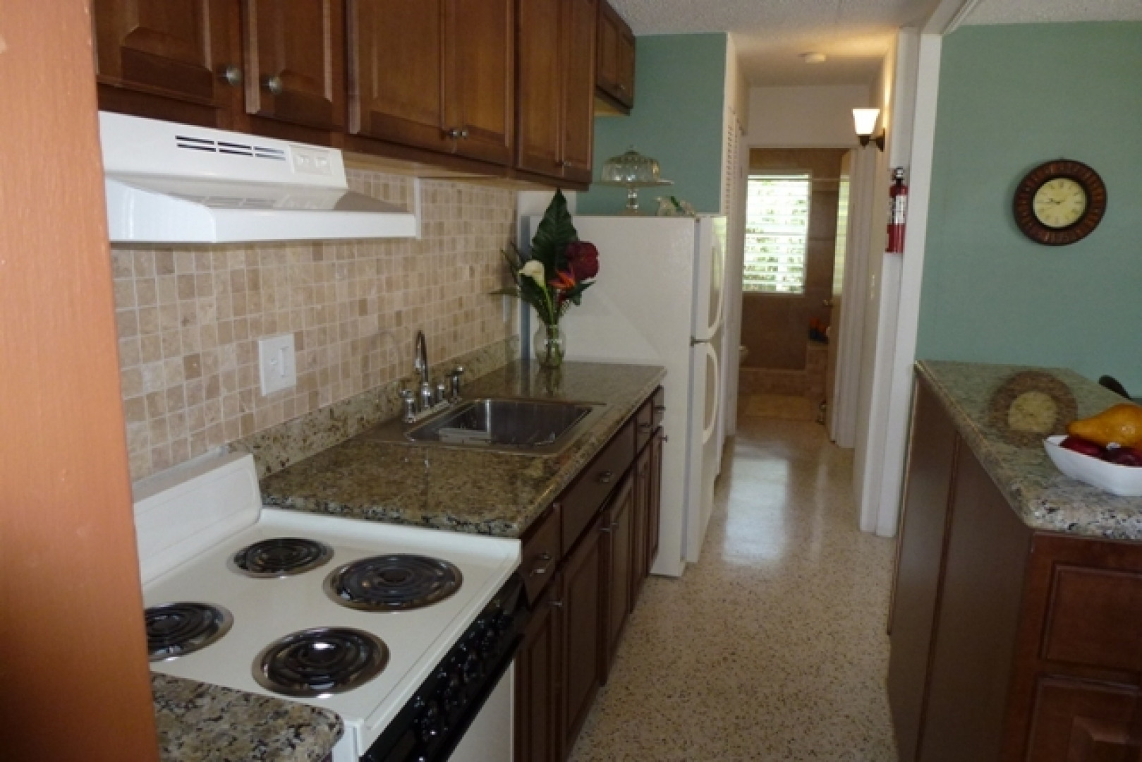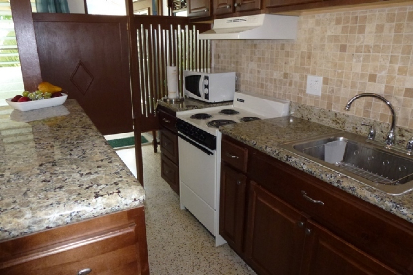 Enjoy natural cross ventilation & natural light in the master bedroom and living room from this end unit with granite countertops, new light fixtures, new appliances includes instant hot water heater, completely remodeled bathroom. New cabinets, Tavertine backsplash. Includes Buck Island view from second floor. Sold unfurnished. Show & Sell! Pool, Security Gate, Great Location!