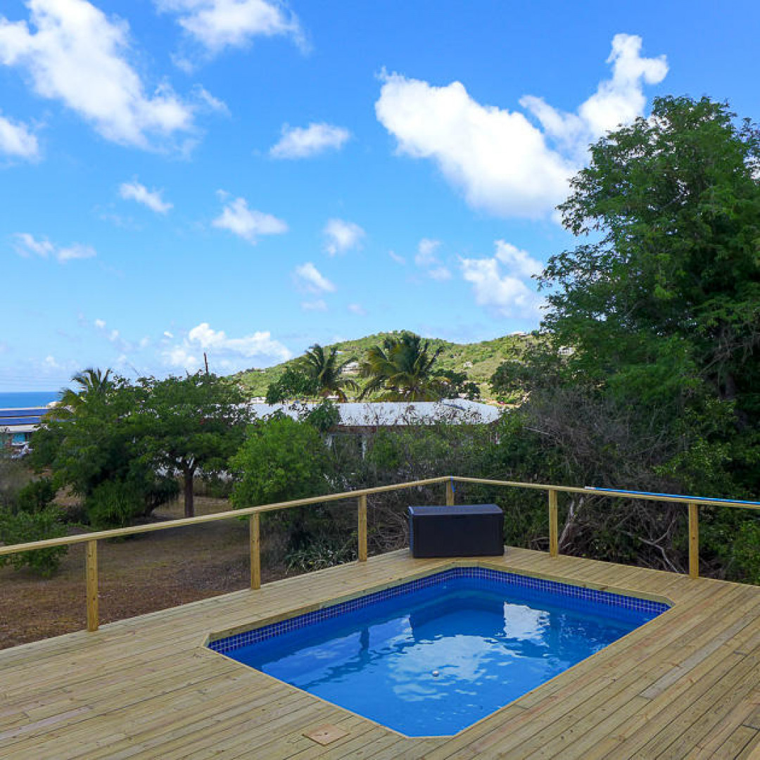 This sweet East End home has EVERYTHING you want! It's just been completely remodeled & updated from top to bottom; 3-bedrooms, 2-baths, beautiful Mexican tile floors, cathedral ceilings, large impact glass windows overlooking brand new wooden deck and pool to Buck Island & the sea. Spiffy new kitchen with pass-through window, new appliances, new ceiling fans in every room, new lighting throughout, cistern cleaned, new a/c units, new septic, gravel driveway, large yard perfect for pets or kids. Spacious master bedroom with brand new en-suite bath, sliding glass doors to take in the Buck Island view PLUS 1-bedroom apartment down below for caretaker or extra income! For a complete list of the improvements see supplement!IMPROVEMENTS 55 HOPE & CARTON 2019 Cleaned and maintained the cistern New roof with warranty Painted exterior house New decks New pool installed apartment kitchen and brand new bathroom in apartment New ceiling fans in every room New AC units in all bedrooms Repaired septic system, installed septic field redone exterior plumbing to septic tank New drywall throughout entire house and interior painting of every room Brand new bathroom and master bathroom in main house New washer New on demand water heater New driveway All new cabinets, counter tops, appliances fixtures in kitchen Reinforce floor in master bedroom with removal of pole and installation of header ALL Brand new impact resistant sliders, front doors and windows installed in the whole house New lighting throughout the home It is practically a BRAND NEW HOUSE 🙂