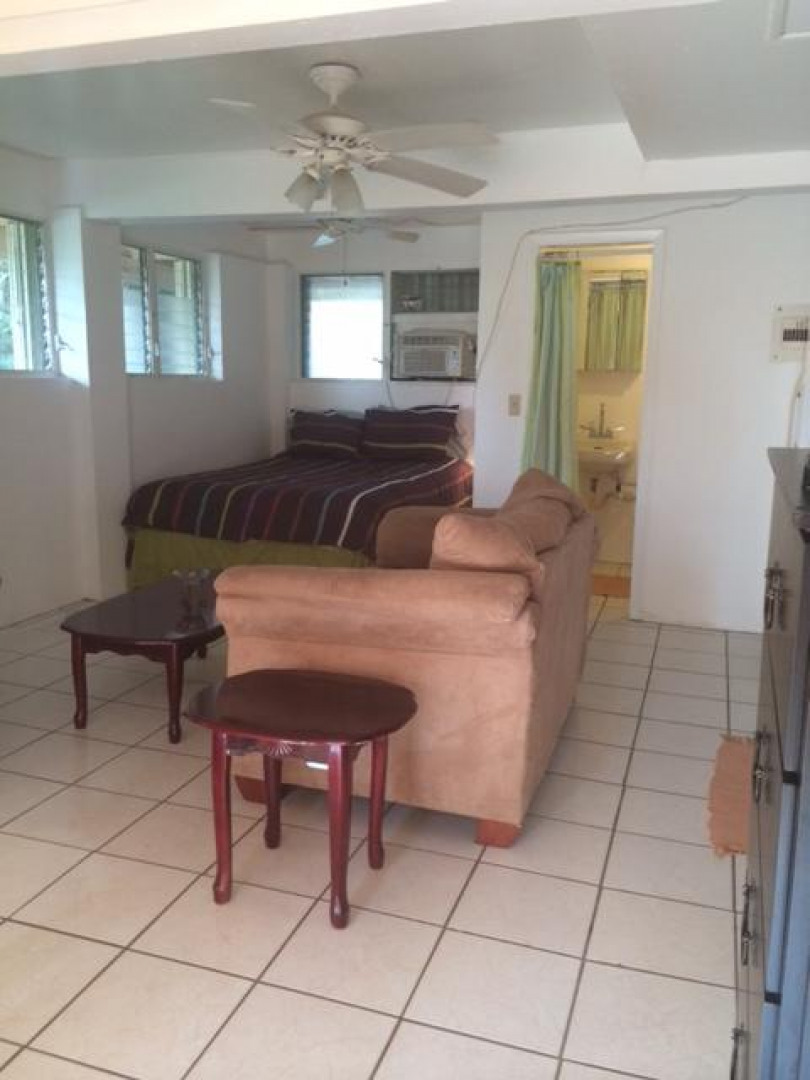 Income producing 4 plex. Over $2700 in gross income. All tenants on 6-12 month leases. This corner property is 2 stories with a 2 bedroom 1 bath and a studio on the top floor road level. 2nd floor has separate side entrance parking area and is also on the ground floor. One of the best mango trees on St. Croix sits in the side yard. All units have a separate meter and there is a 5th meter for