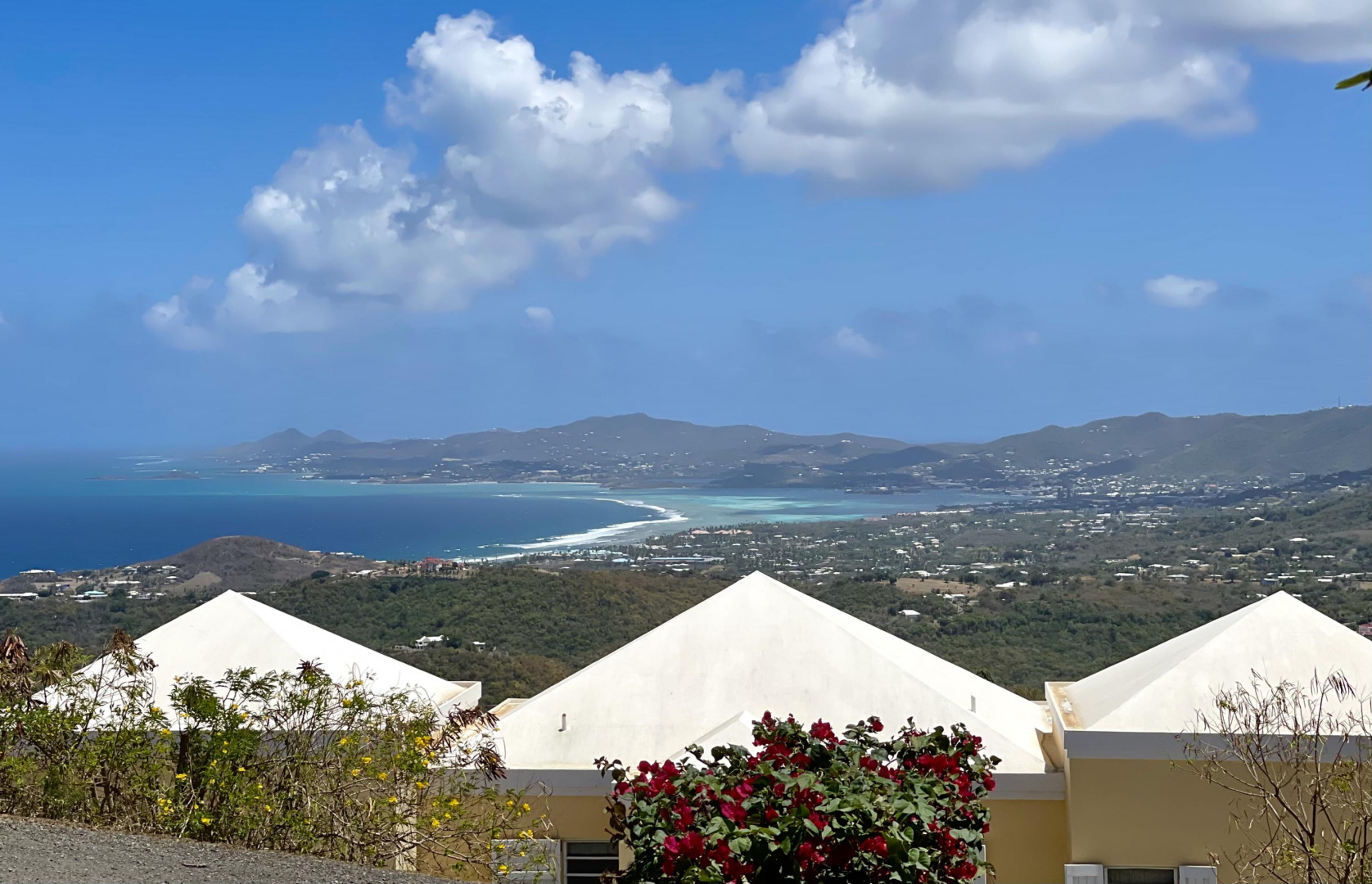 Are you looking for a beautiful Caribbean home with stunning views? This custom built and updated 3 bedroom, 3 bathroom home is nestled in the hills above the north shore close to diving at Cane Bay and beautiful beaches. It features large picture windows with panoramic views, high ceilings throughout the house and an updated kitchen. The outdoor deck wraps around the front of the house to the pool- lots of space to lounge and to entertain. The downstairs studio apartment has been partly renovated and offers a great space for visiting guests.The house is net metered with an 8kw solar system so you won't have to worry about high WAPA bills. An 11KW generator provides backup power for the entire home. For more information on features and updates done, please see documents and supplements