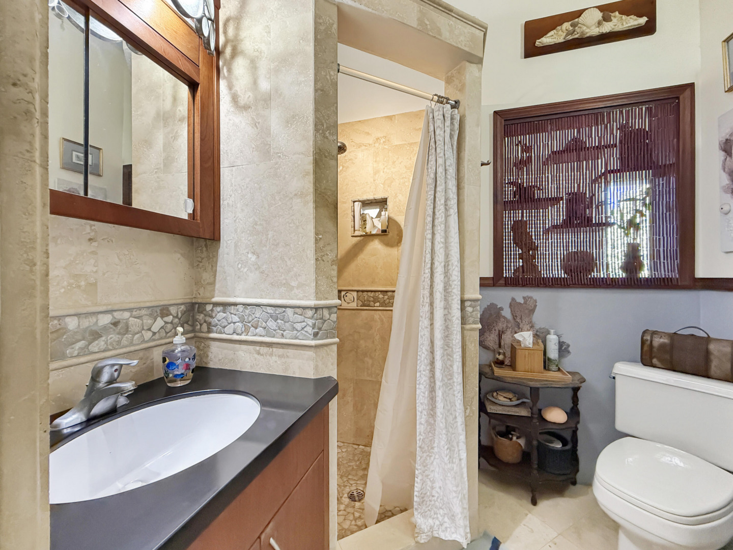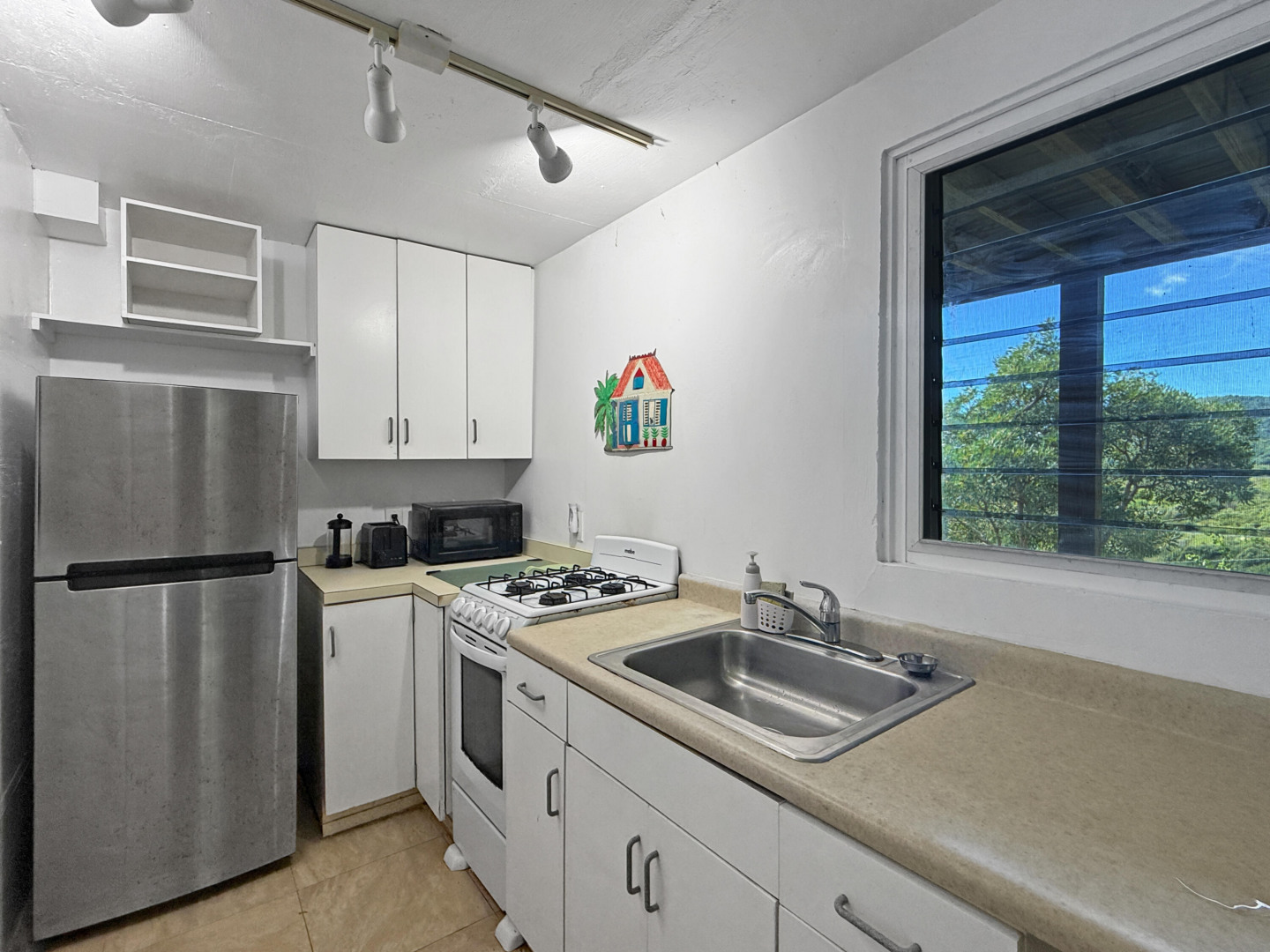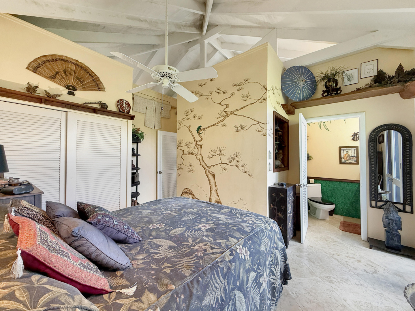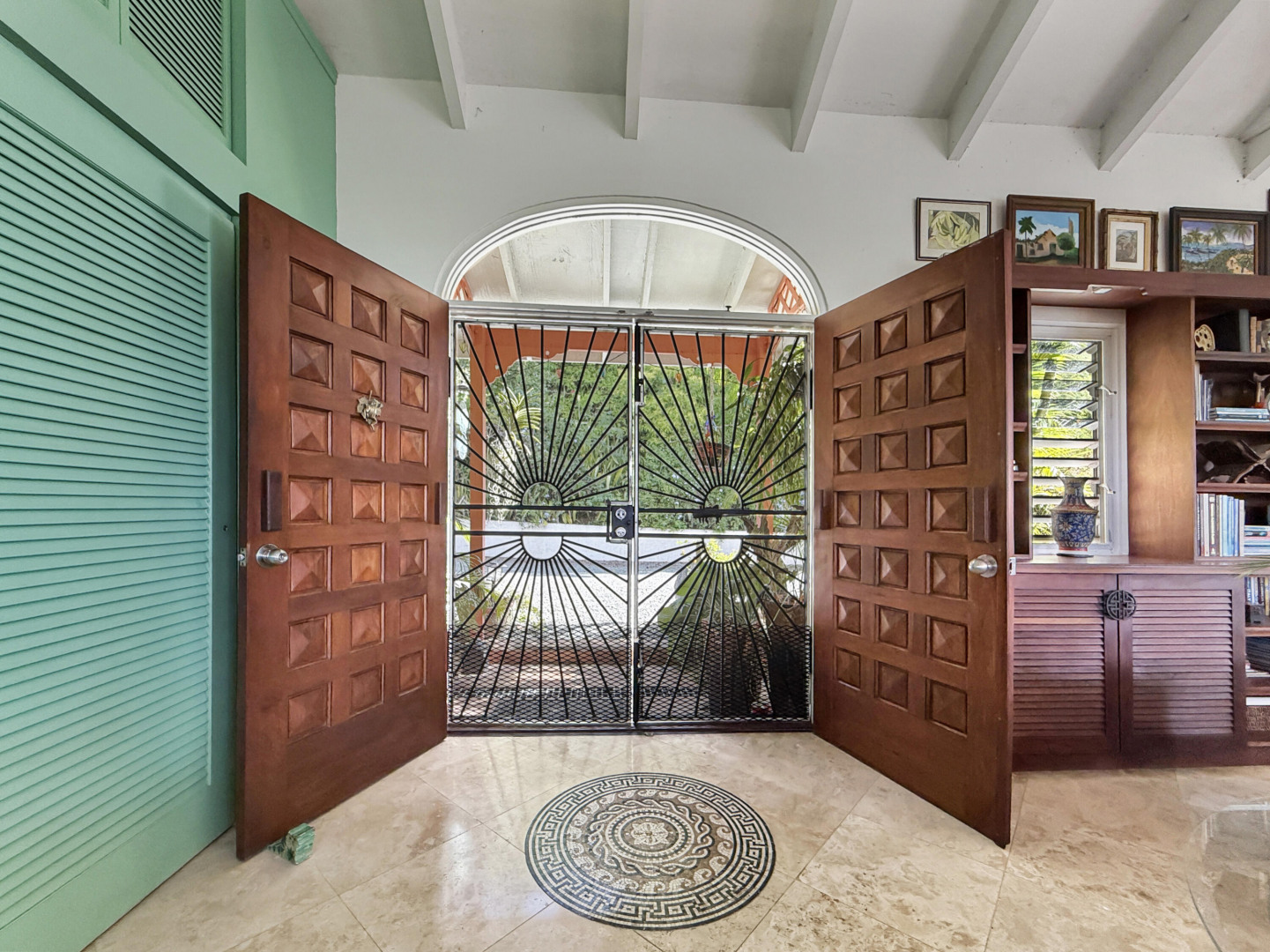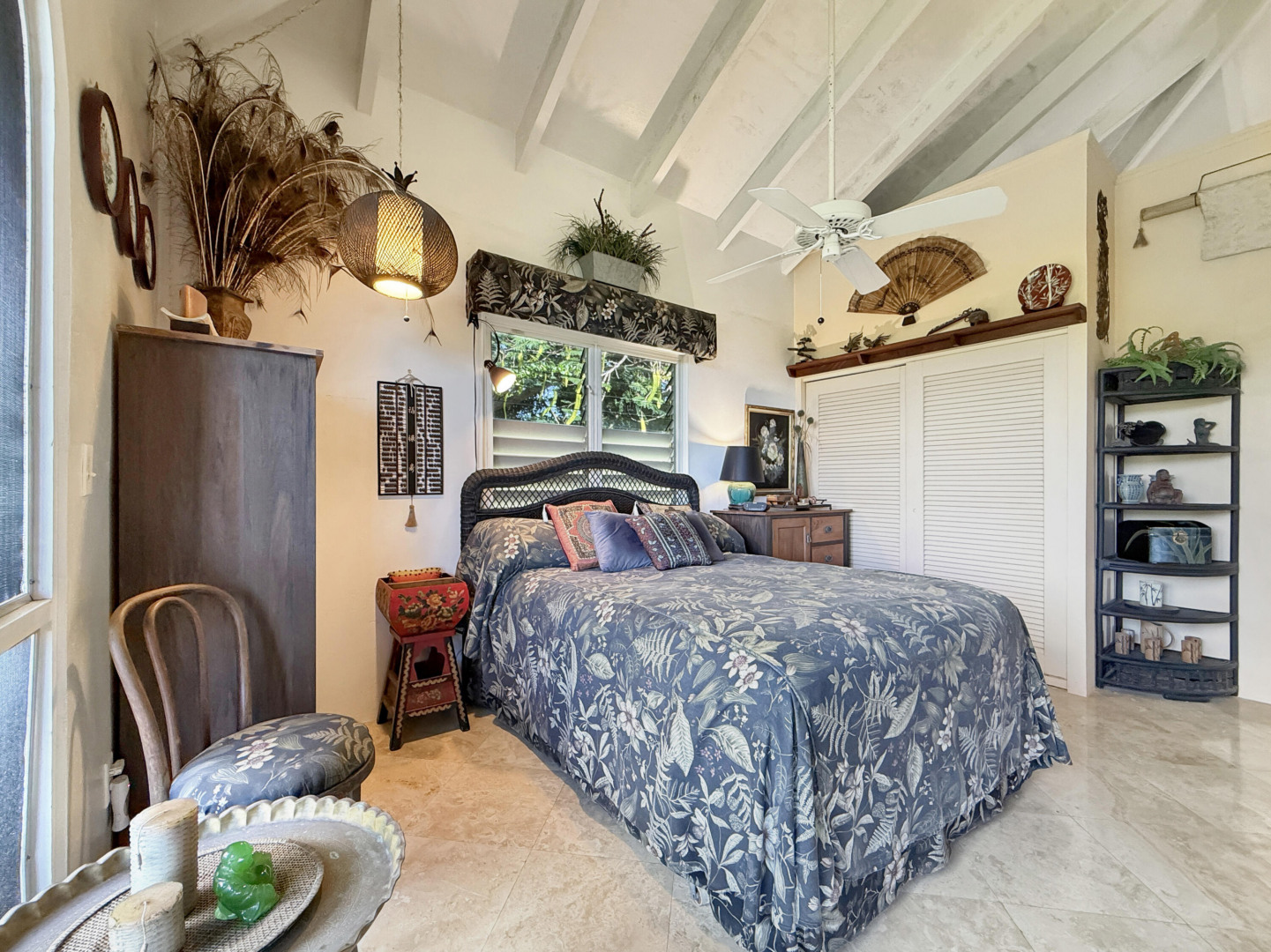 Discover rural peace and quiet, and outstanding views less than 10 minutes from Christiansted in a charming home with many beautiful design details!The owners thoughtfully built this home to maximize the expansive views and capture the breezes. This home has vaulted ceilings, Turkish Travertine tile floors, a salt water pool, solid mahogany doors, a chef's kitchen with custom mahogany plywood kitchen cabinets, Trex decking on the gallery and upper patio, solar panels with net metering, built-in mahogany bookcases and shelves, & a hillside garden with a wide variety of tropical plants, trails, & places to sit. The lower level studio apartment can be rented, be a separate place for guests to stay, or used as an office. This property has been meticulously maintained & cared for.