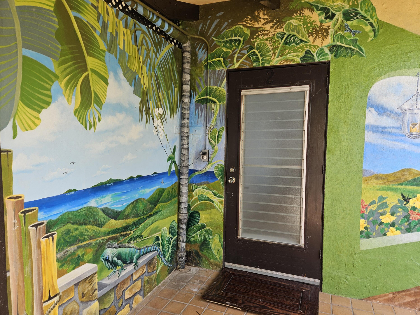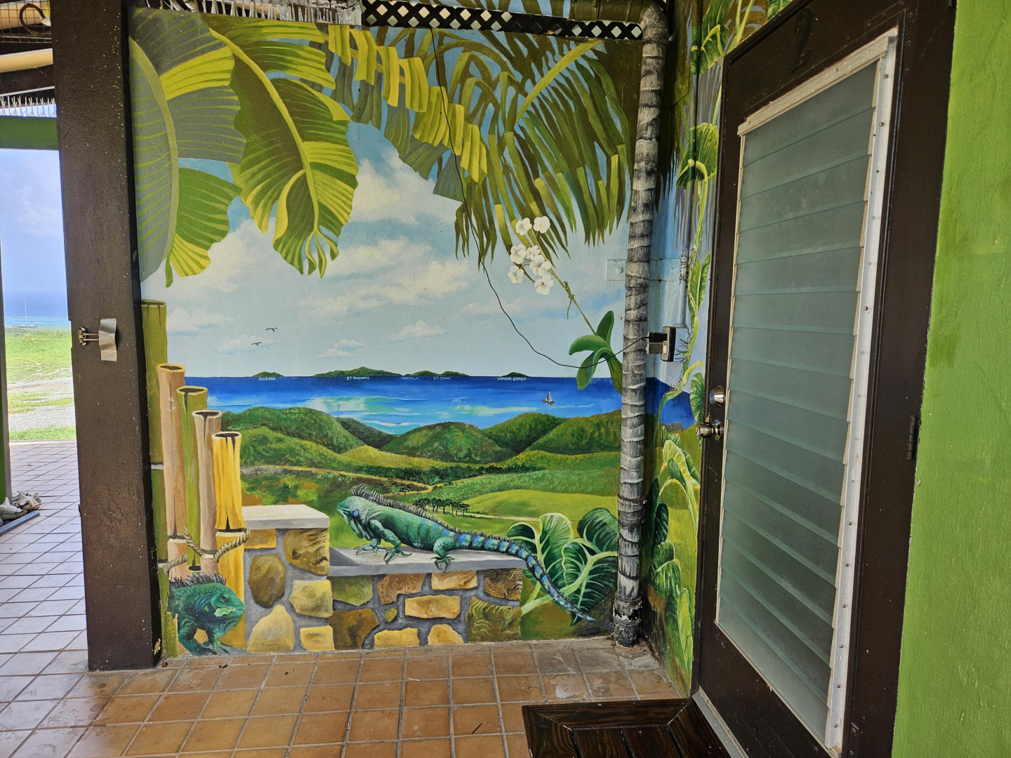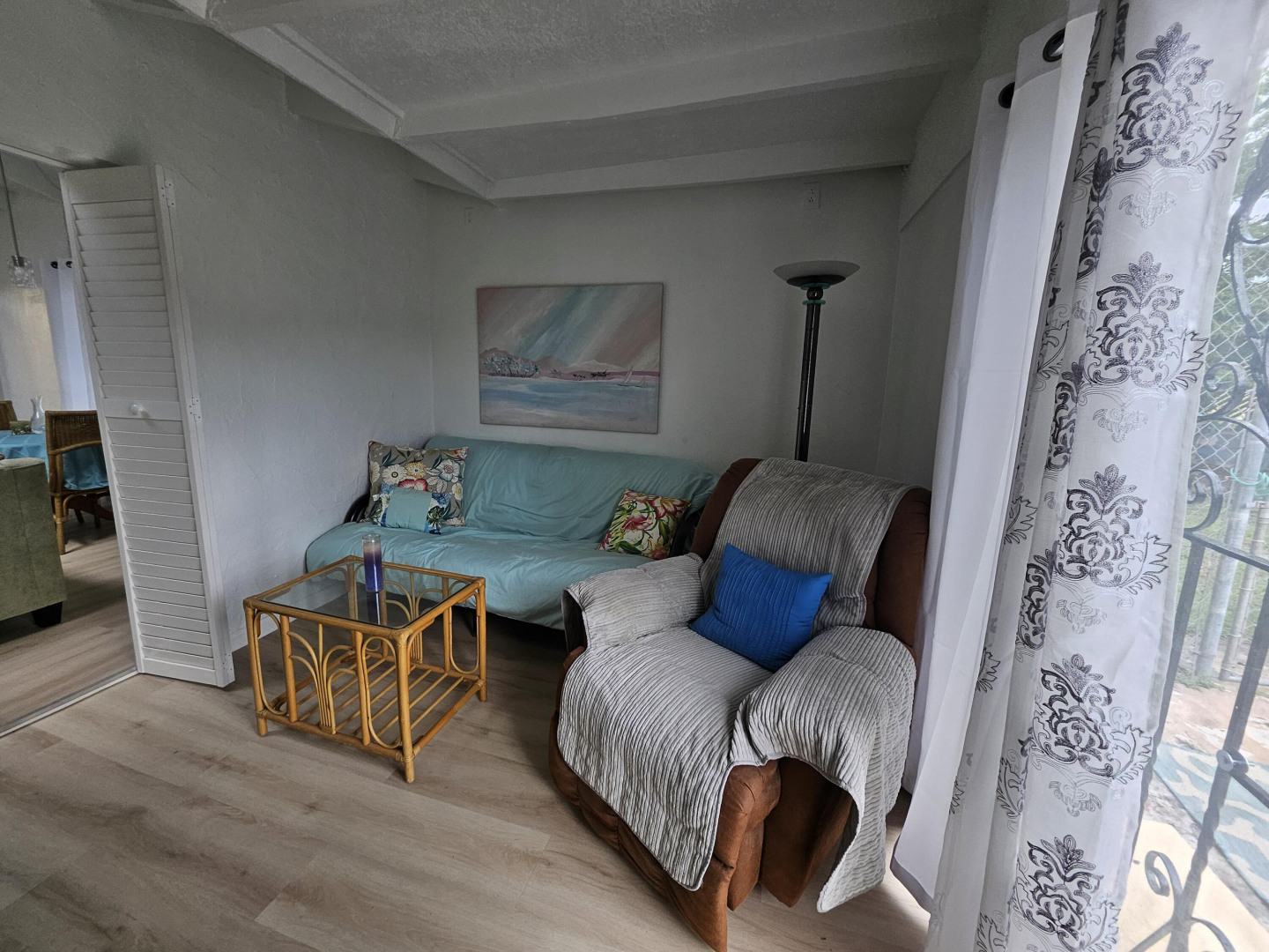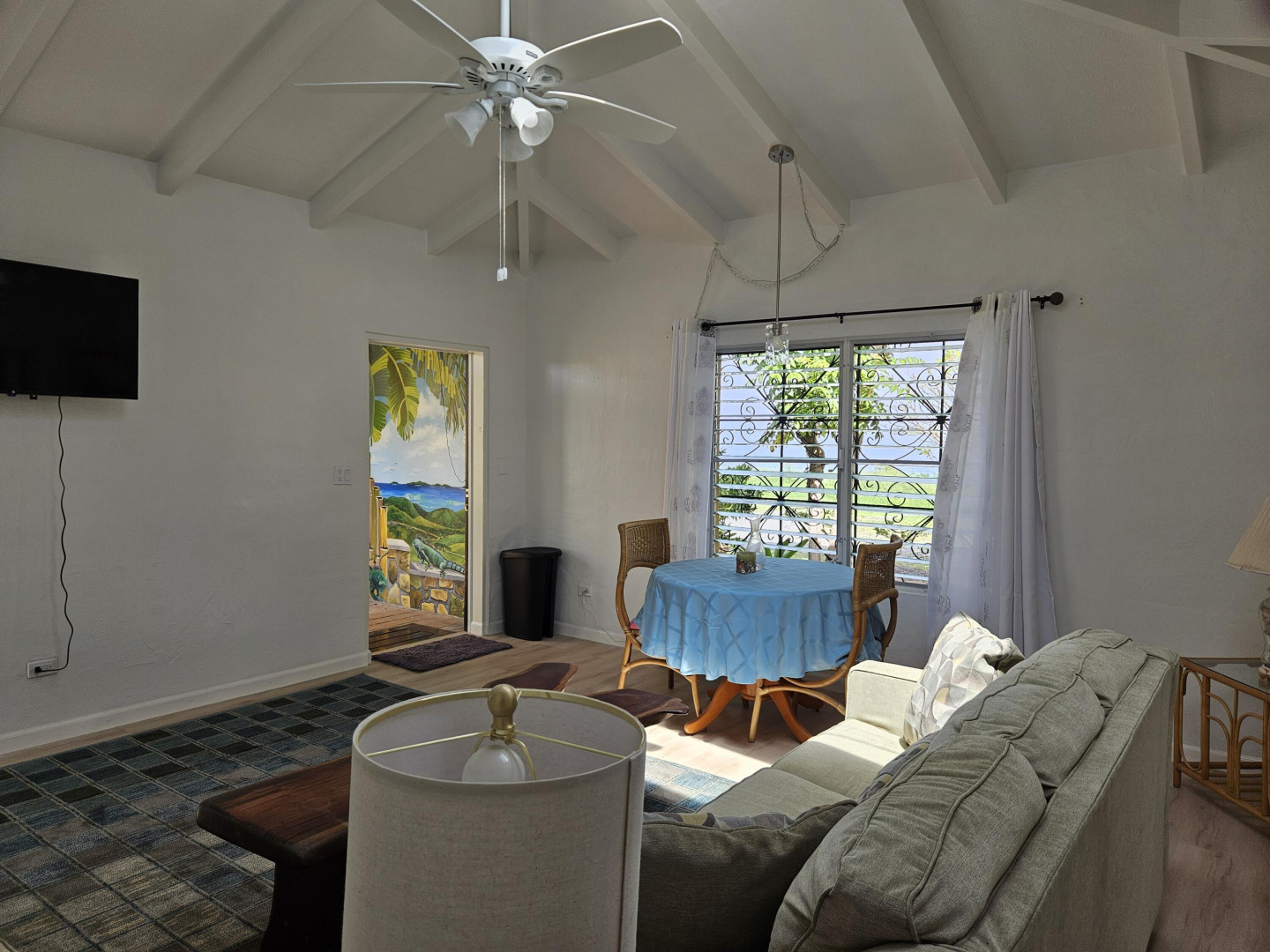 Lovely 1 bedroom apartment within a private home compound. Views from the Livingroom window to the gorgeous water, and on a clear day, to St. Thomas. Brand new kitchen with a gourmet stove. Skylight in the Kitchen and Livingroom let in so much natural light. Large closet area with plenty of storage. Bathroom has 2 sinks, a nice Shower and more storage with a walk in closet. Comes fully furnished and also includes Wapa, Cable, Water and Wifi. Come check out this lovely unit today!