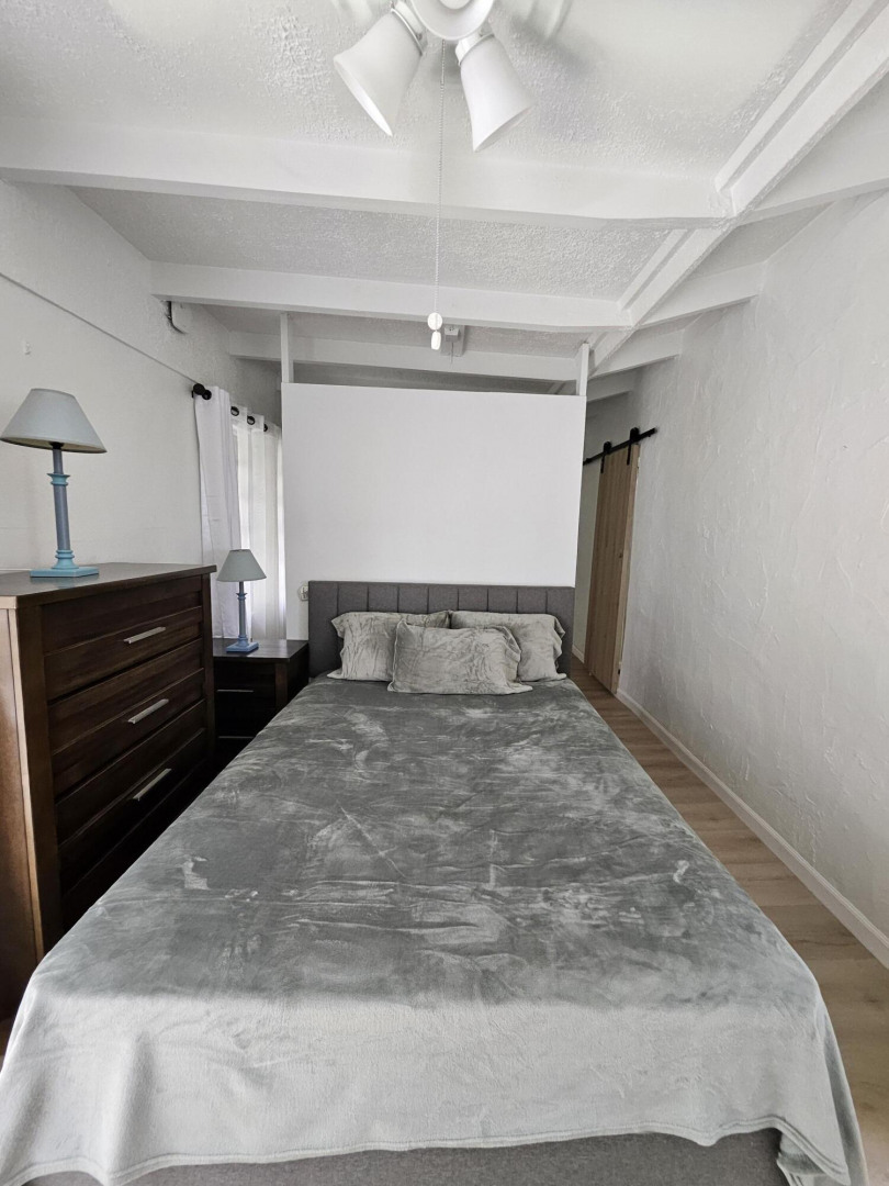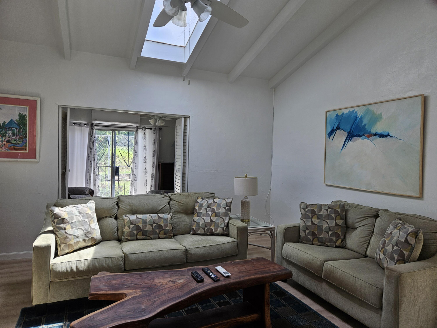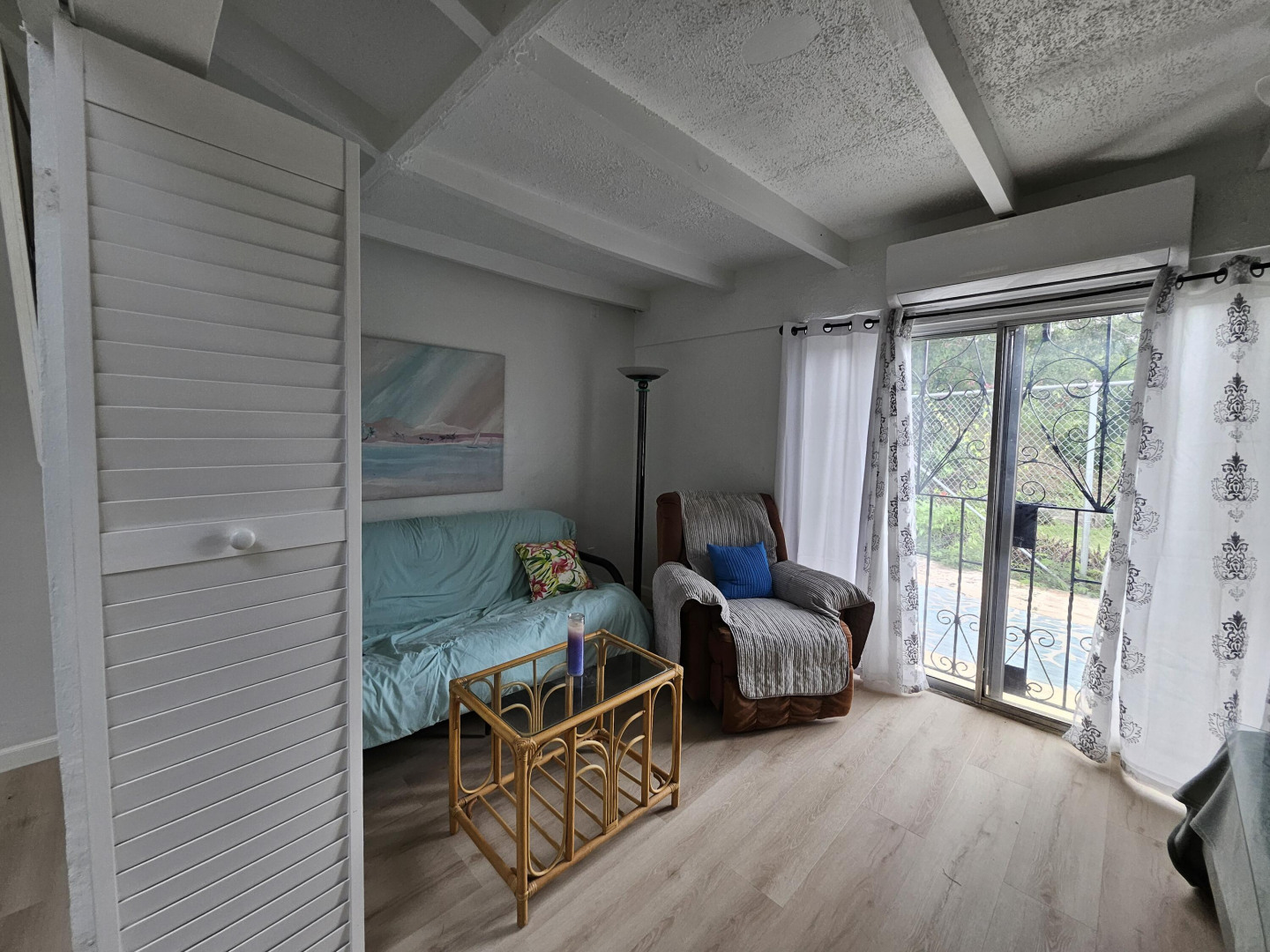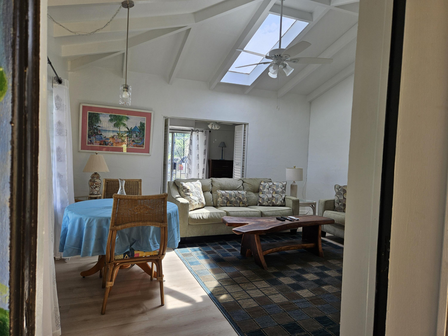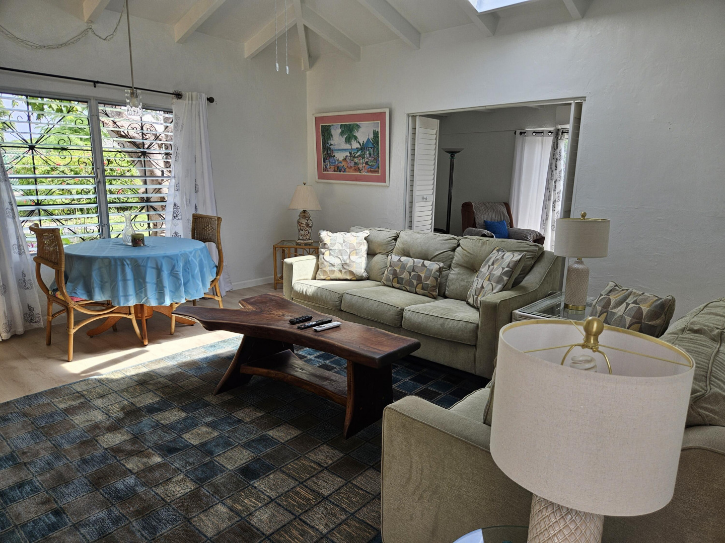 Lovely 1 bedroom apartment within a private home compound. Views from the Livingroom window to the gorgeous water, and on a clear day, to St. Thomas. Brand new kitchen with a gourmet stove. Skylight in the Kitchen and Livingroom let in so much natural light. Large closet area with plenty of storage. Bathroom has 2 sinks, a nice Shower and more storage with a walk in closet. Comes fully furnished and also includes Wapa, Cable, Water and Wifi. Come check out this lovely unit today!