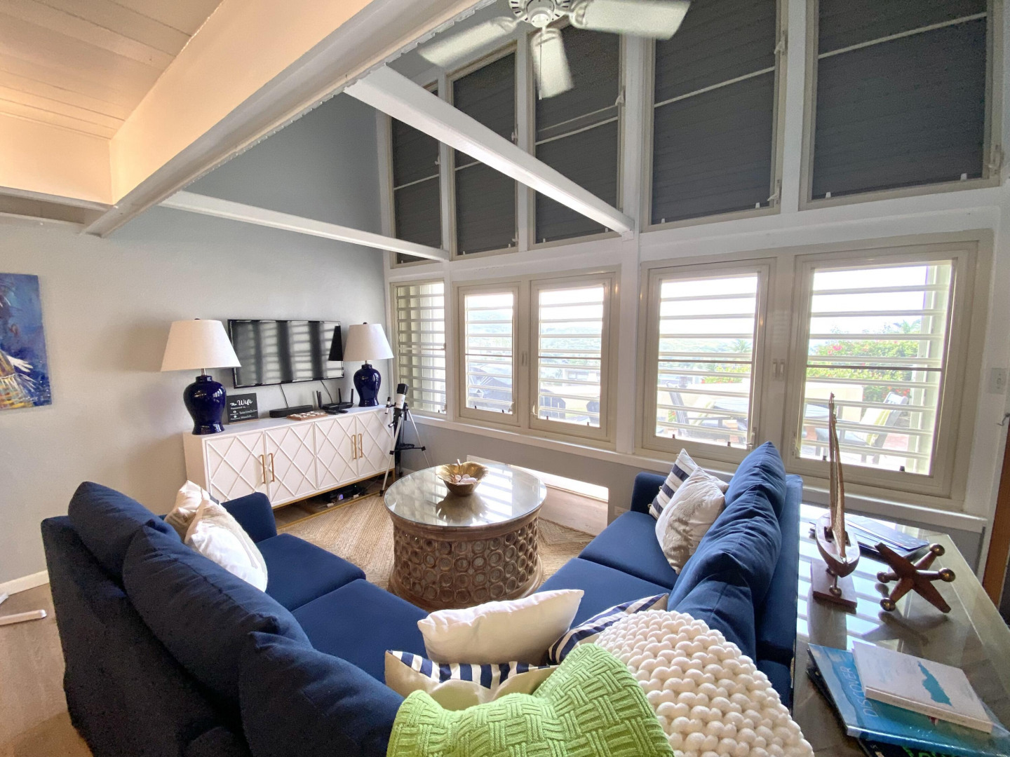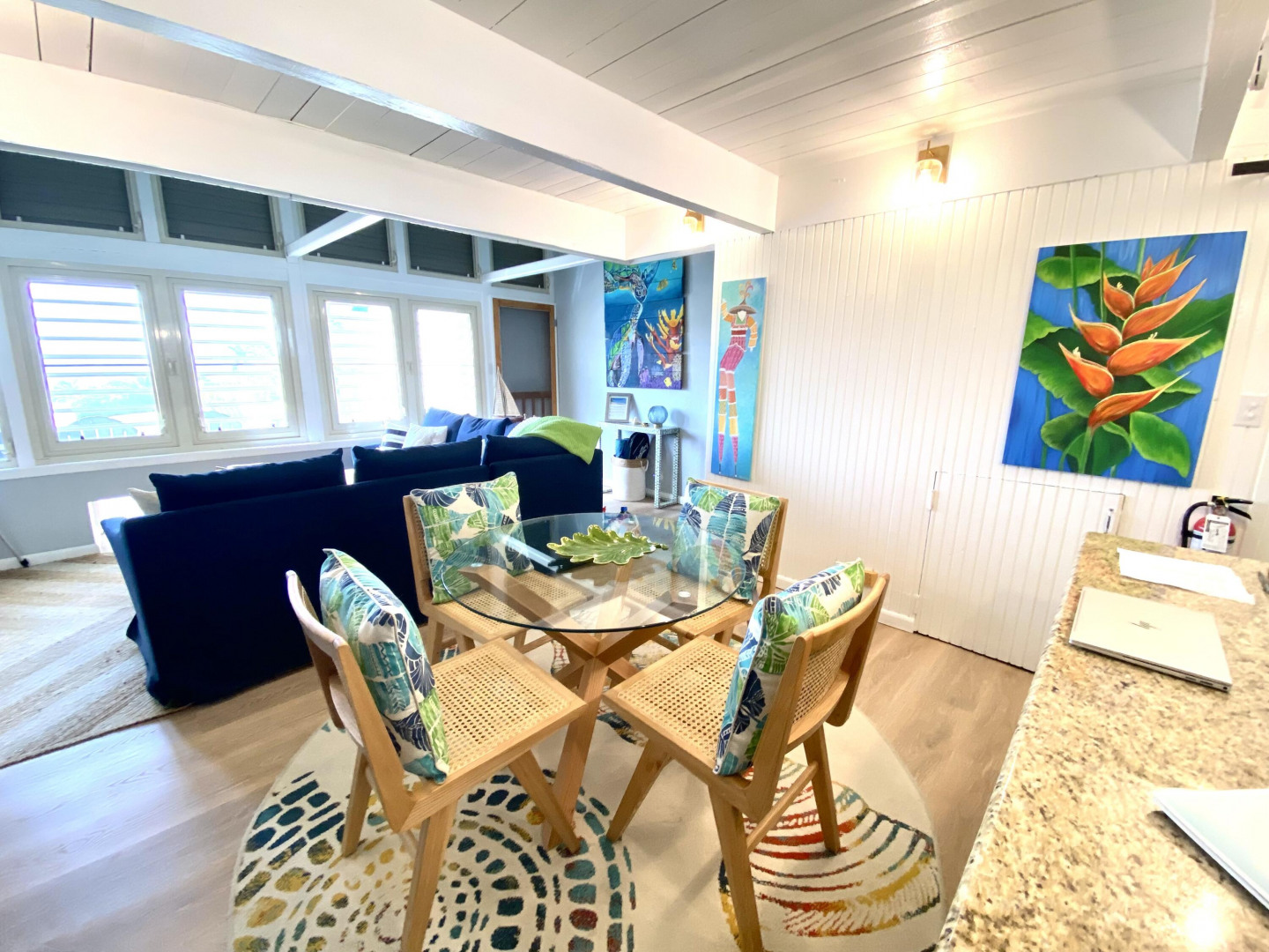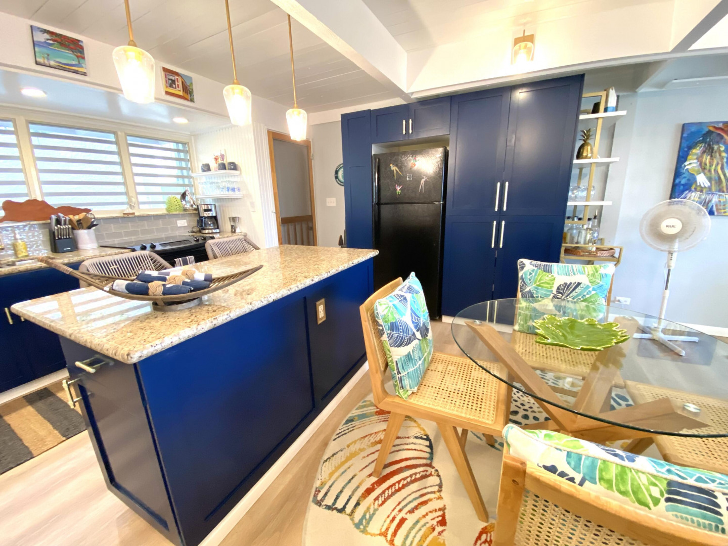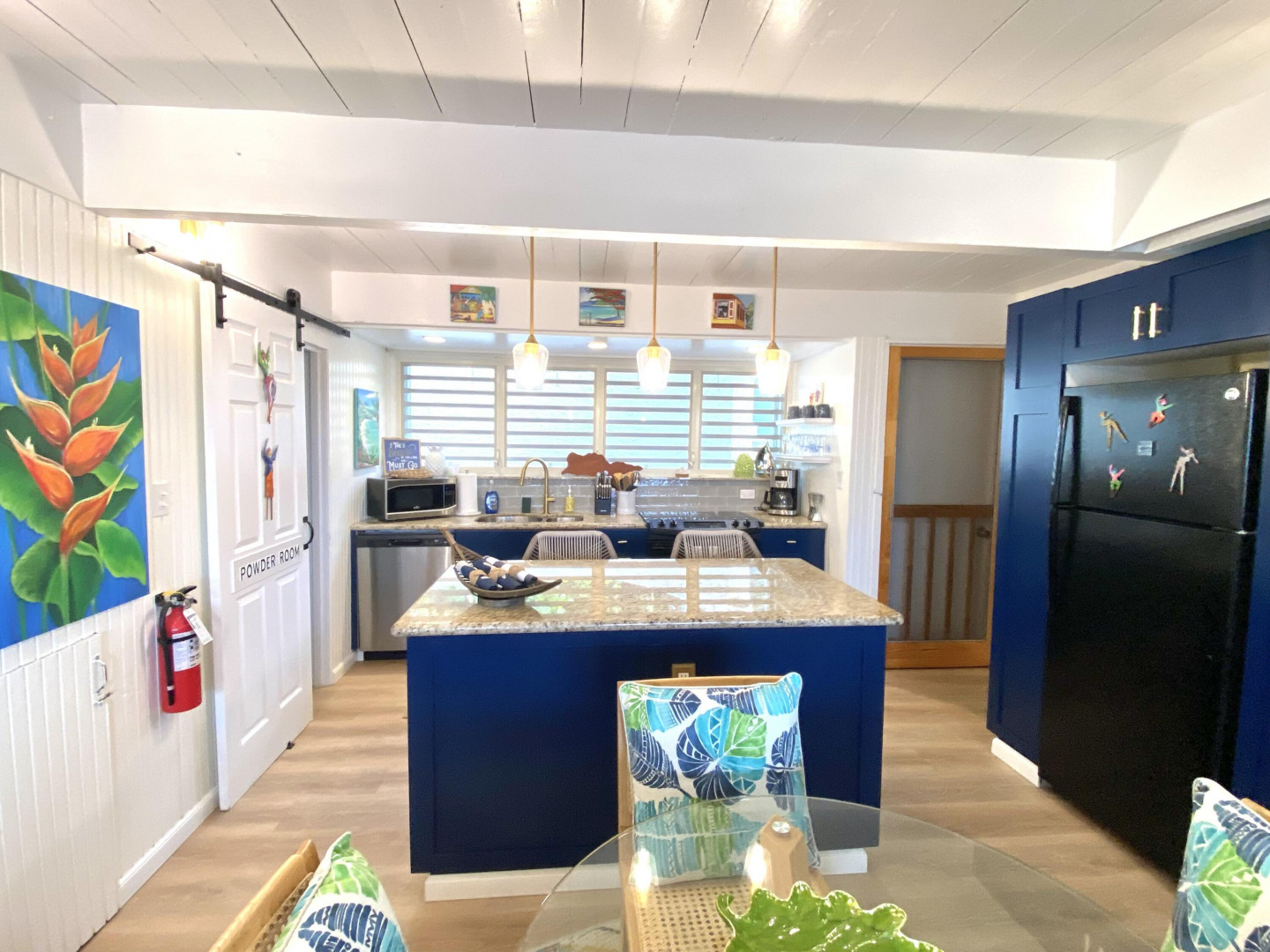 Step into an island oasis! This 1 bedroom, 1.5 bath condo is turn-key and ready for you to enjoy Buck Island views. Located on the East end on a 9-hole golf course, with a disc golf course, 2 tennis courts, pickleball, a pro shop, nearby beach access, Duggan's Reef, Ollies Cafe and a gorgeous pool! This unit has been remodeled and upgrades abound! Here's a few of the major upgrades done within the last 3 years: new windows ,2 skylights, accordion hurricane shutters, interior paint, Luxury Vinyl Tile flooring downstairs, all new lighting throughout, added a full-size washer and dryer, water heater, dishwasher, updated the outdoor shower with a custom tile mural! It has a great short term rental history with wonderful reviews.