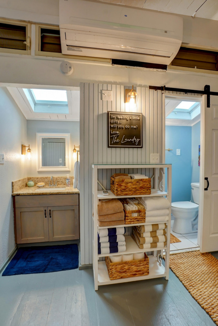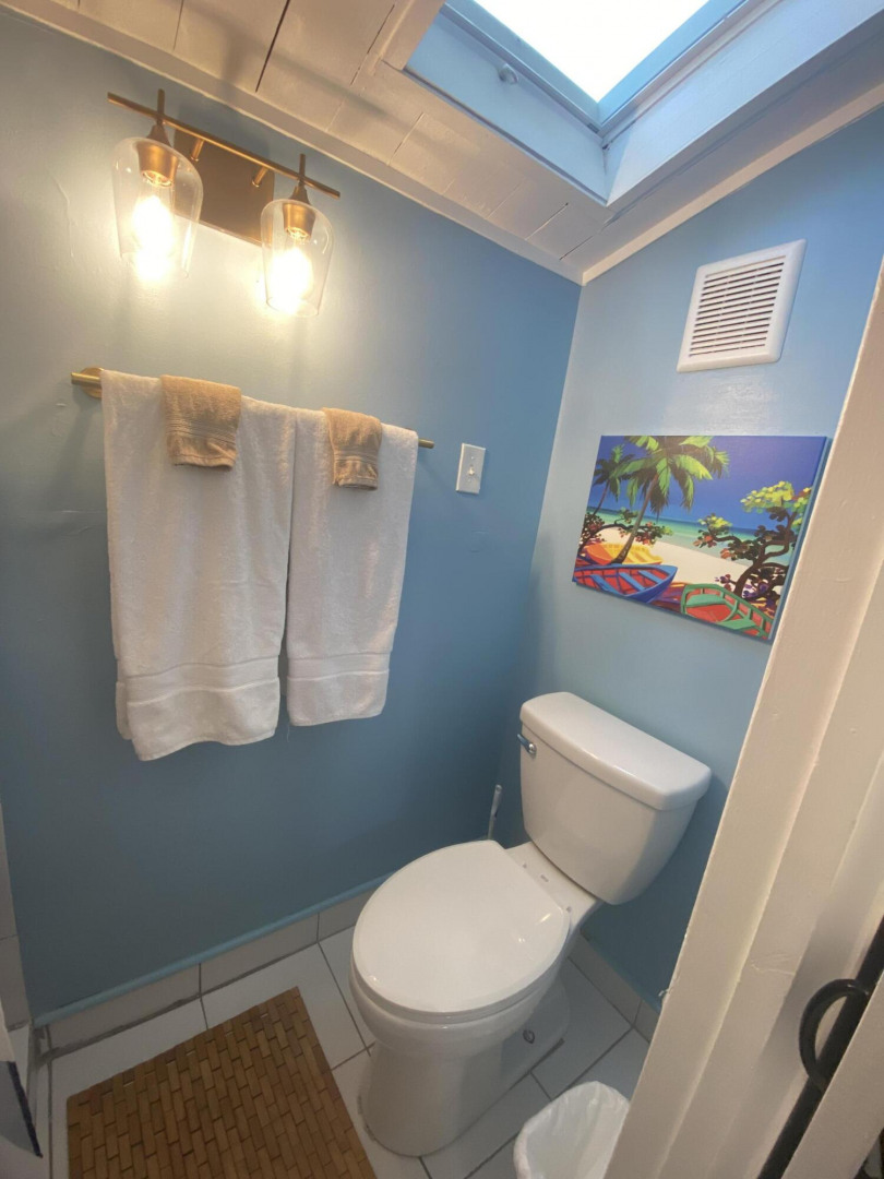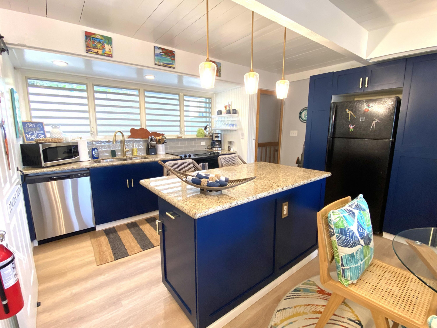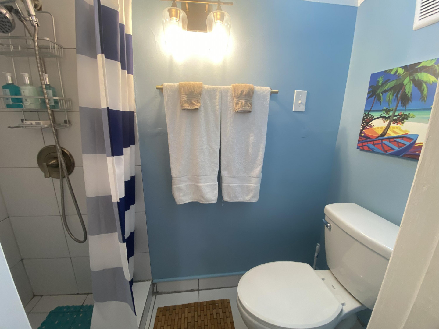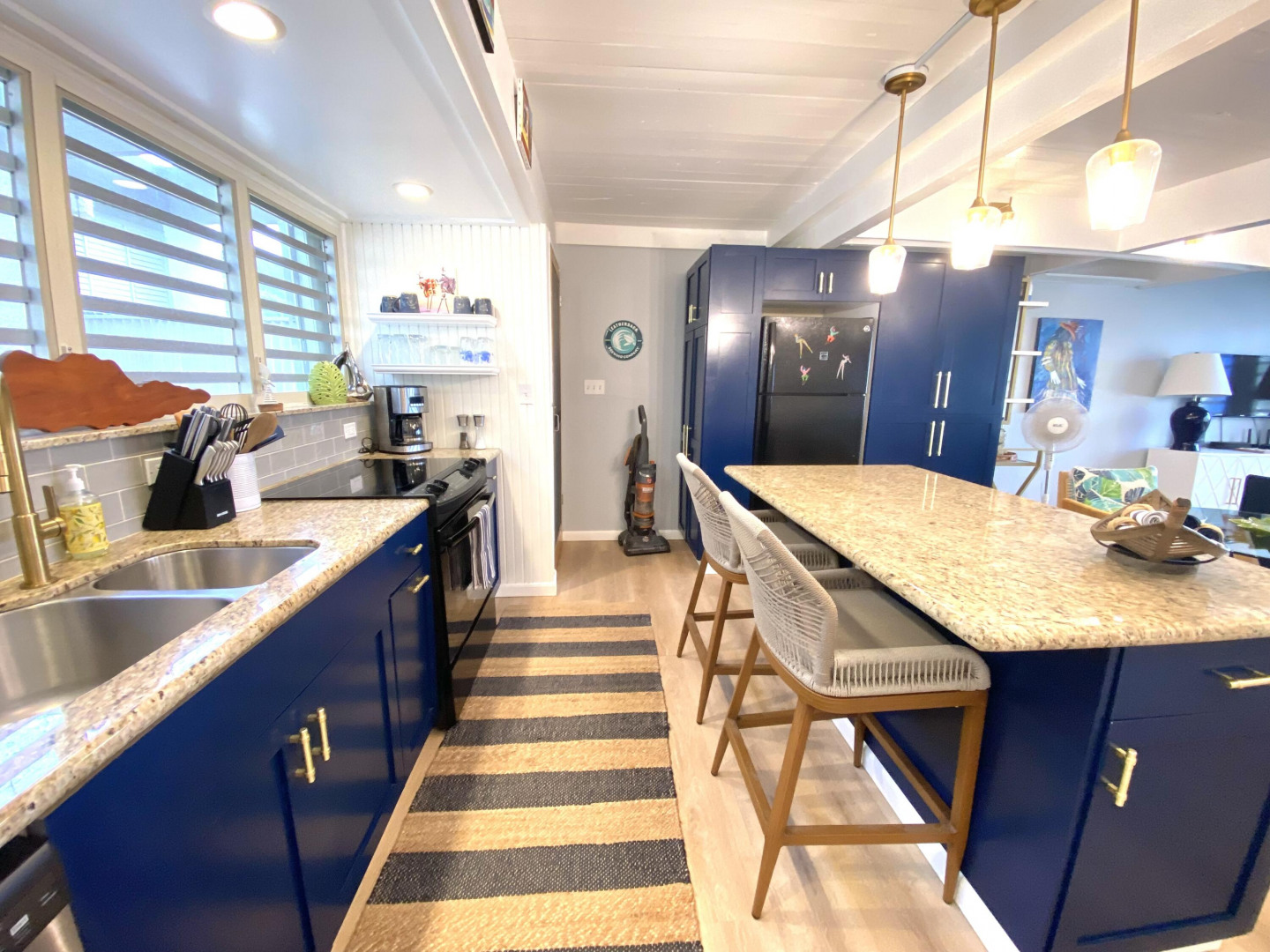 Step into an island oasis! This 1 bedroom, 1.5 bath condo is turn-key and ready for you to enjoy Buck Island views. Located on the East end on a 9-hole golf course, with a disc golf course, 2 tennis courts, pickleball, a pro shop, nearby beach access, Duggan's Reef, Ollies Cafe and a gorgeous pool! This unit has been remodeled and upgrades abound! Here's a few of the major upgrades done within the last 3 years: new windows ,2 skylights, accordion hurricane shutters, interior paint, Luxury Vinyl Tile flooring downstairs, all new lighting throughout, added a full-size washer and dryer, water heater, dishwasher, updated the outdoor shower with a custom tile mural! It has a great short term rental history with wonderful reviews.