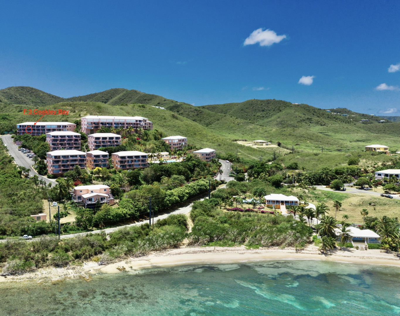 Welcome to Azure View, with unobstructed views of Buck Island & the azure Caribbean Sea! Located in the coveted F building in the desired Coakley Bay Condos, this delightful 2 bed, 2.5 bath unit has no exterior stairs. Two galleries offer private spaces to relax & experience the Caribbean breezes and the amazing views. Unit is beautifully appointed with durable & attractive Polywood furniture upstairs. This unit has been a successful vacation rental. Includes new washer/dryer, on-site trash, monthly pest control, wifi, & cable. Minutes from beautiful beaches, great restaurants, historical Christiansted, golf courses & The St. Croix Yacht club. It's ready to be your new island home! Complex offers free water, an automatic generator, on-site hair salon, & seasonal restaurant. Pets allowed.