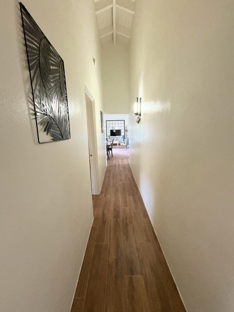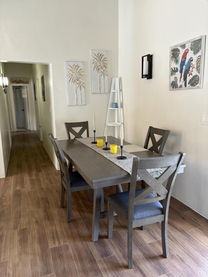 This home is a delight. Features a gallery, yard, pool, with 3 bedrooms with split AC units,and two baths. Great floorplan with comfortable island decor. Nice open kitchen with breakfast bar open to the living/dining area. Entire home has newly installed tile. Quiet neighborhood just east of Christiansted. In the event landlord agrees to a pet, there will be a $500 non refundable pet deposit.