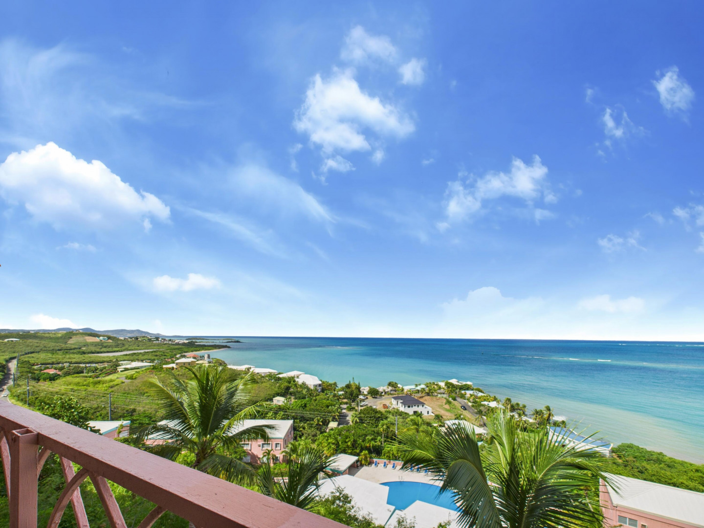 Soak in unforgettable Caribbean blues from this bright and breezy 2-bedroom, 2.5-bath condo in the coveted G Building--perfectly positioned mid-complex for some of the most expansive, jaw-dropping views from Buck Island to Christiansted Harbour.Inside, enjoy spacious bedrooms, each with its own en suite bathroom, plus the convenience of a half bath upstairs--perfect for guests. The updated kitchen and bathrooms pair beautifully with the crisp, airy layout that highlights the views from every angle. Two inviting galleries capture the island breeze for effortless indoor-outdoor living. You'll also appreciate the in-unit washer and dryer and no exterior stairs, making daily life easy and comfortable.The community has a sparkling, resort style pool with umbrellas, plenty of lounge chairs,and an added bonus of it being heated in the winter to maximize comfort and enjoyment. If you're a socializer- you can catch up with your neighbors at the poolside cocktail parties and the holiday gatherings. For walking enthusiasts, an almost ½-mile loop around the complex with rolling hills offers a scenic way to stay active while taking in the views. When you're ready to for a delicious lunch or dinner, the popular Goat Soup and Whiskey restaurant is right onsite from December-April! One of the islands favorite restaurants- just steps away! No need to worry about where you'll keep your extra items or beach gear- onsite storage units are also available to rent for just $15/month (as available). Enjoy the added convenience of mail and package delivery down at the office!