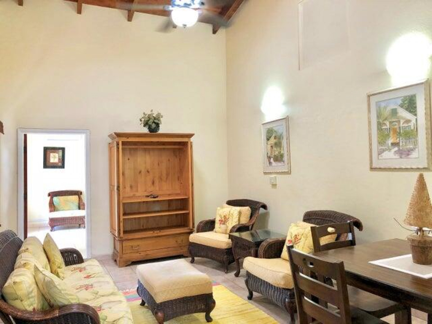 All-inclusive, modernly furnished, 1 BR/2BA unit with private washer/dryer includes water, electricity, split A/C, DISH, & WIFI. Small pets under ~20 lbs considered with one time non-refundable pet fee. This rental sits on a large private lot surrounded by lush trees in Estate La Reine, just a few minutes to grocery stores, restaurants, shopping & banks.