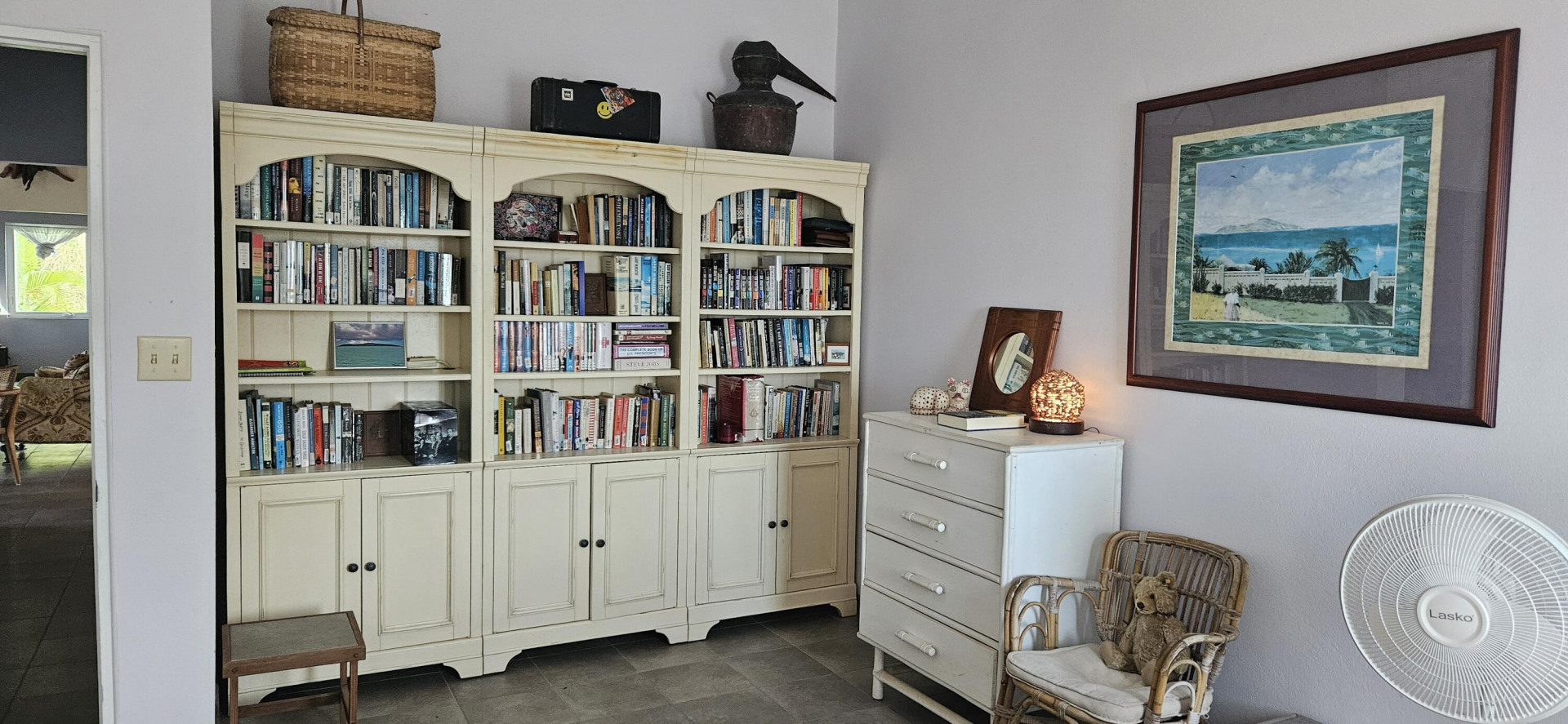 High up in the hills of Union and Mt. Washington, this gated house has expansive views encompassing Green Cay to the north and Great Salt Pond to the south. A generously sized living room leads to a massive deck from which you can enjoy cocktails in a scenic peaceful setting. Cute kitchen with view. The primary bedroom has access to the deck and an ensuite bathroom with large shower. The guest bedroom is comfortable and has a library wall. Close by is the second bathroom that also has a large shower. The third bedroom is enormous and could function as an artist studio, playroom, entertainment area, or family room. Beneath the house is a two-car garage connected to a spacious workshop and a fully automated generator. Exterior landscaping in mature and lush. Tenant pays all utilities