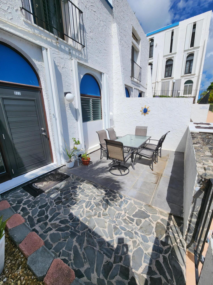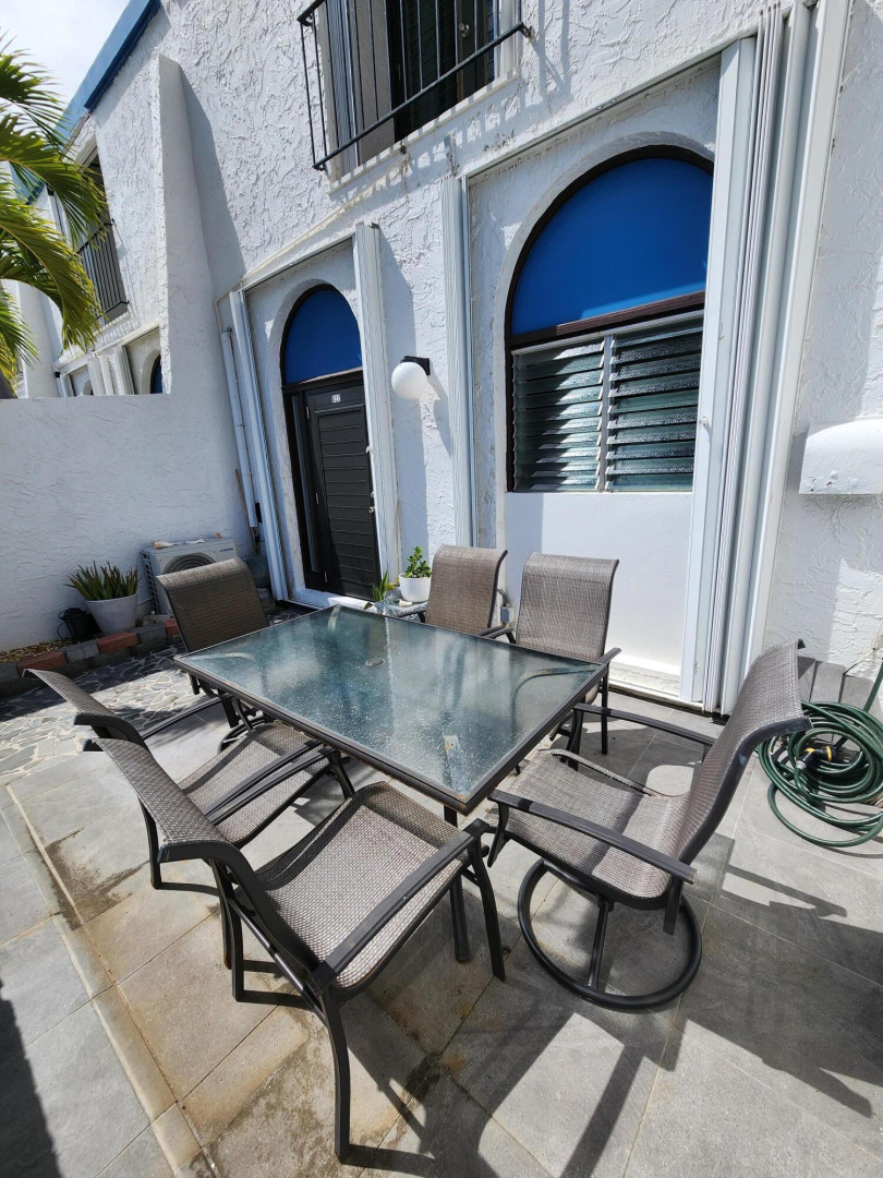 Available starting Dec. 8th, includes internet. Fully furnished 2-bedroom, 2.5-bath condo in the gated Questa Verde complex with a backup generator. The walk-in level boasts a bright kitchen with a new dishwasher along with a large living space, bonus atrium for plenty of natural light without the heat, half bath, and laundry closet with stackable washer and dryer while the upper level features 2 bedrooms and 2 full bathrooms. There are two split A/C units for cooling comfort and a front patio perfect for dining al fresco while enjoying South Shore views. The complex has a large pool and entertaining area.Unit also listed for sale MLS #25-2079