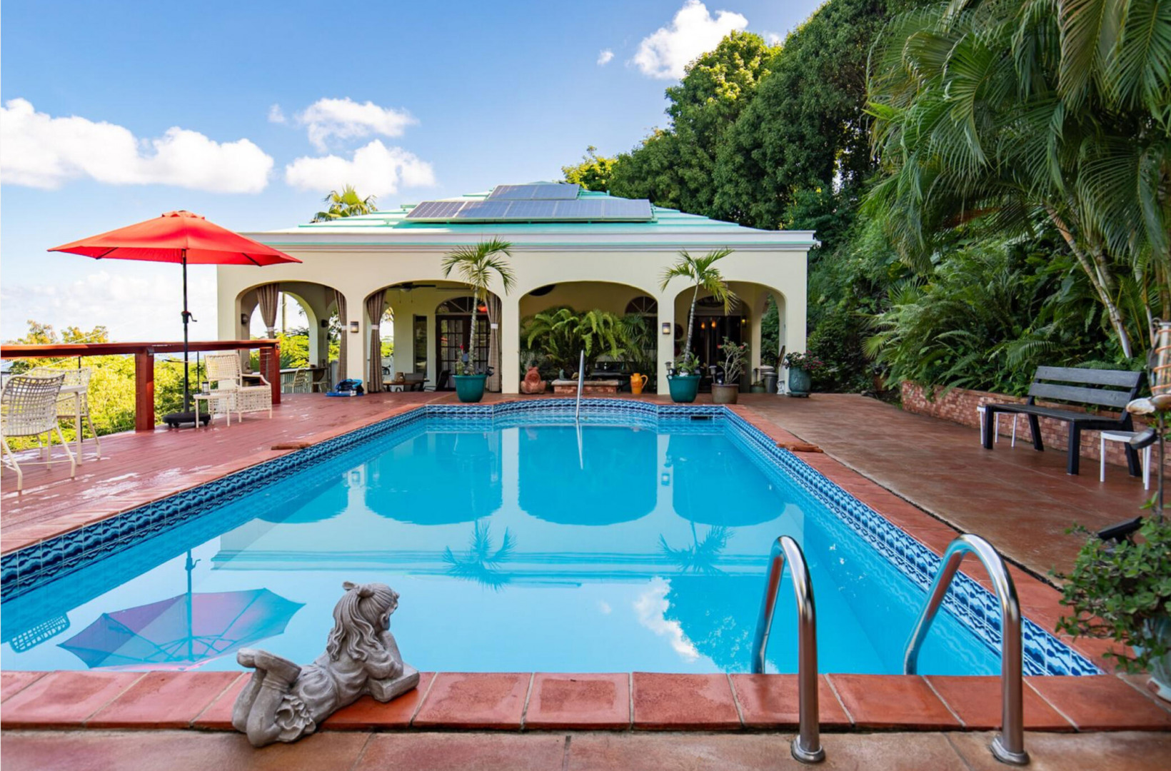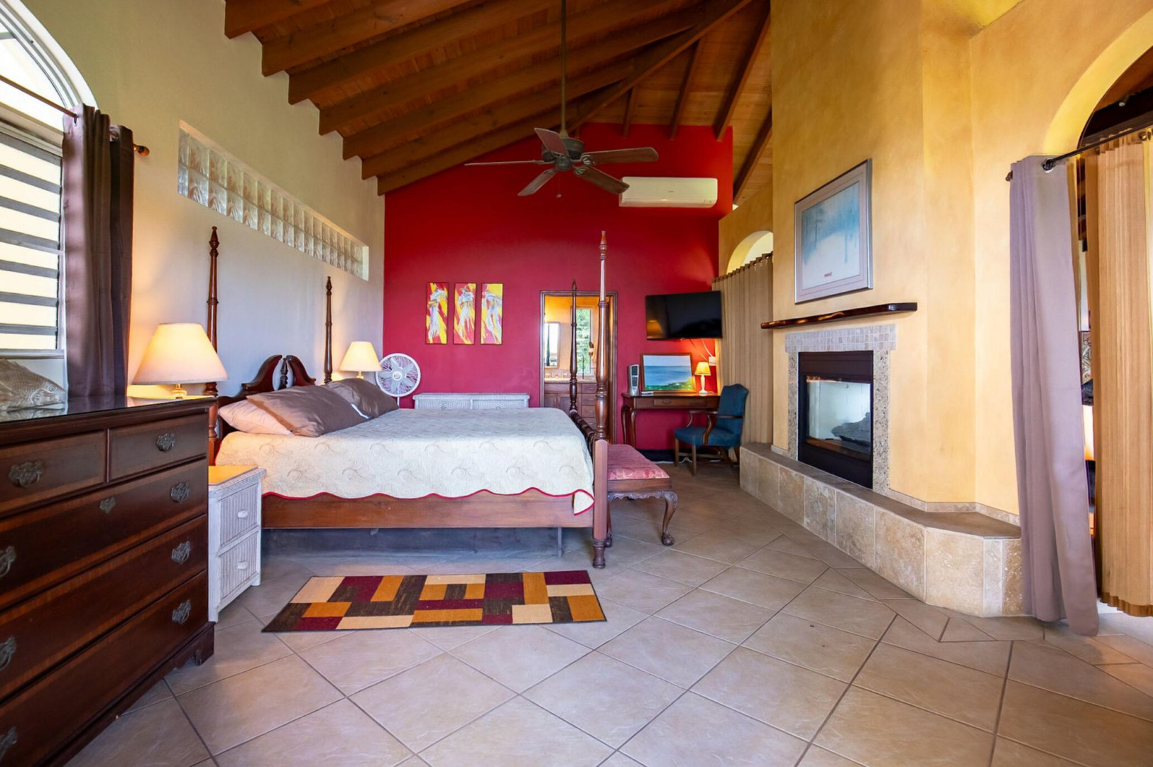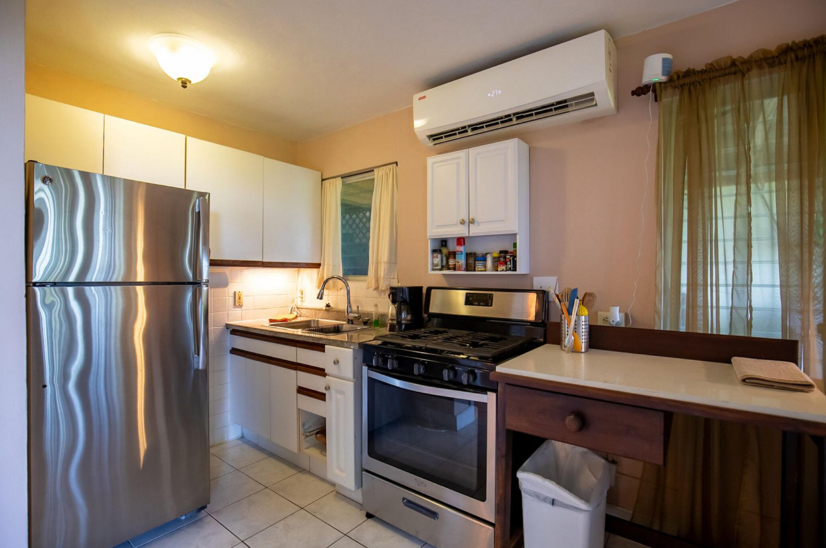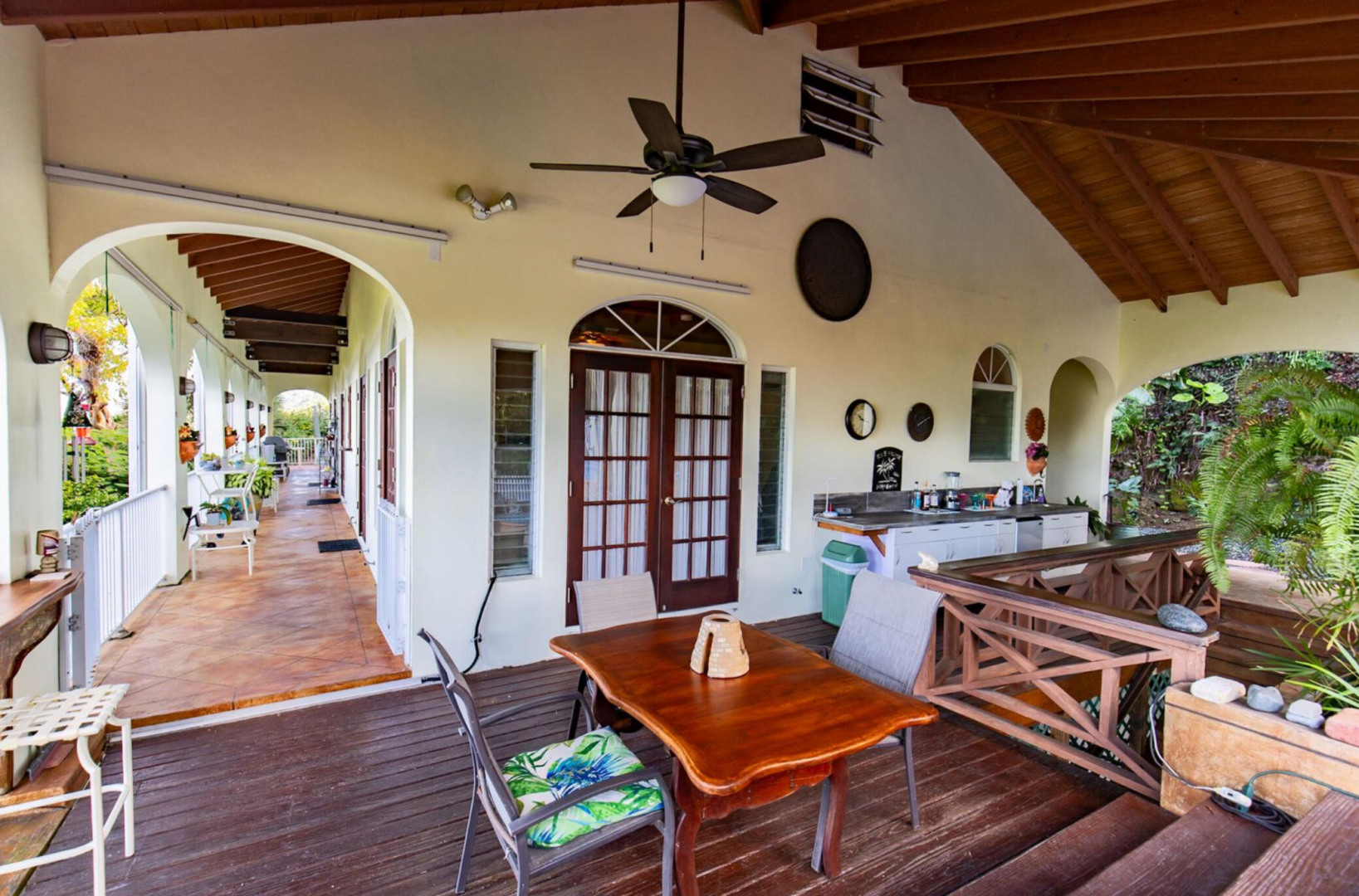 Experience island living at its finest in this poured-concrete 3-bedroom, 2-bathroom home featuring a spacious loft with striking cypress ceilings. The gourmet kitchen showcases Spanish Cedar custom cabinets by Mike Lustig, a mahogany bar, a new 36'' 5-burner gas range with convection, and a new dishwasher. Beautiful mahogany balusters add warmth and craftsmanship throughout.The expansive 320 sq ft primary suite includes a walk-in closet, double vanity, double shower, skylight, custom tile work, and a luxurious 6-ft cast iron soaking tub. An outdoor shower adjacent to the main suite offers a secluded, spa-like experience.Enjoy seamless indoor-outdoor living with a wraparound deck and an observation deck overlooking the North Shore, offering panoramic views and cooling breezes. The 15x30 tiled saltwater pool features an auto chlorine generator, variable-speed pump, and a new Maytronics robot vacuum, surrounded by a stained concrete deck and an outdoor bar with sink and mini fridge, creating a private resort atmosphere.