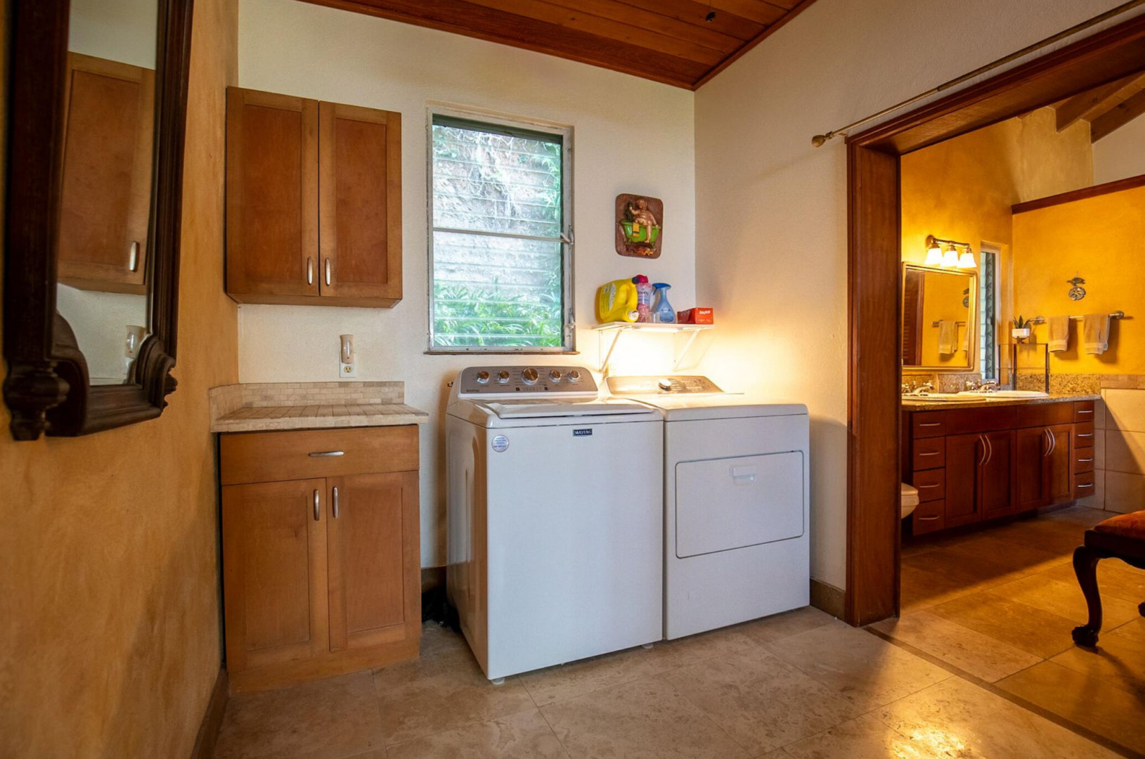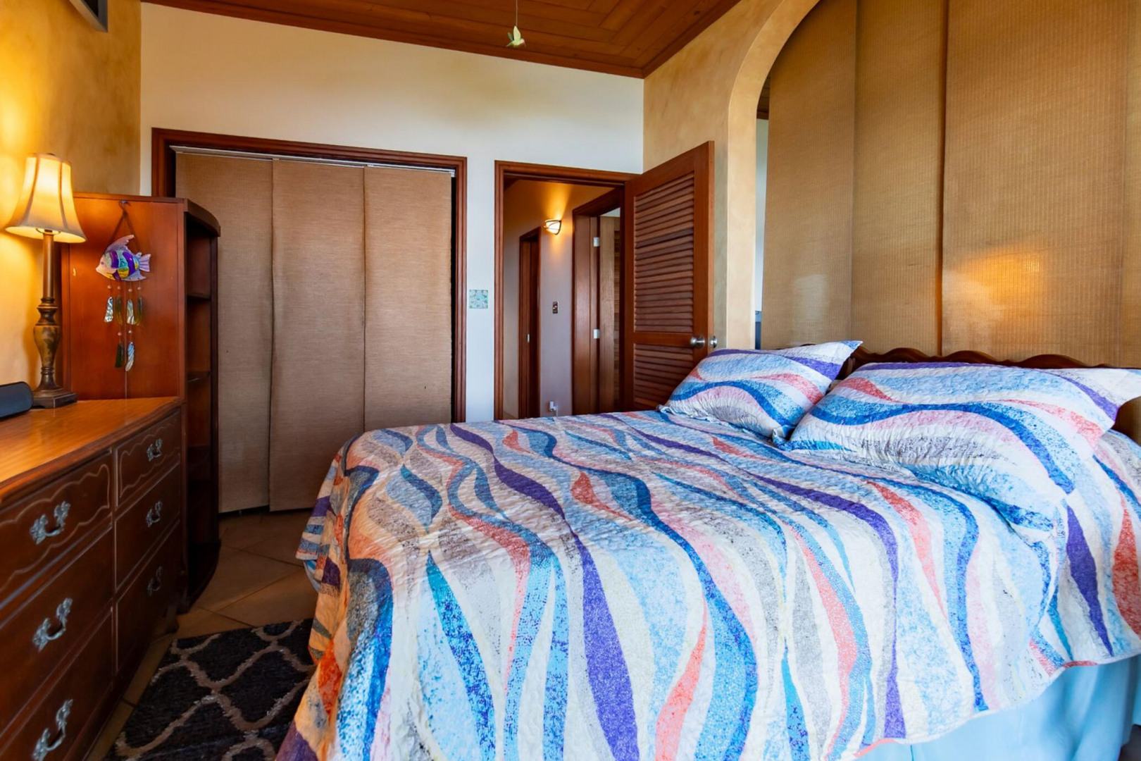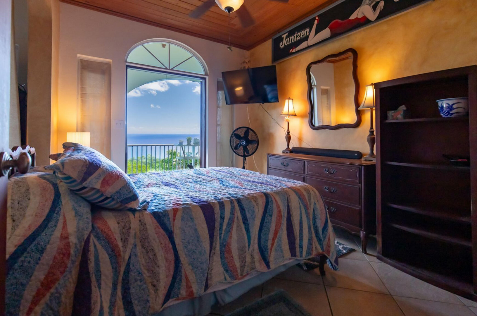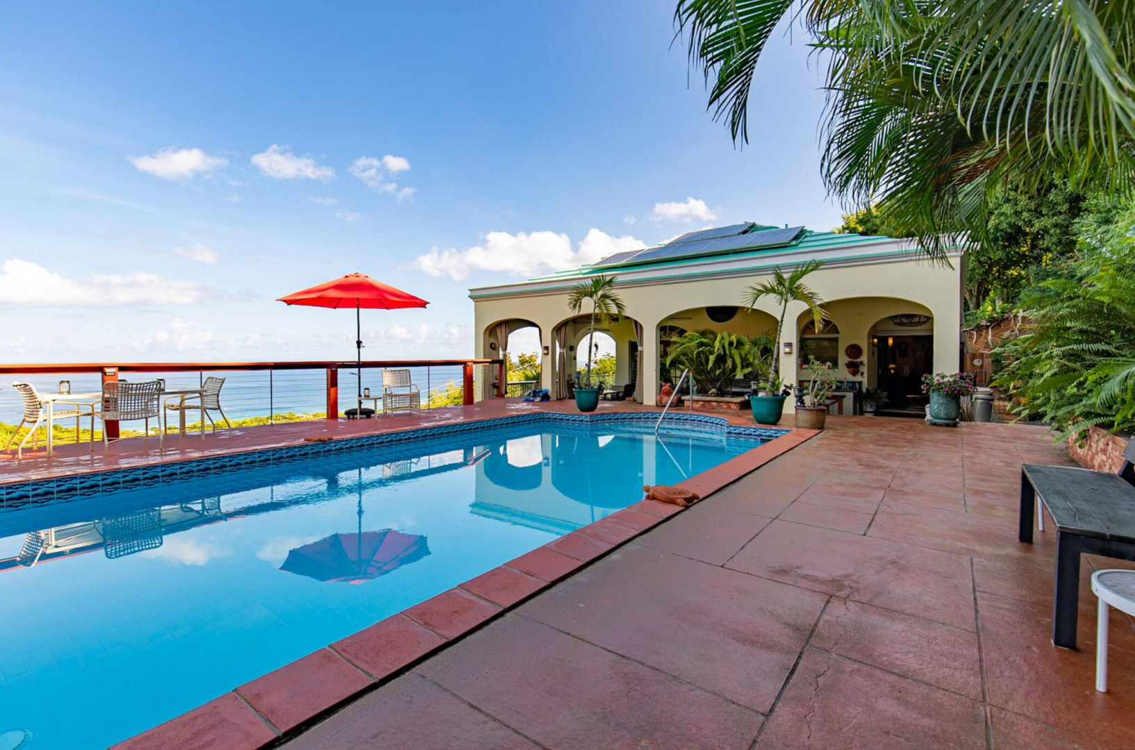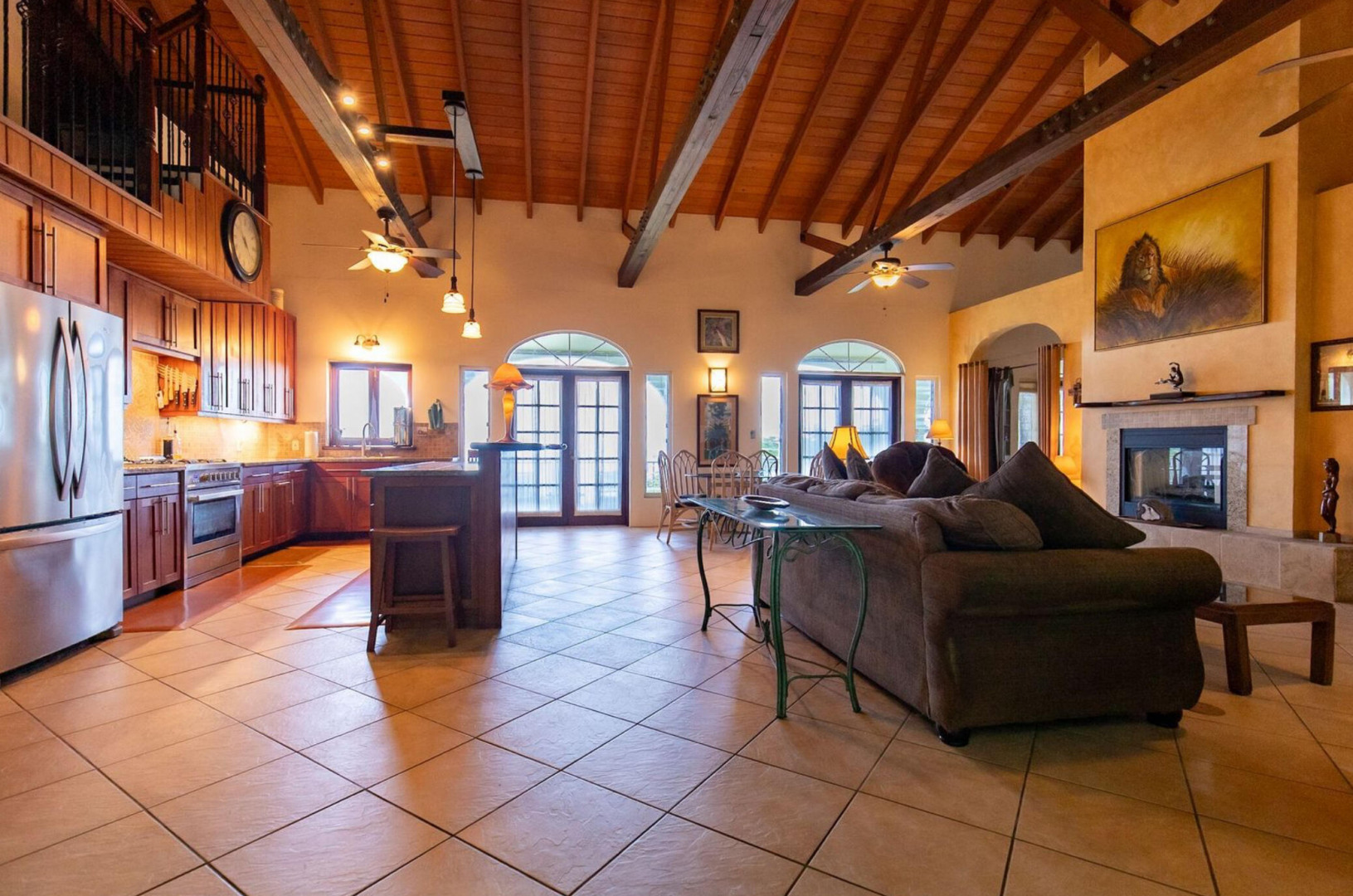 Experience island living at its finest in this poured-concrete 3-bedroom, 2-bathroom home featuring a spacious loft with striking cypress ceilings. The gourmet kitchen showcases Spanish Cedar custom cabinets by Mike Lustig, a mahogany bar, a new 36'' 5-burner gas range with convection, and a new dishwasher. Beautiful mahogany balusters add warmth and craftsmanship throughout.The expansive 320 sq ft primary suite includes a walk-in closet, double vanity, double shower, skylight, custom tile work, and a luxurious 6-ft cast iron soaking tub. An outdoor shower adjacent to the main suite offers a secluded, spa-like experience.Enjoy seamless indoor-outdoor living with a wraparound deck and an observation deck overlooking the North Shore, offering panoramic views and cooling breezes. The 15x30 tiled saltwater pool features an auto chlorine generator, variable-speed pump, and a new Maytronics robot vacuum, surrounded by a stained concrete deck and an outdoor bar with sink and mini fridge, creating a private resort atmosphere.