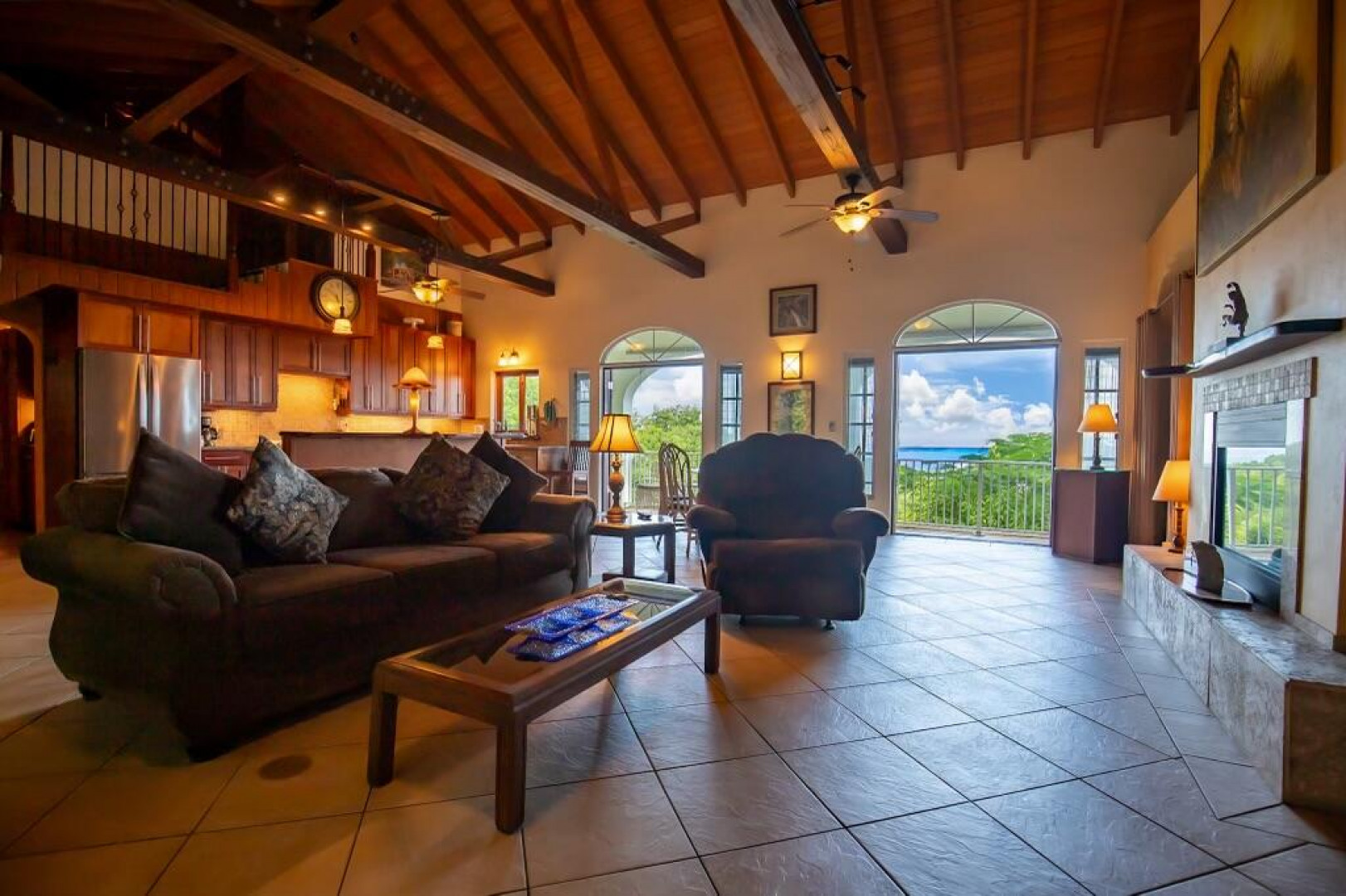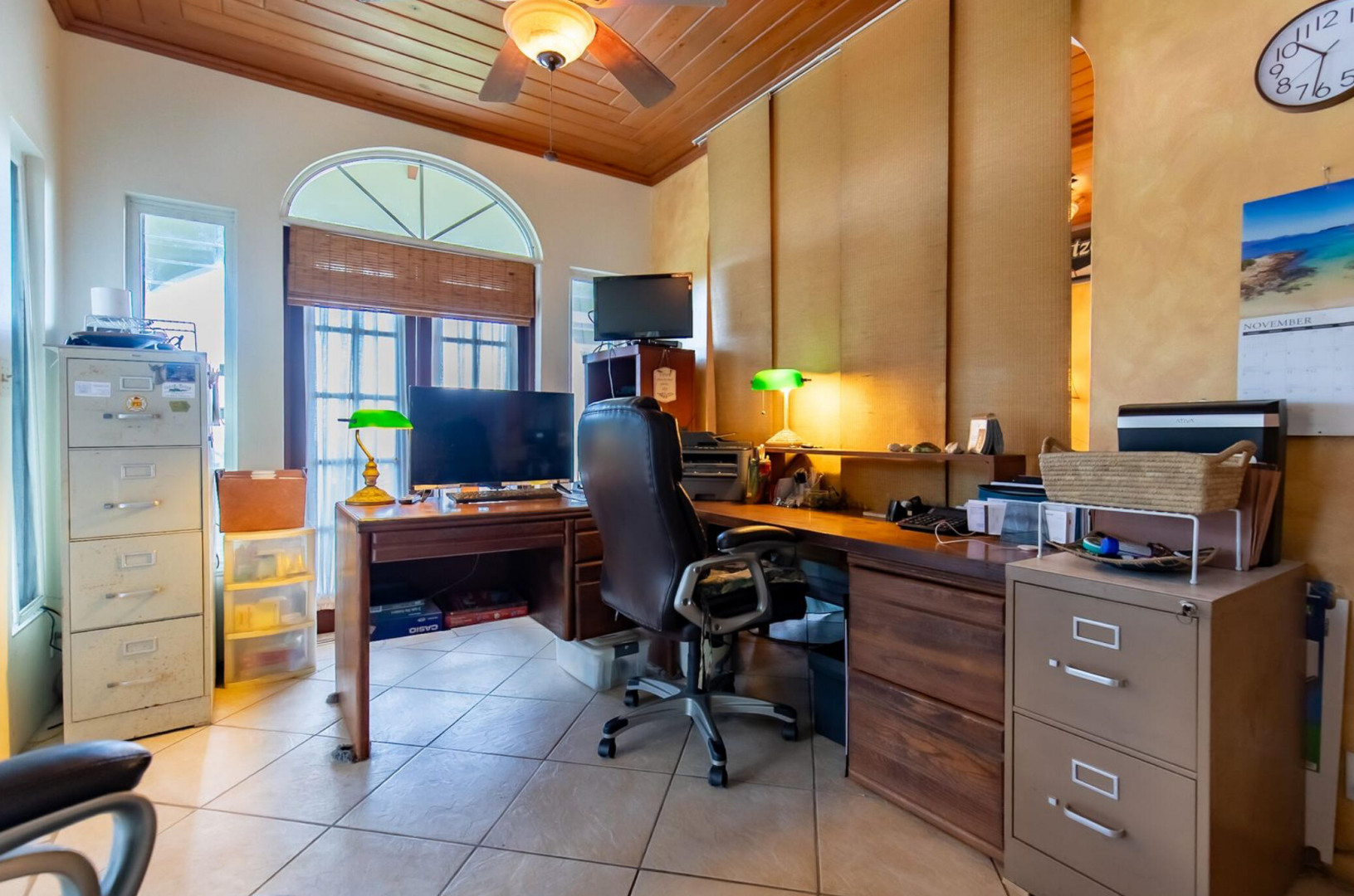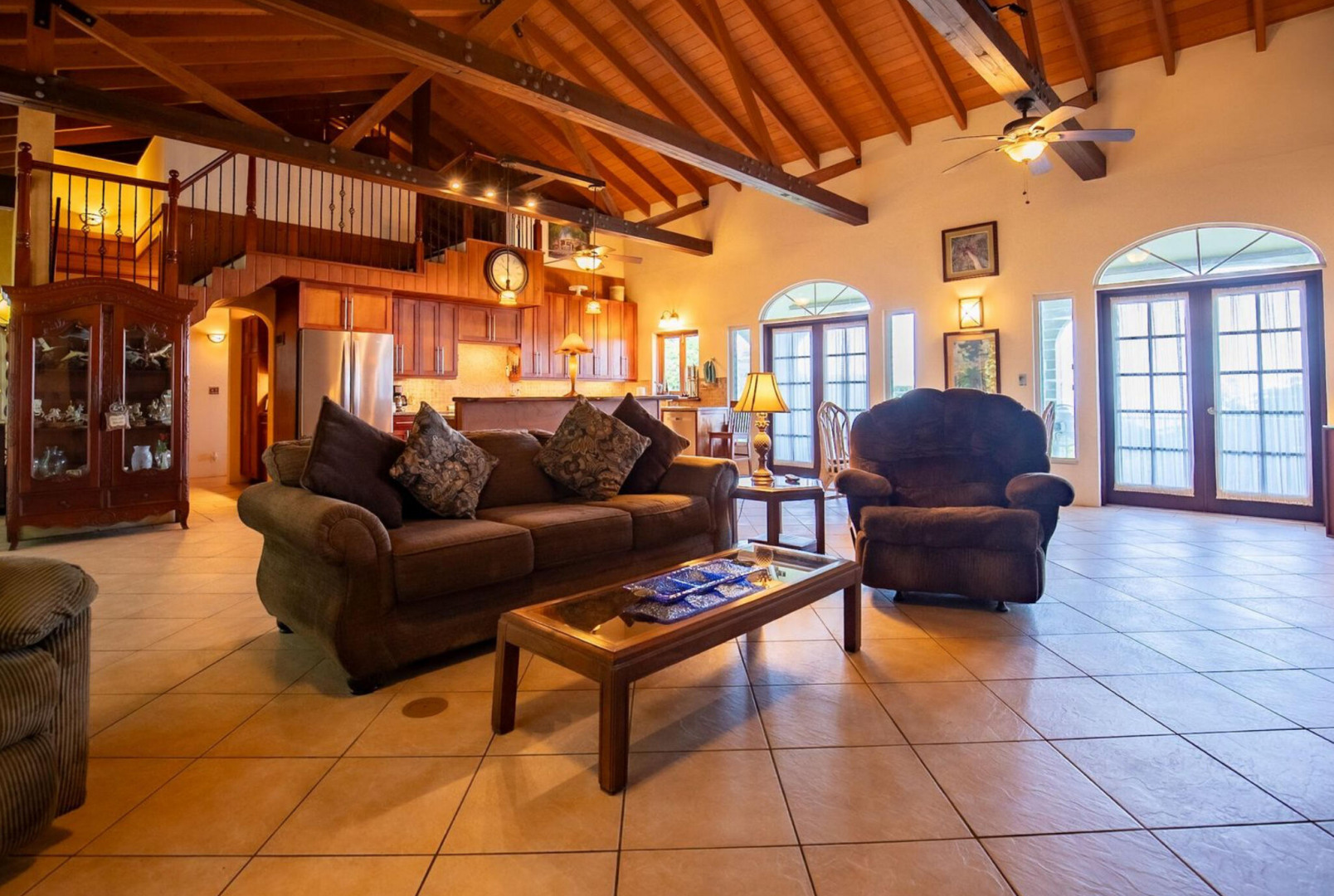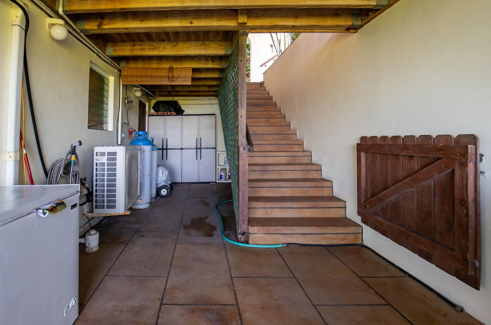 Experience island living at its finest in this poured-concrete 3-bedroom, 2-bathroom home featuring a spacious loft with striking cypress ceilings. The gourmet kitchen showcases Spanish Cedar custom cabinets by Mike Lustig, a mahogany bar, a new 36'' 5-burner gas range with convection, and a new dishwasher. Beautiful mahogany balusters add warmth and craftsmanship throughout.The expansive 320 sq ft primary suite includes a walk-in closet, double vanity, double shower, skylight, custom tile work, and a luxurious 6-ft cast iron soaking tub. An outdoor shower adjacent to the main suite offers a secluded, spa-like experience.Enjoy seamless indoor-outdoor living with a wraparound deck and an observation deck overlooking the North Shore, offering panoramic views and cooling breezes. The 15x30 tiled saltwater pool features an auto chlorine generator, variable-speed pump, and a new Maytronics robot vacuum, surrounded by a stained concrete deck and an outdoor bar with sink and mini fridge, creating a private resort atmosphere.