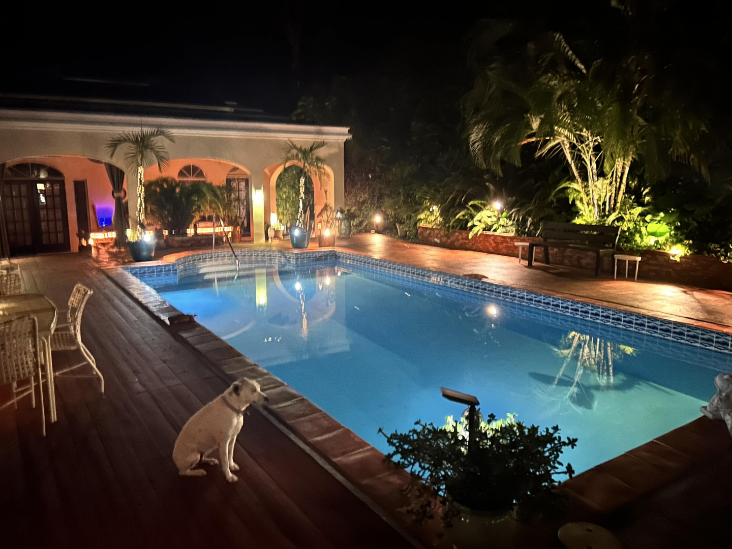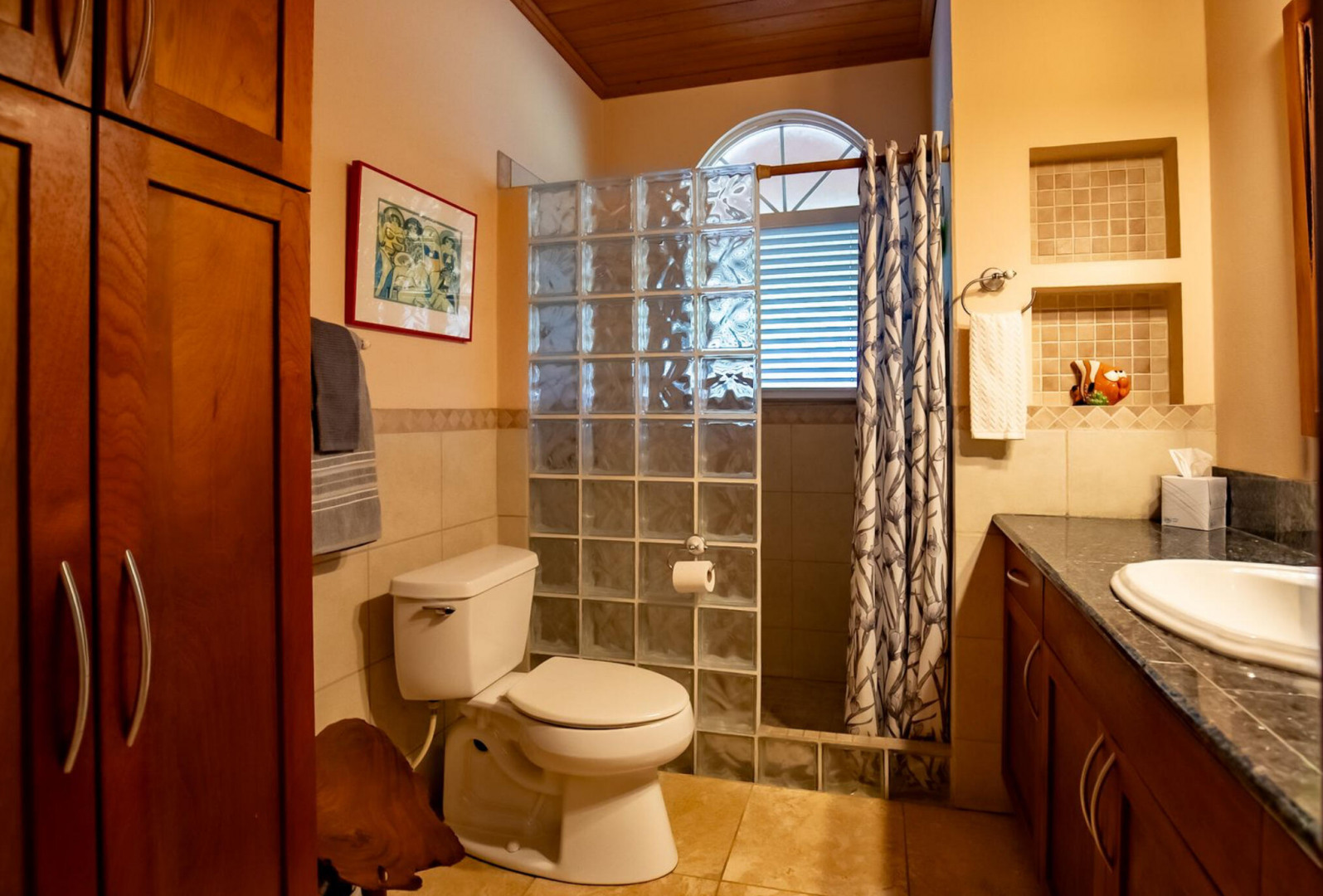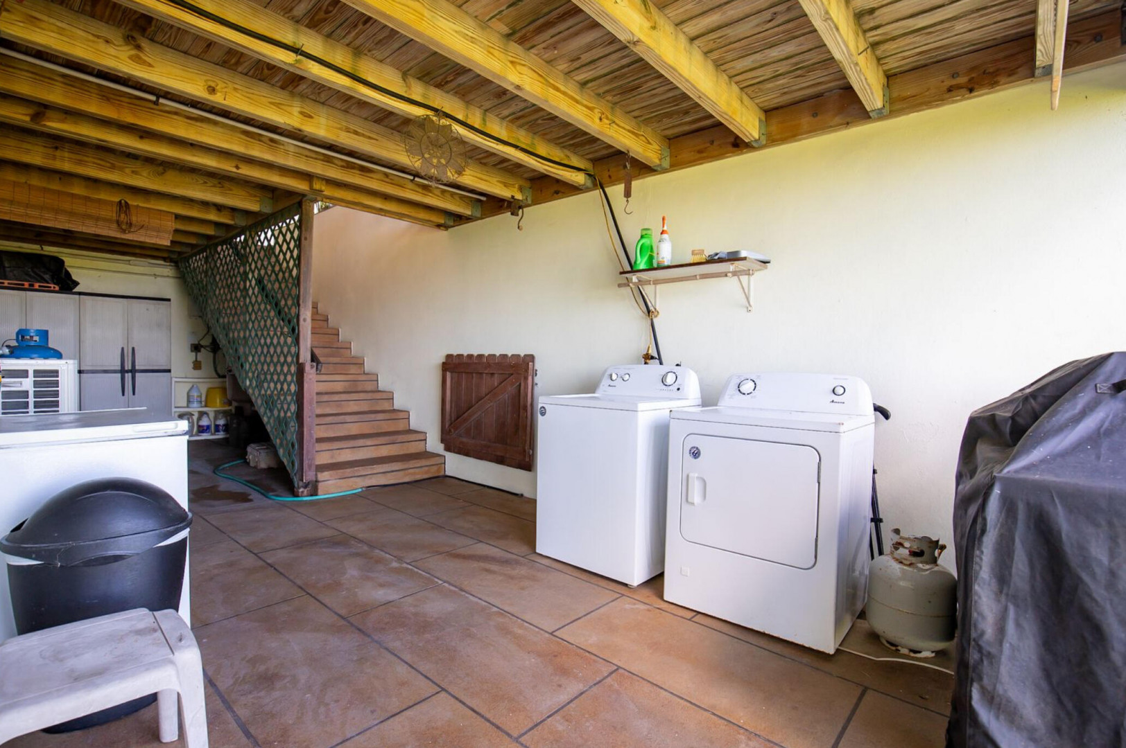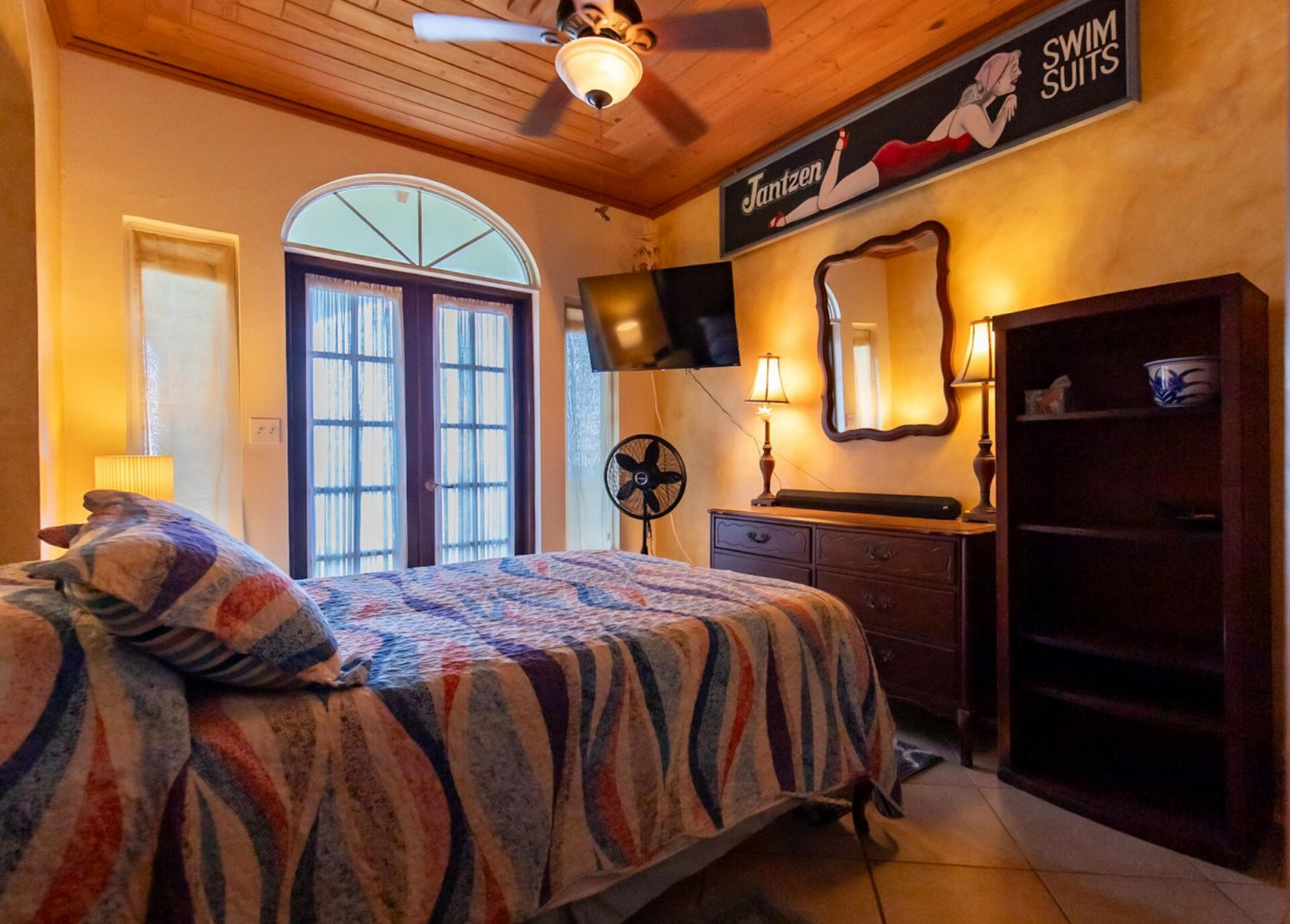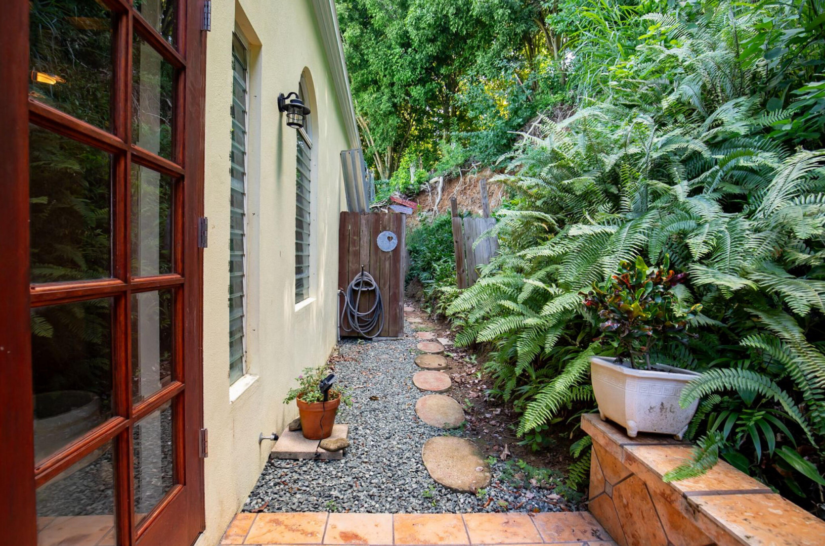 Experience island living at its finest in this poured-concrete 3-bedroom, 2-bathroom home featuring a spacious loft with striking cypress ceilings. The gourmet kitchen showcases Spanish Cedar custom cabinets by Mike Lustig, a mahogany bar, a new 36'' 5-burner gas range with convection, and a new dishwasher. Beautiful mahogany balusters add warmth and craftsmanship throughout.The expansive 320 sq ft primary suite includes a walk-in closet, double vanity, double shower, skylight, custom tile work, and a luxurious 6-ft cast iron soaking tub. An outdoor shower adjacent to the main suite offers a secluded, spa-like experience.Enjoy seamless indoor-outdoor living with a wraparound deck and an observation deck overlooking the North Shore, offering panoramic views and cooling breezes. The 15x30 tiled saltwater pool features an auto chlorine generator, variable-speed pump, and a new Maytronics robot vacuum, surrounded by a stained concrete deck and an outdoor bar with sink and mini fridge, creating a private resort atmosphere.