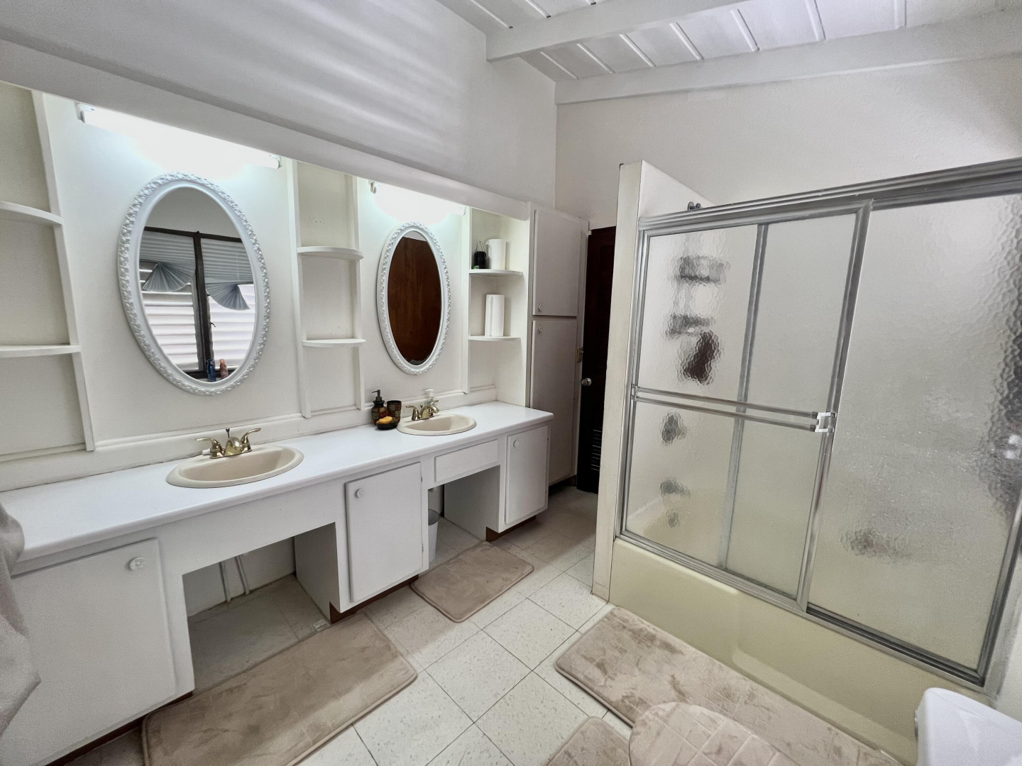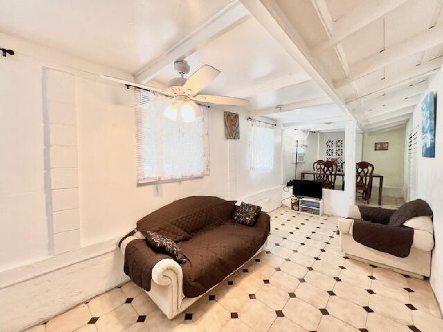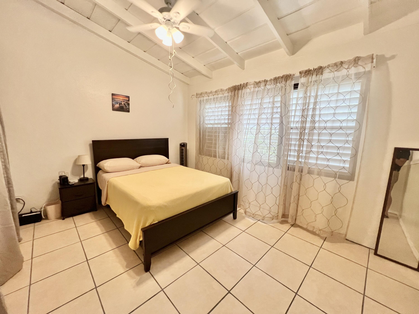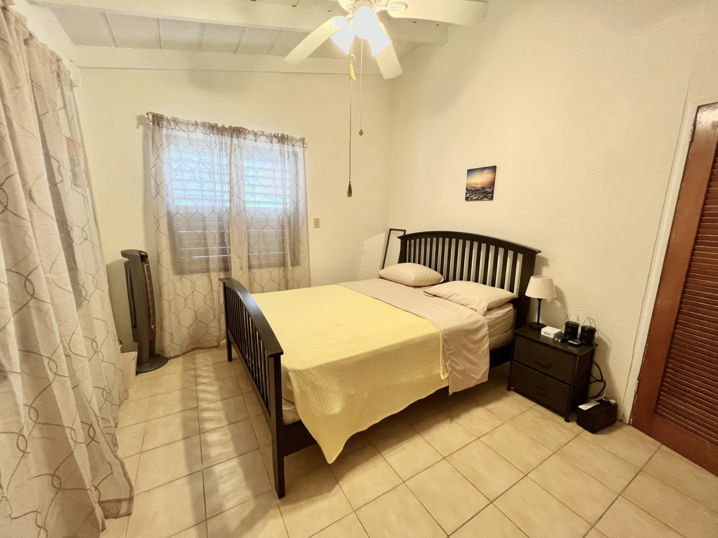 A centrally located 3 bedroom, 2 full baths, 2 sitting rooms home in Sion Hill perched upon the hill with south shore views and fruit trees on ground. Fully furnished home with window A/C units in the living rooms and bedrooms, ceiling fans in bedrooms, living room, and kitchen. Tenants have access to Washer and Dryer. Off road parking with spacious driveway. Screened in front patio. Battery backup for electronics. Close to shopping, schools, beaches, restaurants and hospital. Large Yard with fruit trees. Recent updates with screened in front porch. Tenant responsible for all utilities except for Wi-Fi which is included. Landlord will provide monthly landscaping and exterior pest control.