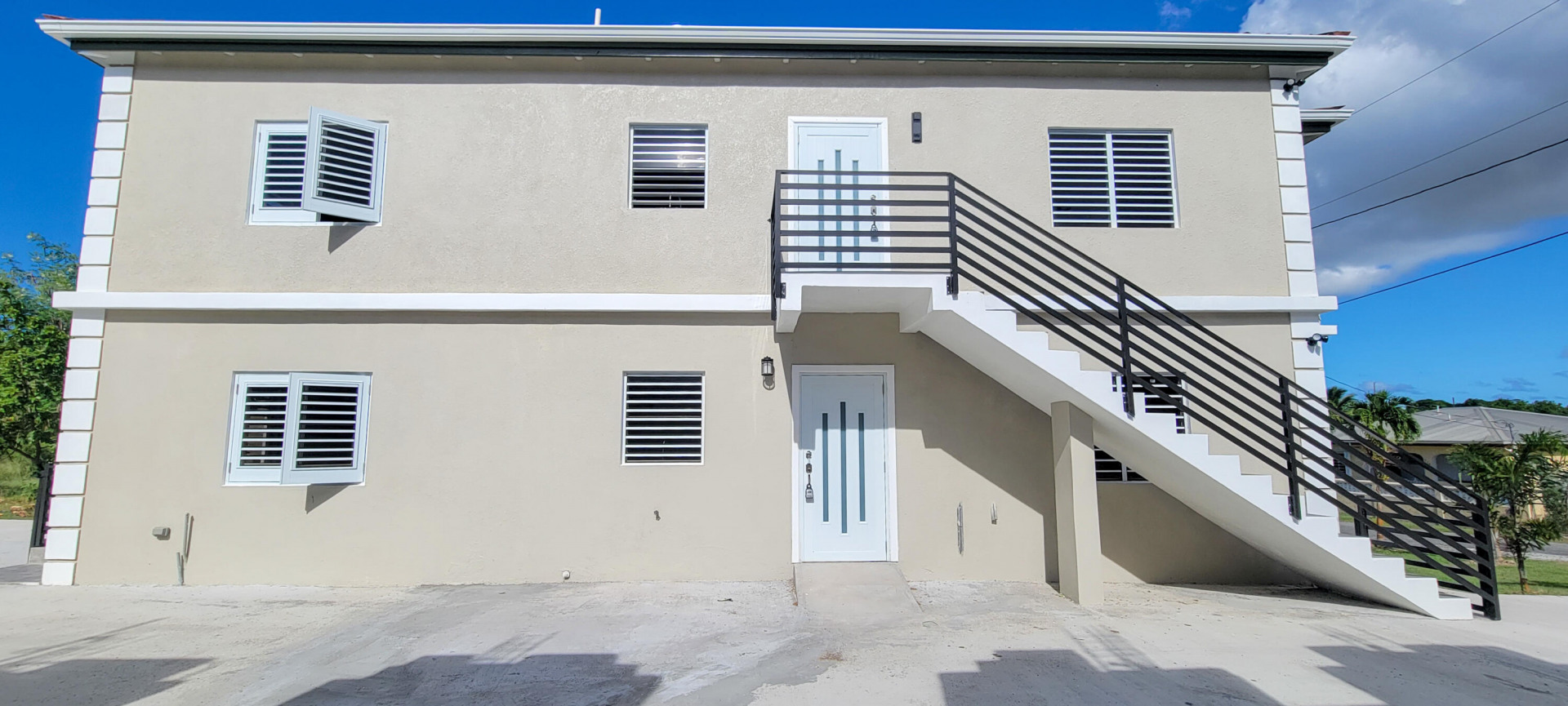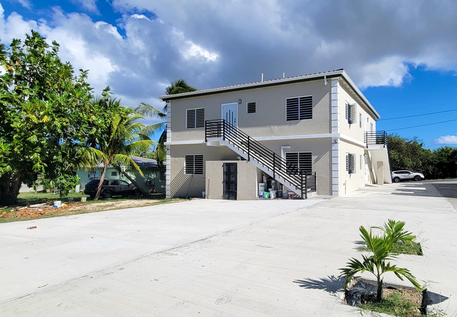 This BRAND NEW - never been lived in airy upstairs unit located in Barren Spot -3 bedrooms and 2 bathrooms. You will love the beautiful arches, decorative walls, cooling breezes. The kitchen is equipped with stainless steel appliances including a dishwasher. A tiled backsplash and granite counter tops with an island leads to the open concept living/dining area. Ceiling fans throughout the house (total of 6) and split AC's in bedrooms. There is plenty of storage and a laundry room. Property management done by builder/owner. Other details include curtain rods on each window; tile moulding on the floors, beautiful lighting, built in toiletry storage in showers; electric outlets in kitchen island. Concrete driveway and parking slab at the rear of the building.