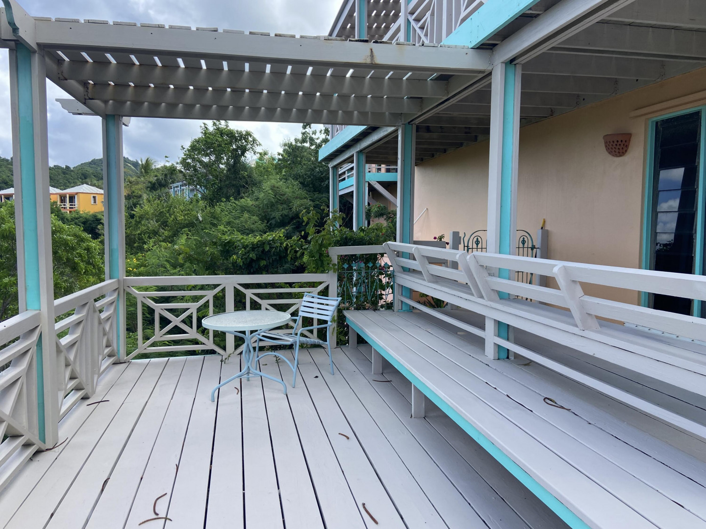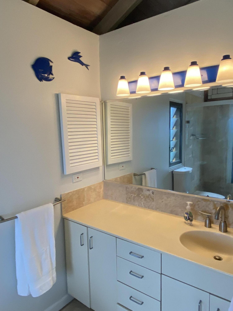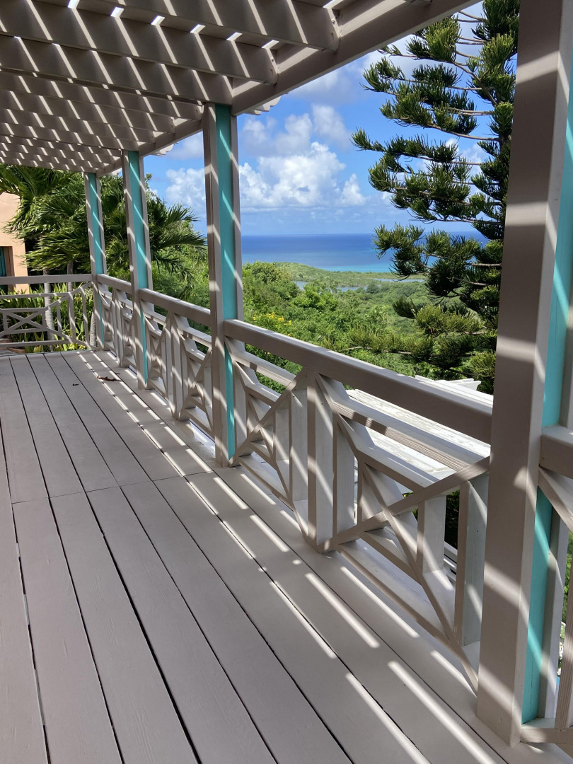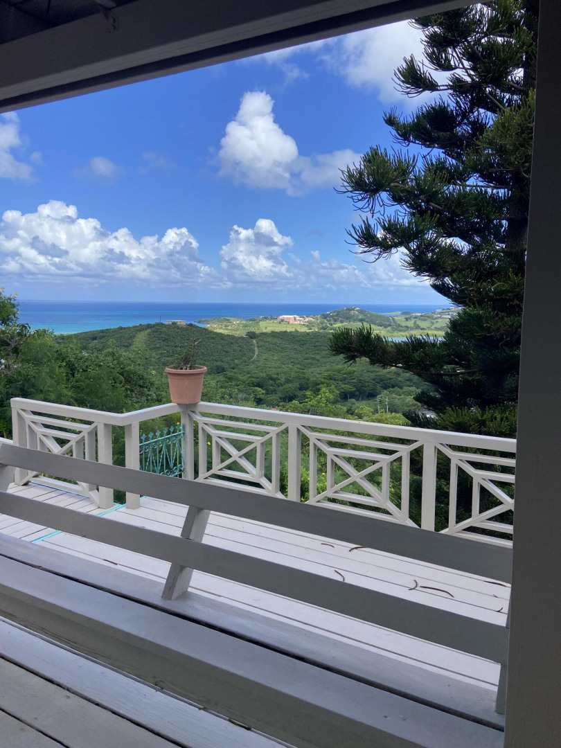 Come see this Caribbean Beauty. The pod-style home features a three bedroom, three bathroom main level and a studio apartment on the lower level. There is AC in all of the bedrooms and Caribbean breezes keep you cool in the living room/kitchen pod. Enjoy your morning coffee on one of the many covered galleries while taking in the beautiful hillside and ocean views. Take a dip in the refreshing pool. Solar power helps keep your Wapa bills low.