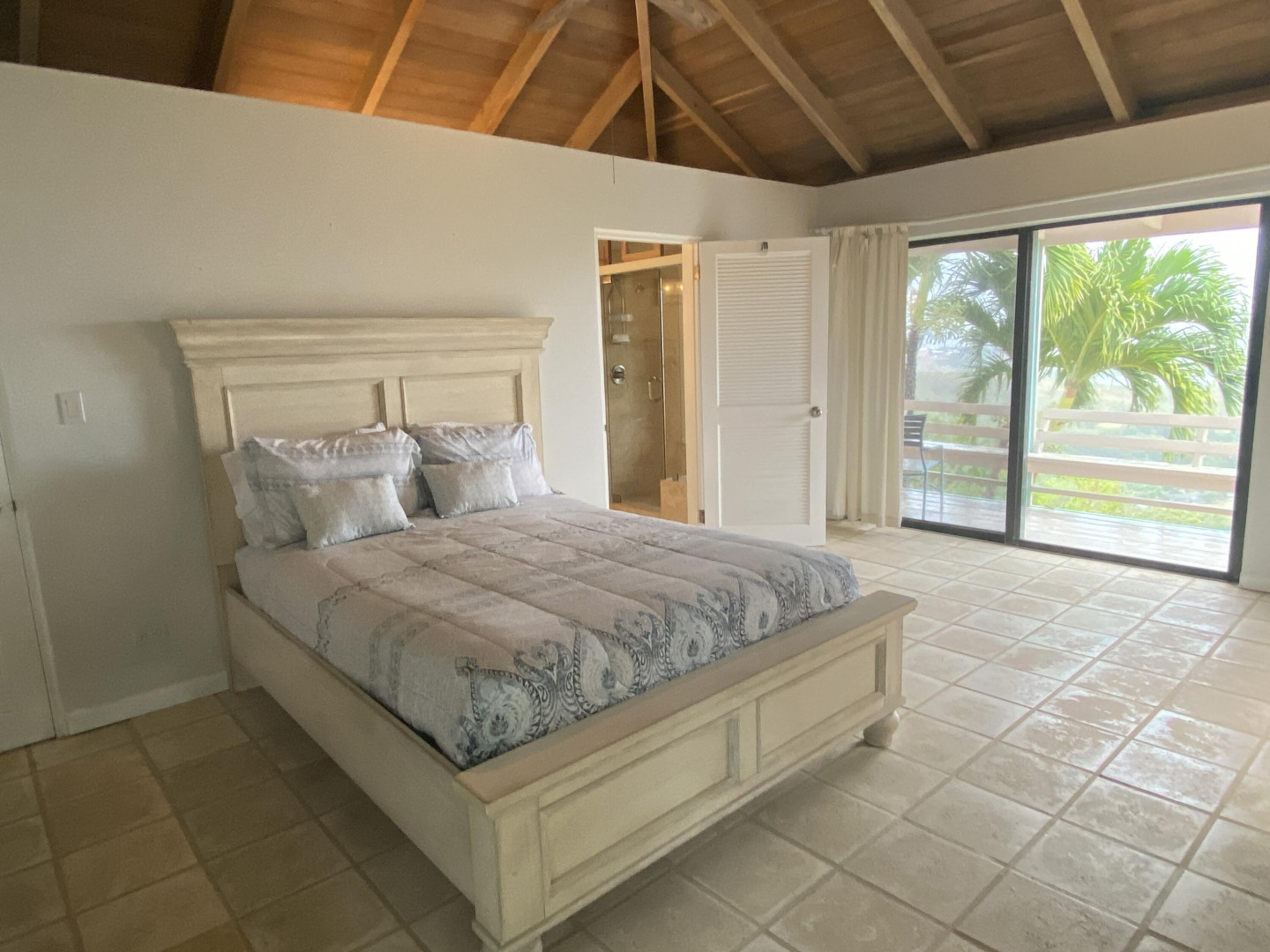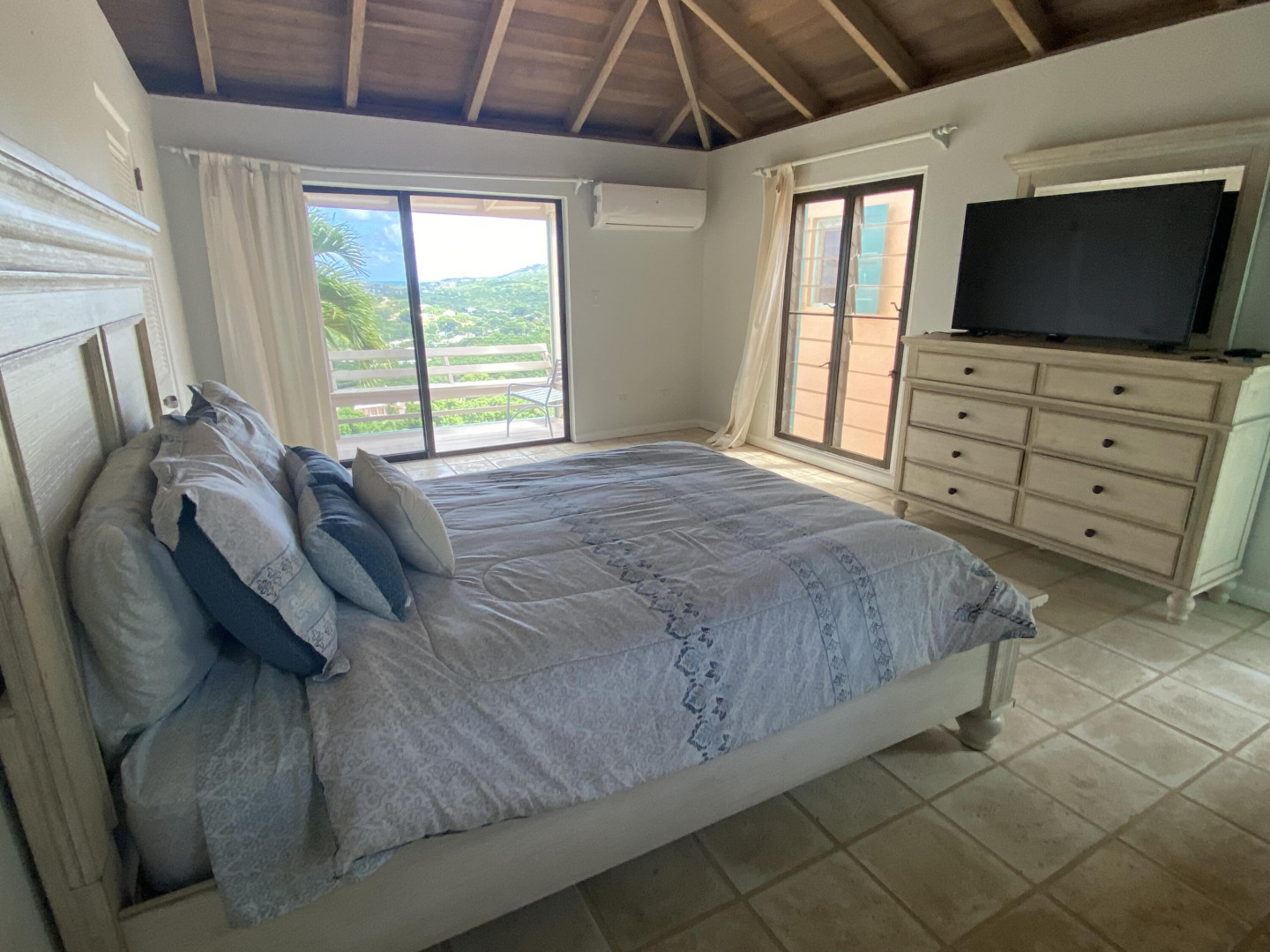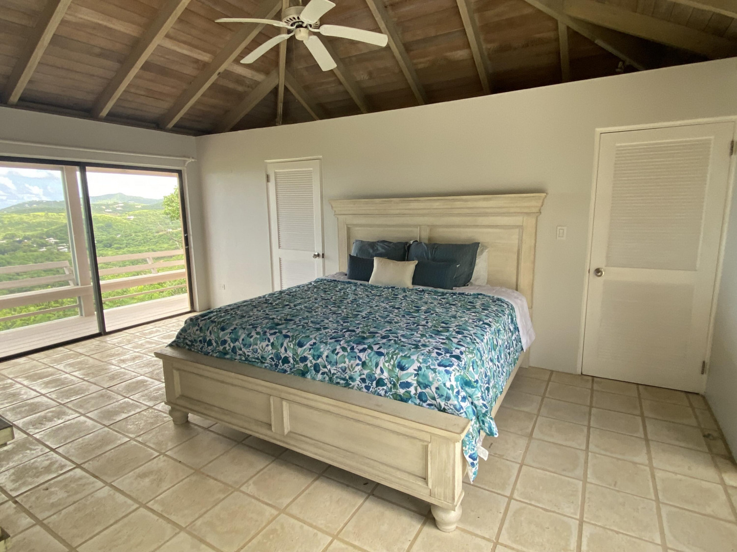 Come see this Caribbean Beauty. The pod-style home features a three bedroom, three bathroom main level and a studio apartment on the lower level. There is AC in all of the bedrooms and Caribbean breezes keep you cool in the living room/kitchen pod. Enjoy your morning coffee on one of the many covered galleries while taking in the beautiful hillside and ocean views. Take a dip in the refreshing pool. Solar power helps keep your Wapa bills low.