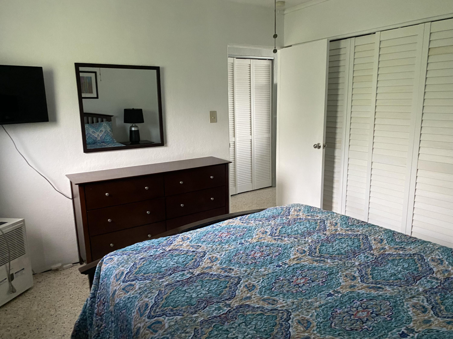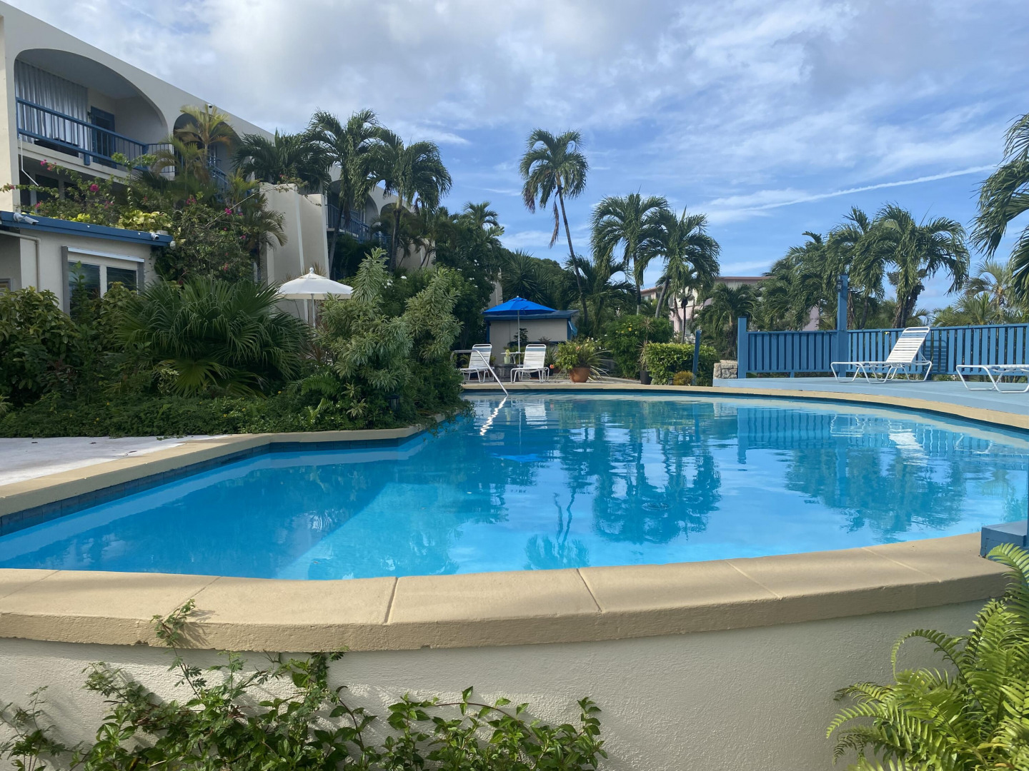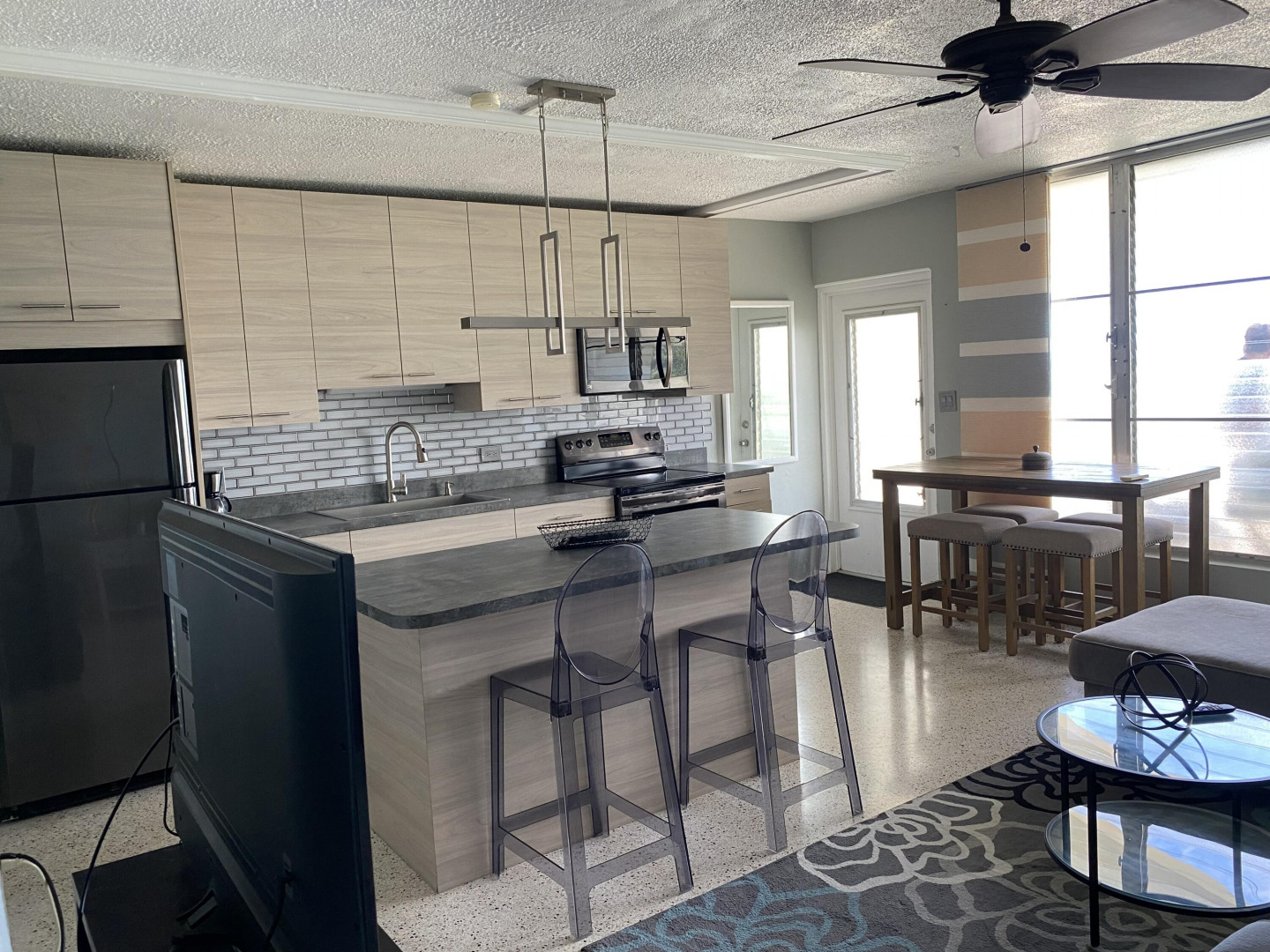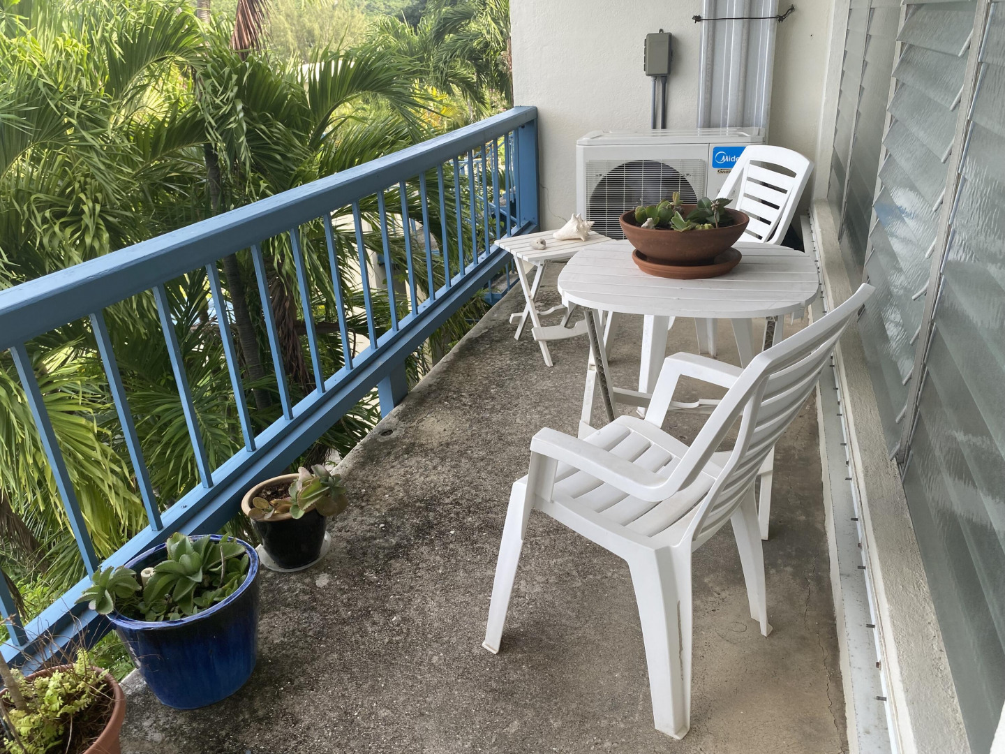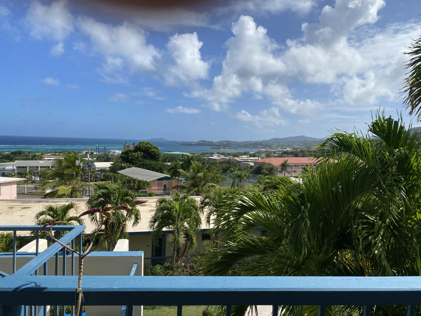 Top floor 1 bed room condo with 180 degree views of Christiansted, Hotel on the Cay and Buck Island. Updated kitchen and nicely furnished. Split A/C in Living room and window unit in bed room.Security Gate and prking on condo property and close to shopping.