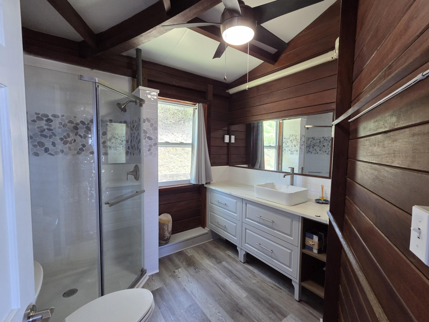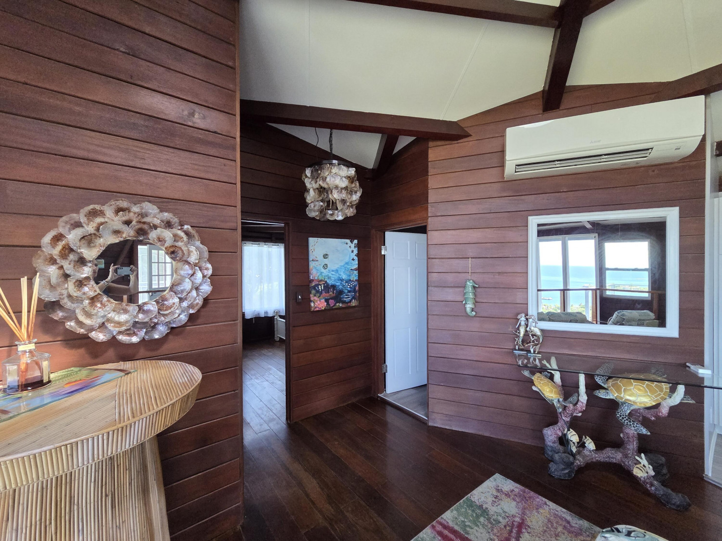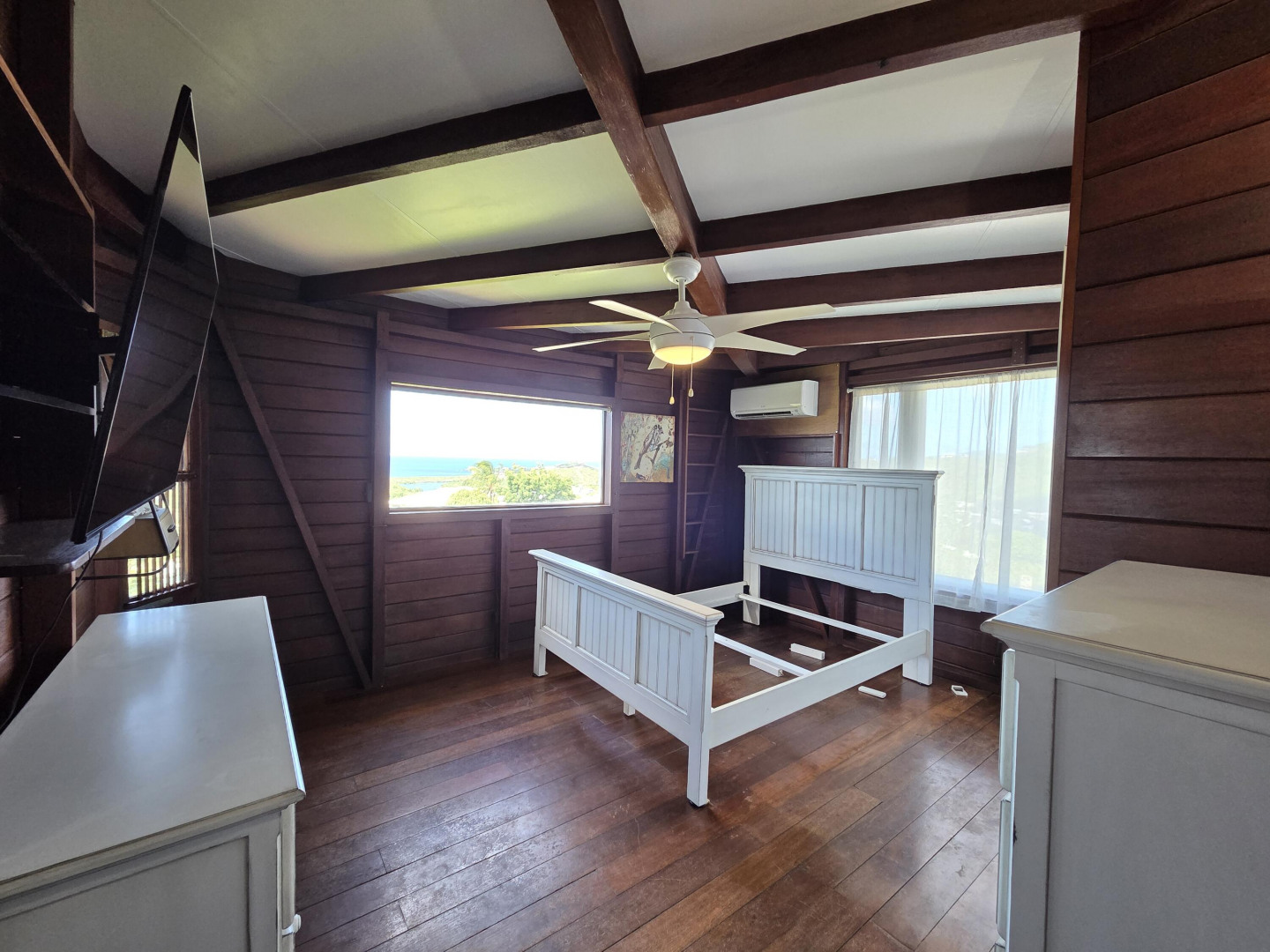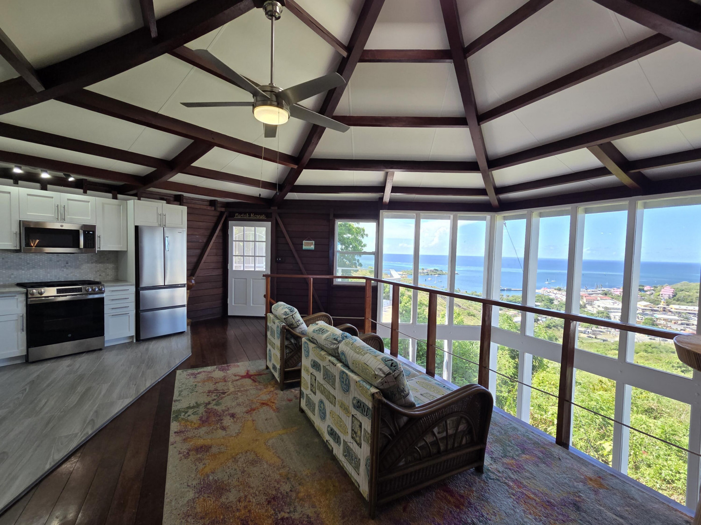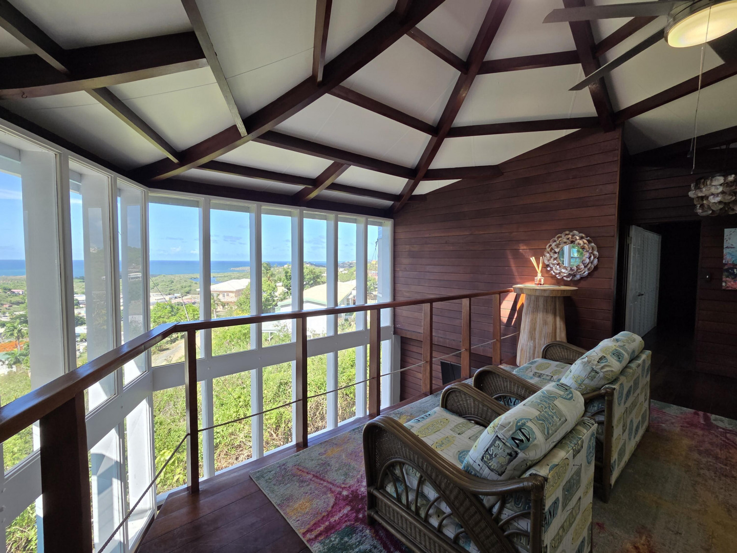 A stunning two-story home with breathtaking floor-to-ceiling windows that offer panoramic views of Christiansted Harbor. This partially furnished 3-bedroom, 2-bath residence has been beautifully renovated, featuring a modern kitchen and updated bathrooms, along with rich mahogany walls that add warmth and character throughout. Enjoy the comfort of air conditioning in every room, and the convenience of an indoor laundry room. The home includes two private driveways, providing ample parking, and is ideally located just minutes from downtown Christiansted. With its incredible views, tasteful updates, and prime location, this home offers a unique opportunity to enjoy the best of island living!