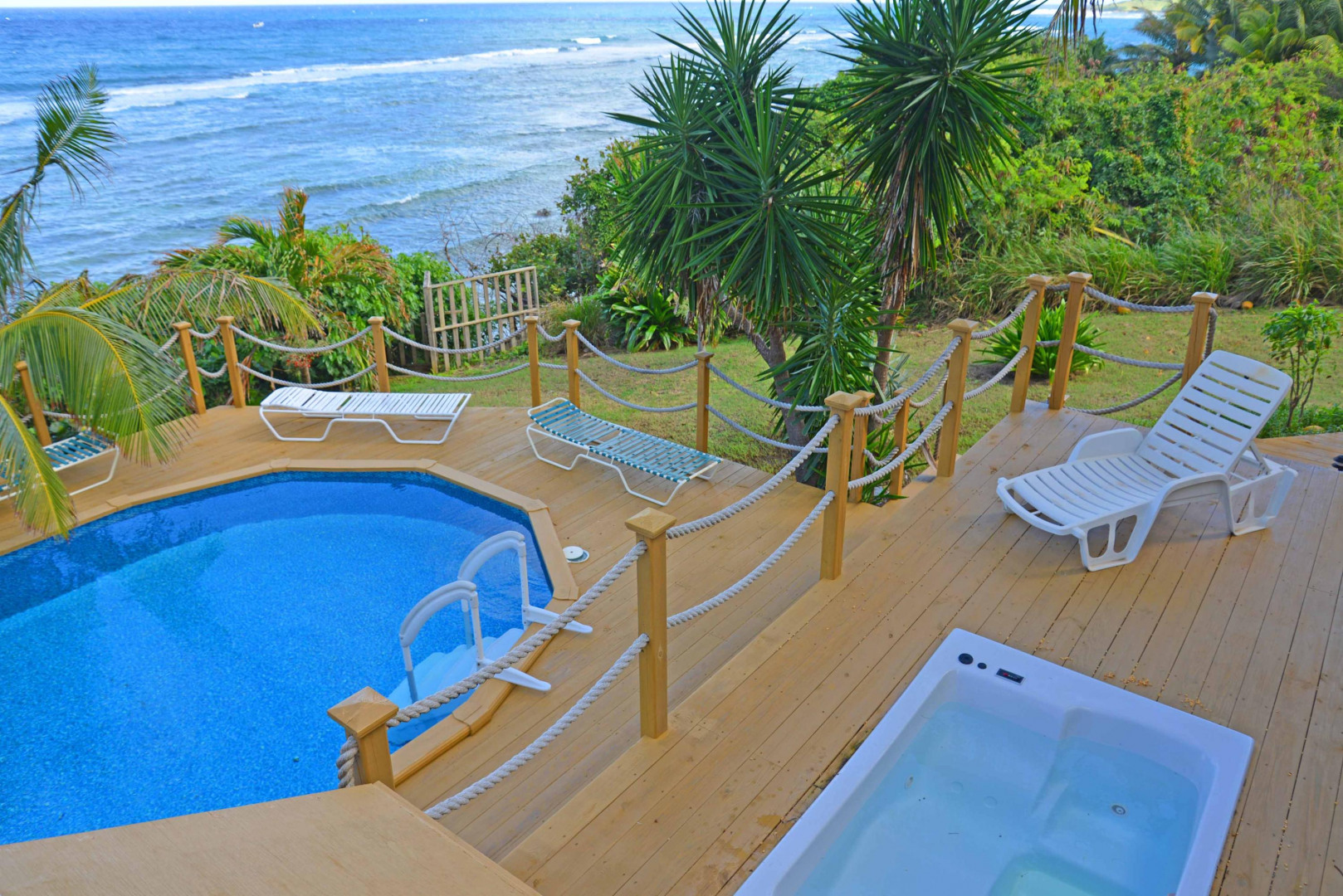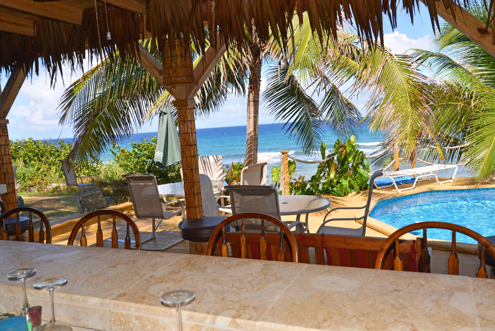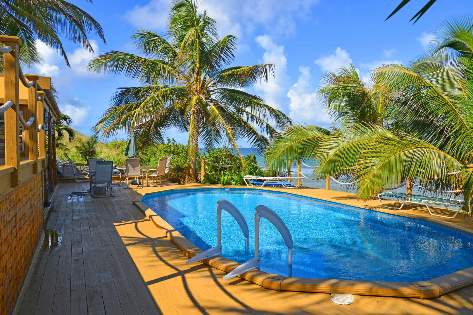 Waterfront villa with huge galleries and pool. Currently run as a very successful guest house. Live in owners' quarters and earn income from the three other suites (studio, 1 bedroom, and 2 bedroom). Entertain your guests at the fun and functional Tiki Bar near the pool. Hot tub too! Endless possibilities here! www.villamargarita.com. This highly rated (94 “Excellent” ratings on Trip Advisor) and successful guest home can be yours for well under a million dollars. Where on earth can you purchase a successful waterfront guesthouse at this price? Nowhere!!! Located near Salt River marina and Columbus Cove, this historic area is centrally located and within walking distance to Pirate’s Tavern, a fun restaurant and bar, and close to famed Cane Bay, which is home to world-class diving and several great restaurants and bars. The villa consists of a studio suite, one bedroom suite, two bedroom suite, and owners’ quarters. All rooms have a fantastic sea view. Guests all have a private balcony from which to enjoy the scenery and breezea, a hot tub, Tiki bar, and pool, in addition to access to the beach and ocean right in front of the villa. Bookings here are consistent, and if owners operate the business themselves, they could enjoy a comfortable living. The possibilities are endless; a bed & breakfast, continuing to run it like it is currently being run; convert it to a SINGLE FAMILY HOME; create a dive/hotel operation. The owners are ready for their next adventure, are you ready for yours?