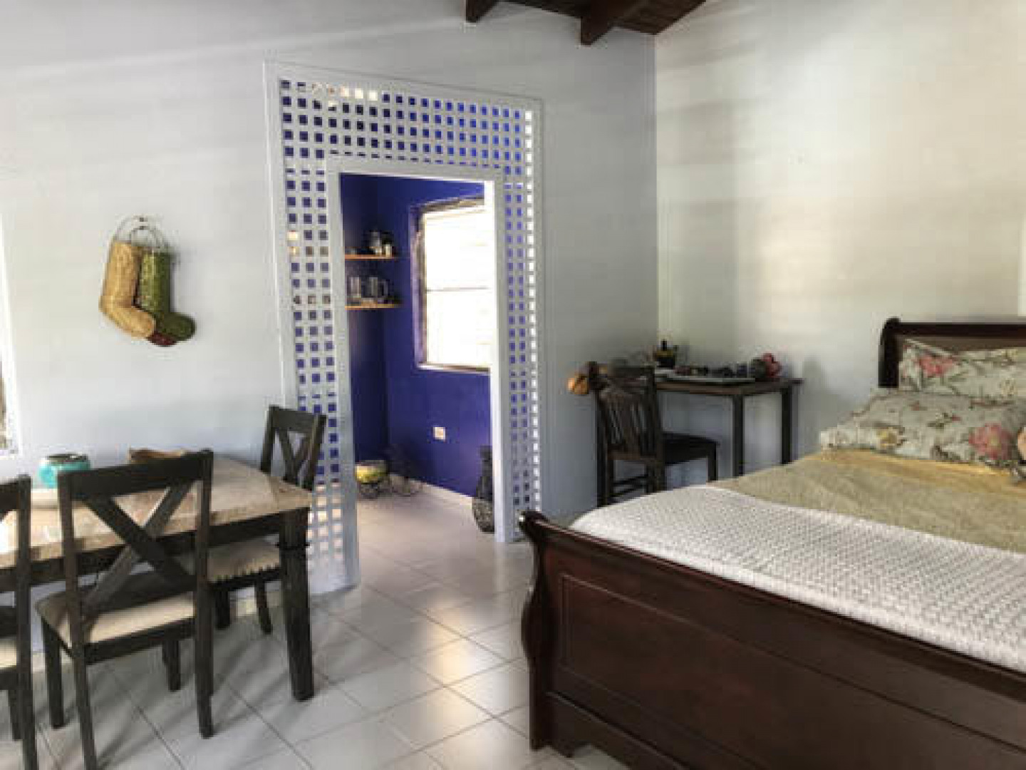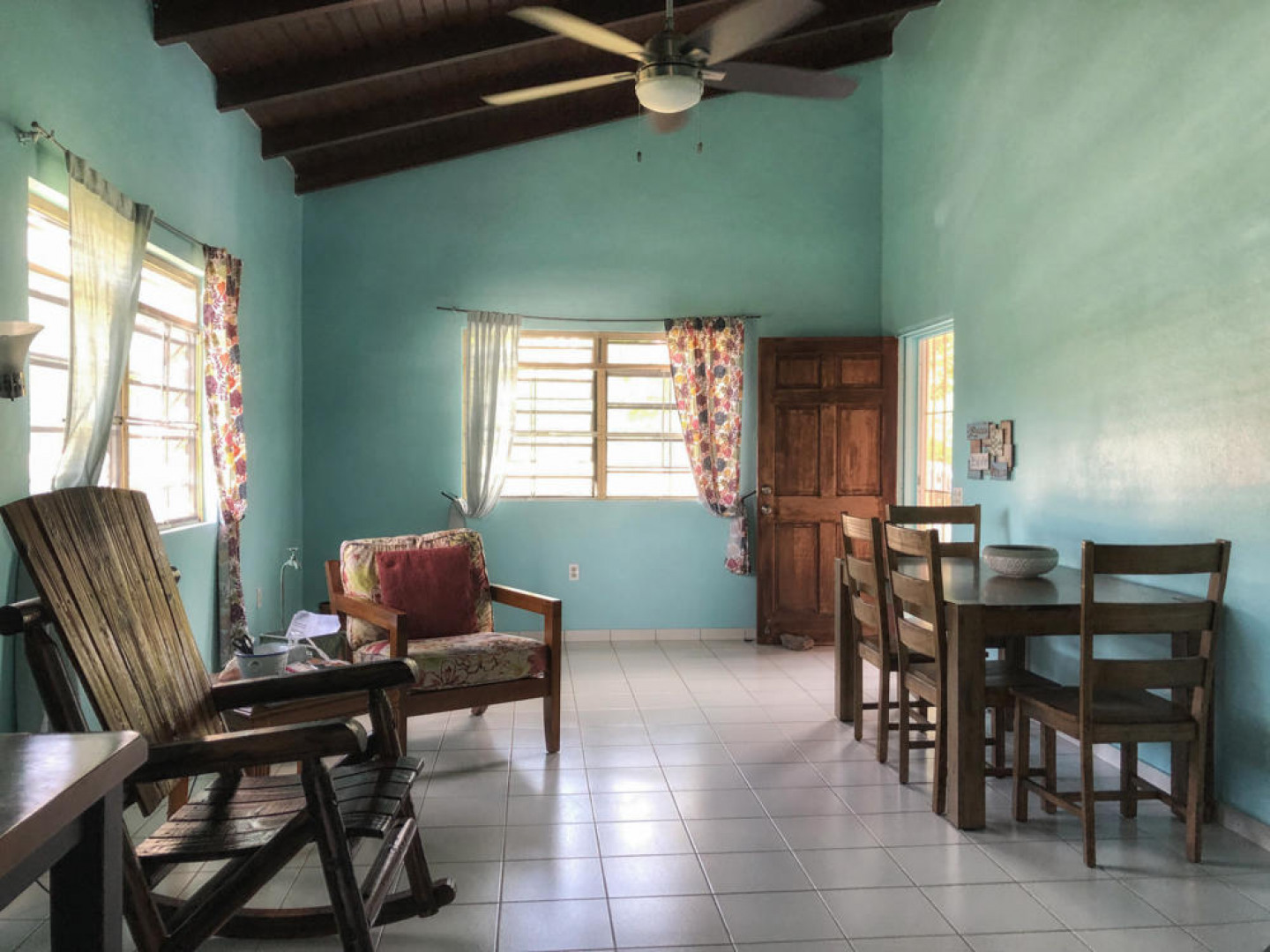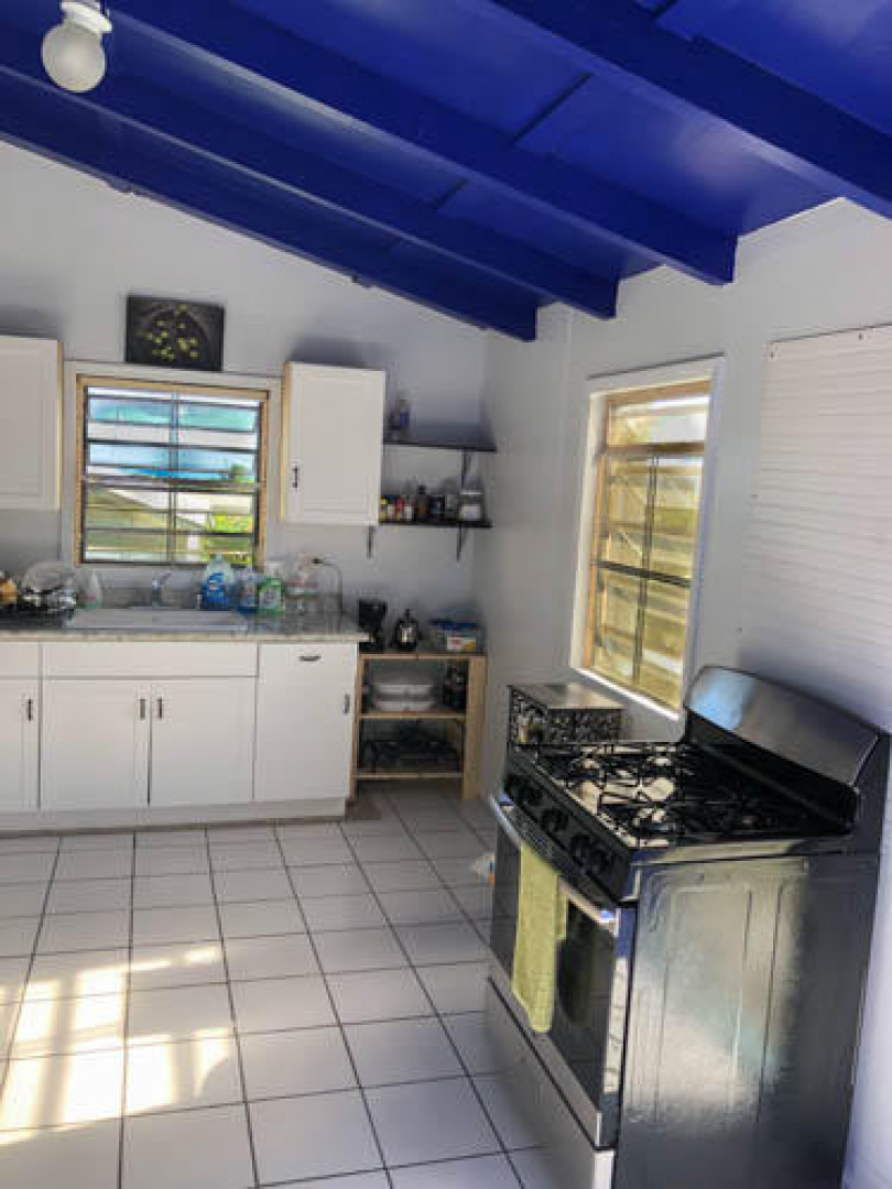 Solidly built home which withstood two category 5 hurricanes. Move in condition after new owners put in their heart and soul fixing it up. The master bedroom, with its own private bathroom, has a large closet with extra storage above plus an added room which could be a reading nook or office. A unique feature is a spiral staircase down to a large room which would be perfect for a family room/workshop. The two additional bedrooms share the second bathroom. The detached two story unit features a laundry room on the lower level and the upstairs could be an additional bedroom or studio with its own private bathroom. The property features a lovely gallery surrounded by a yard full of plants, shrubs and fruit trees. An added bonus is a refurbished well to provide water for the landscaping.