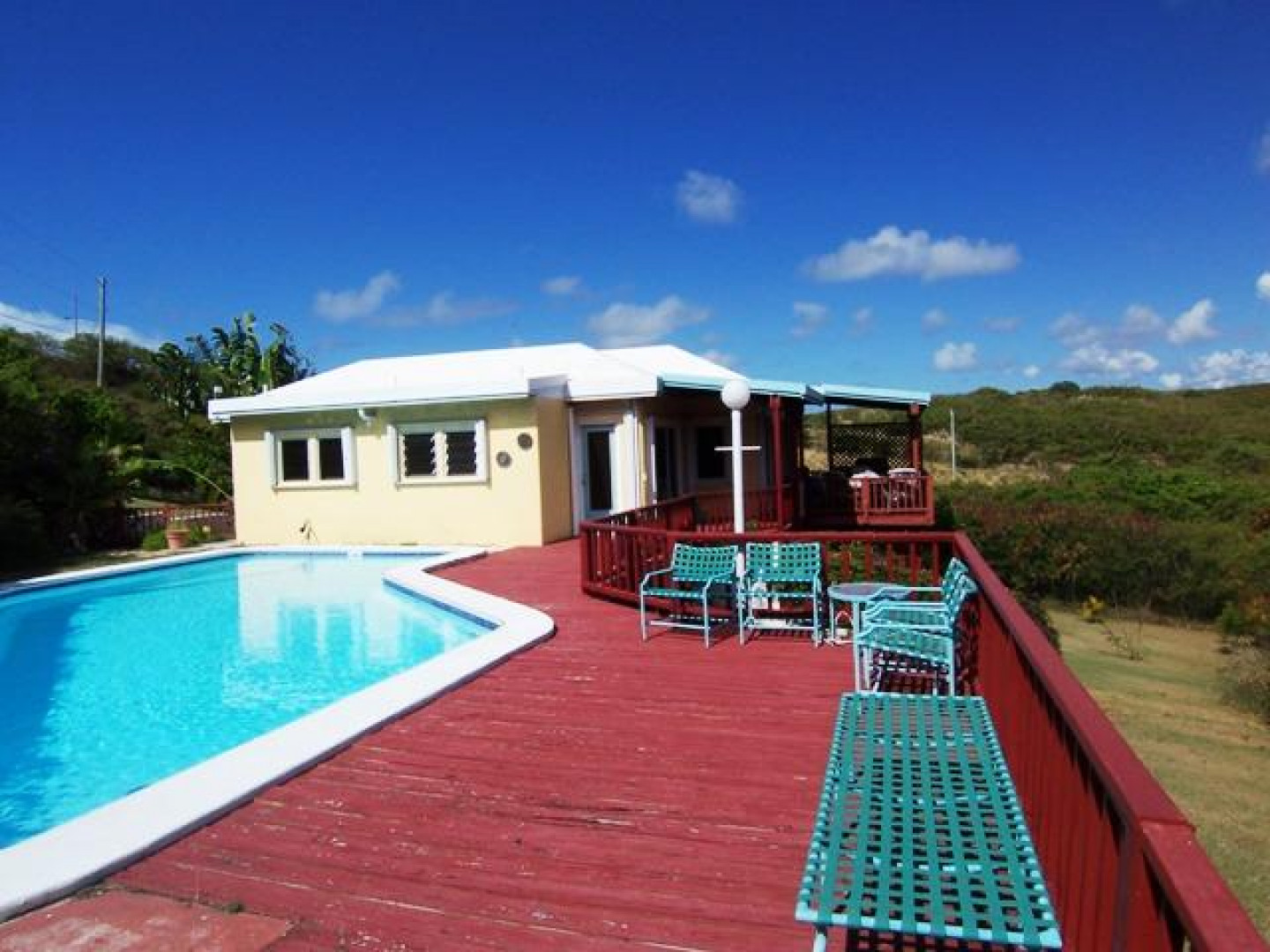 Excellent location, one of St. Croix's quiet beach communities, is the setting for this 3 bedroom 3 bath home with a study, a covered deck with a pretty Caribbean Sea views and Pull Point. The large pool is perfect for relaxation & entertaining. The 1-bedroom apartment has it's own covered deck and sea view. If you love the beach it's down the street.