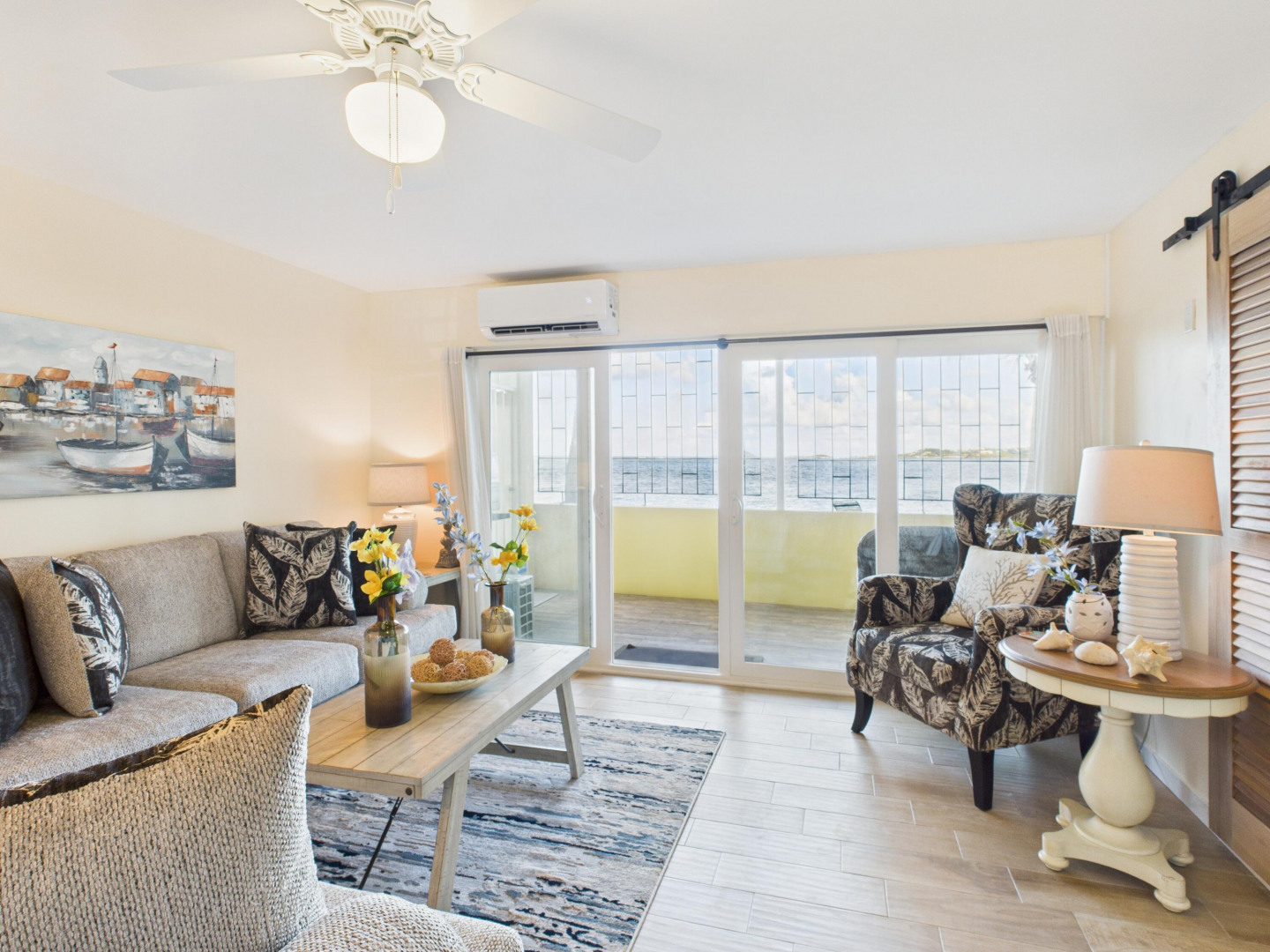 If you've been waiting for the perfect beach front escape, this is it. This beautiful 2-bedroom, 2-bath, ground-floor condo offers true walk-out beach access, just steps from the sand and sea. From your patio, watch the seaplanes glide in and out over the turquoise waters of Christiansted Harbor. Enjoy your morning coffee with the sunrise or unwind in the evening with a glass of wine as the waves roll in.This turnkey property is fully equipped, tastefully decorated, and ready for your arrival, whether as a primary residence, a vacation home, or a successful income-producing rental.Located within a gated community, you'll love being central to Christiansted, mid-island conveniences, dining, shopping, and endless island adventures. Live the dream. Rent the dream. Make it yours.