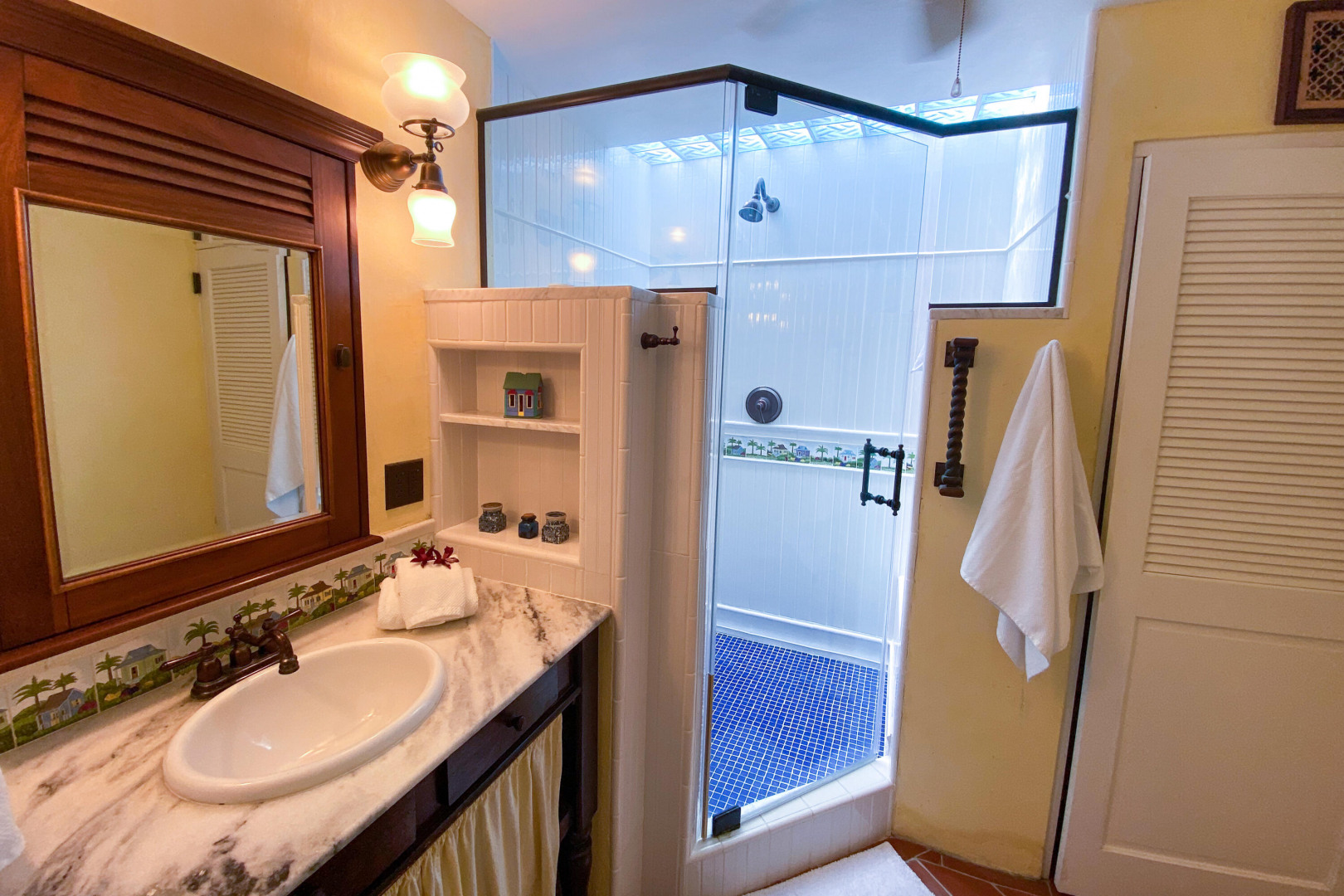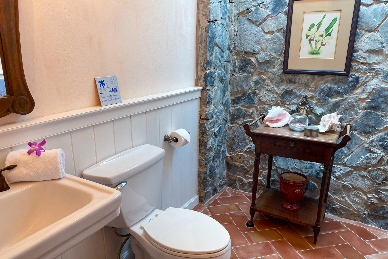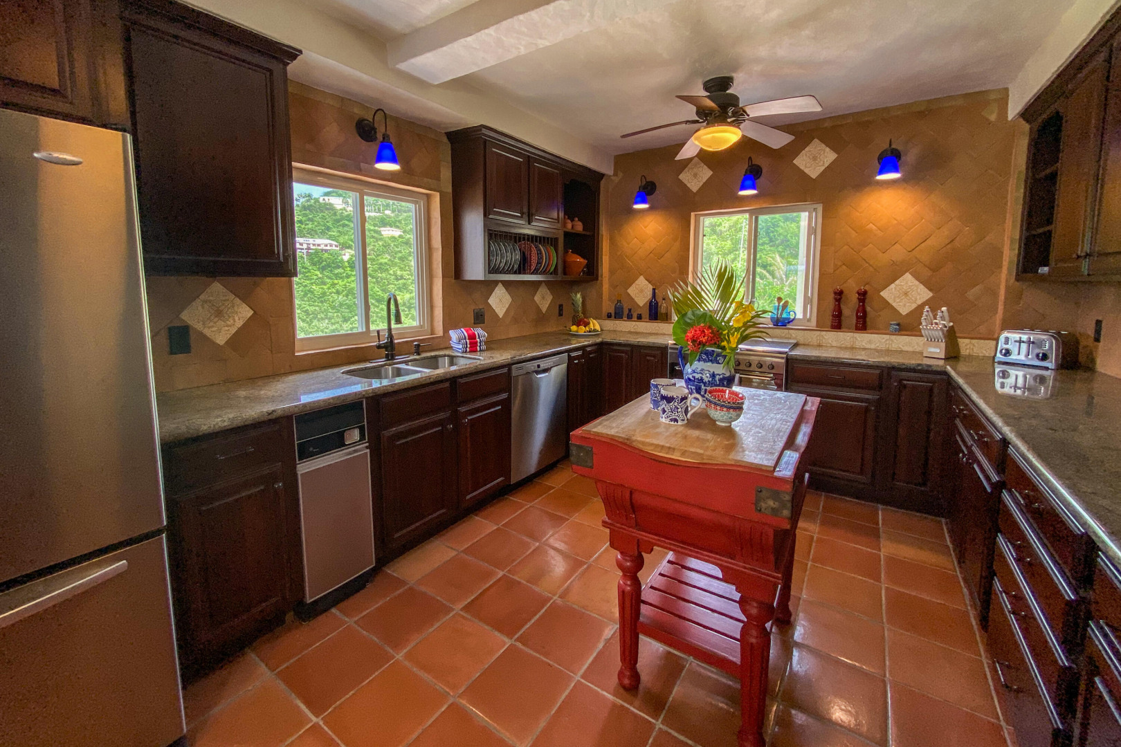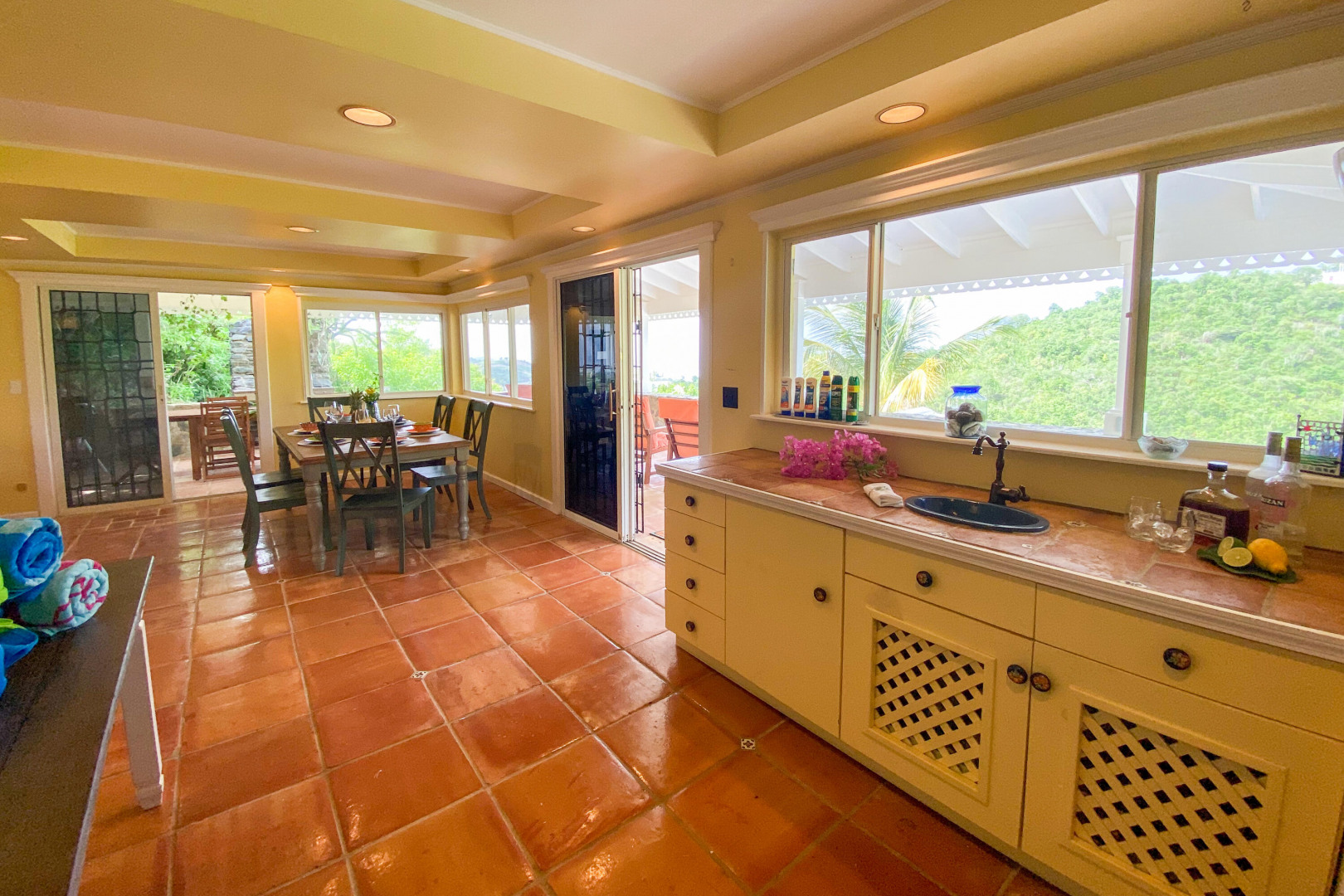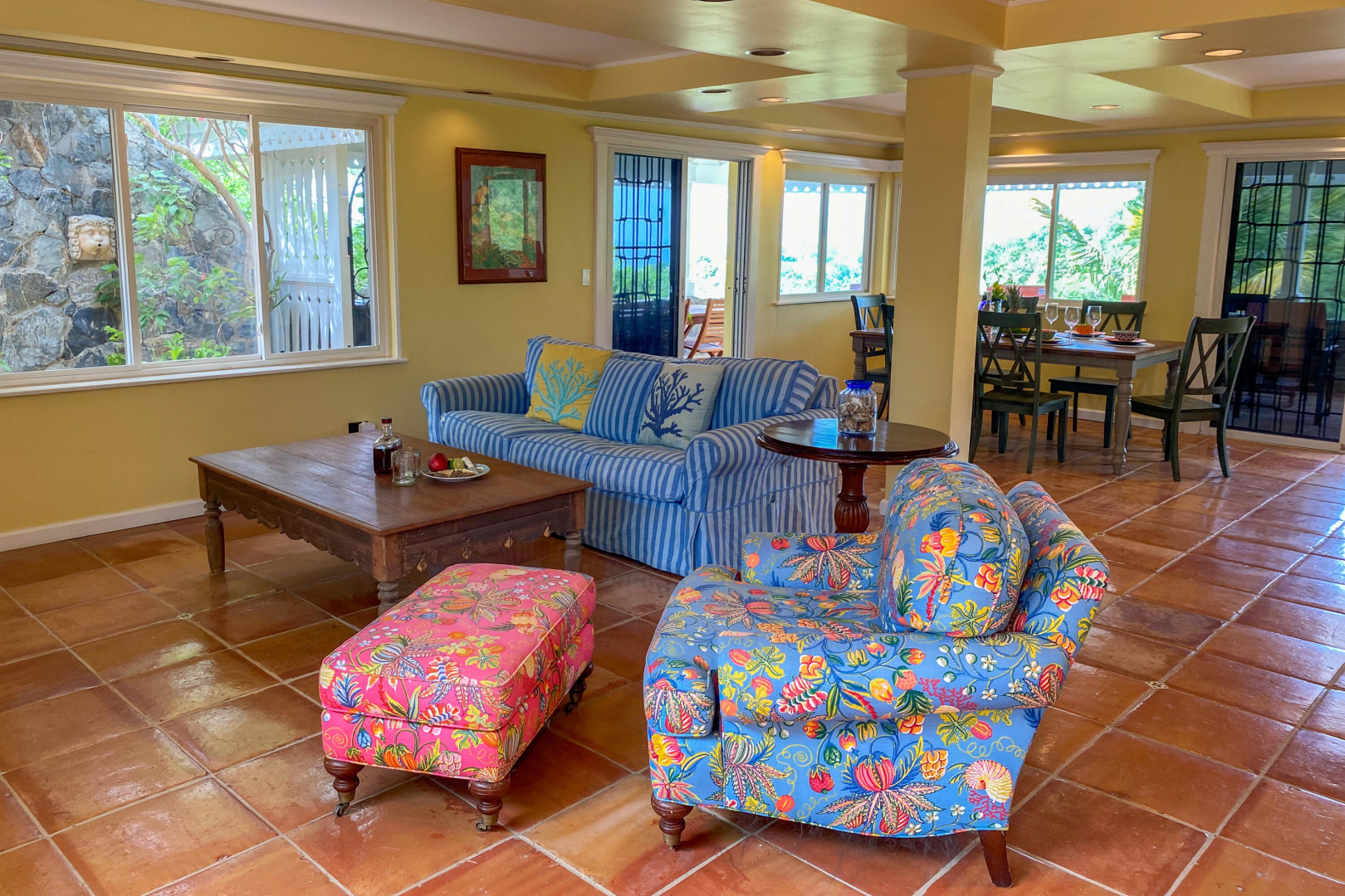 Charming 3 BD 3.5 BA Caribbean home just minutes from downtown Christiansted. Main level features bedroom upstairs with living area opening to a covered gallery and lush orchid garden. Second level features second bedroom and efficiency apartment just steps from pool and expansive deck. Northern sea views, paved driveway,and fruit trees. Included: lawn care, pool service, internet, AC throughout, and automatic switch generator.