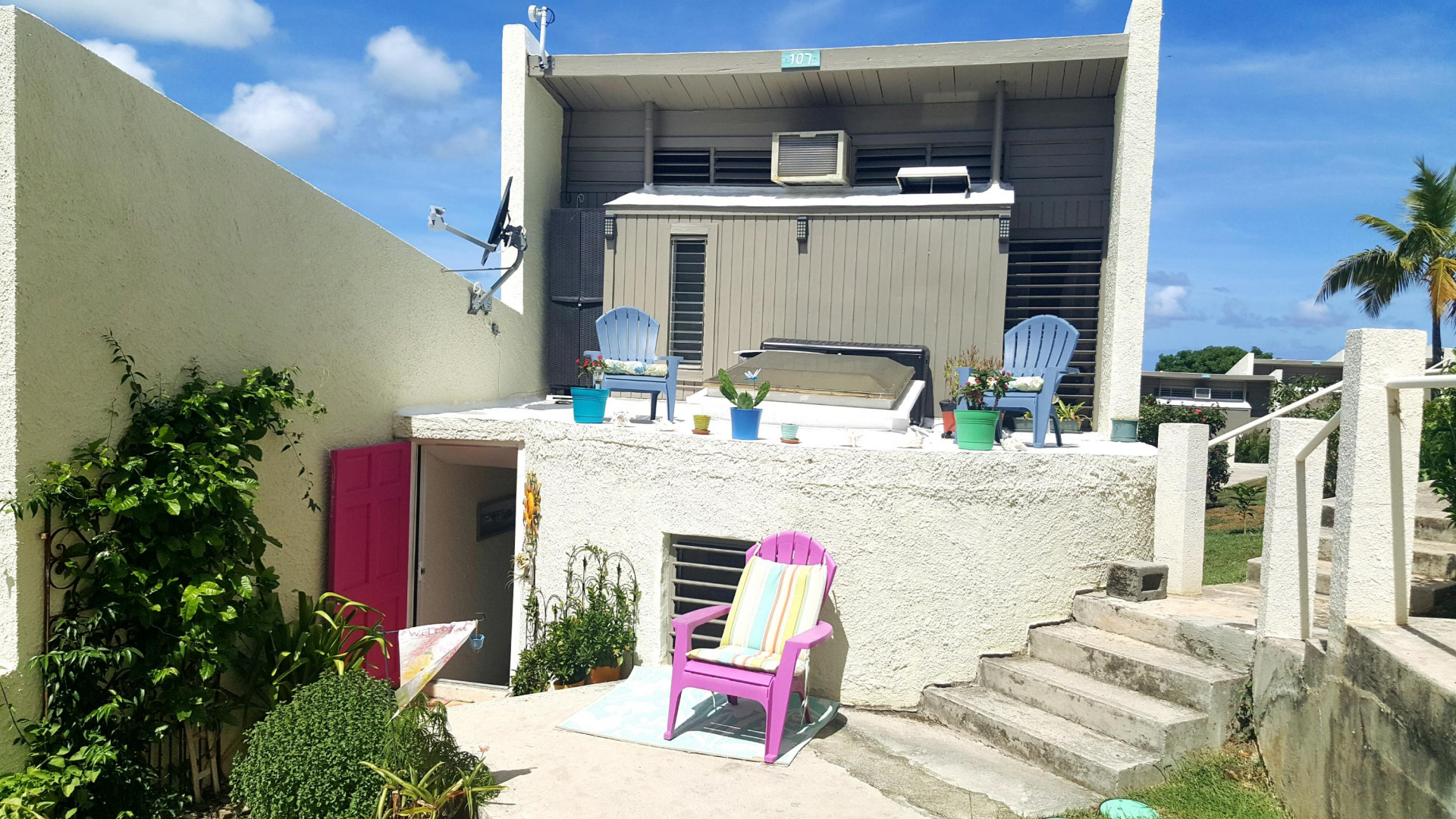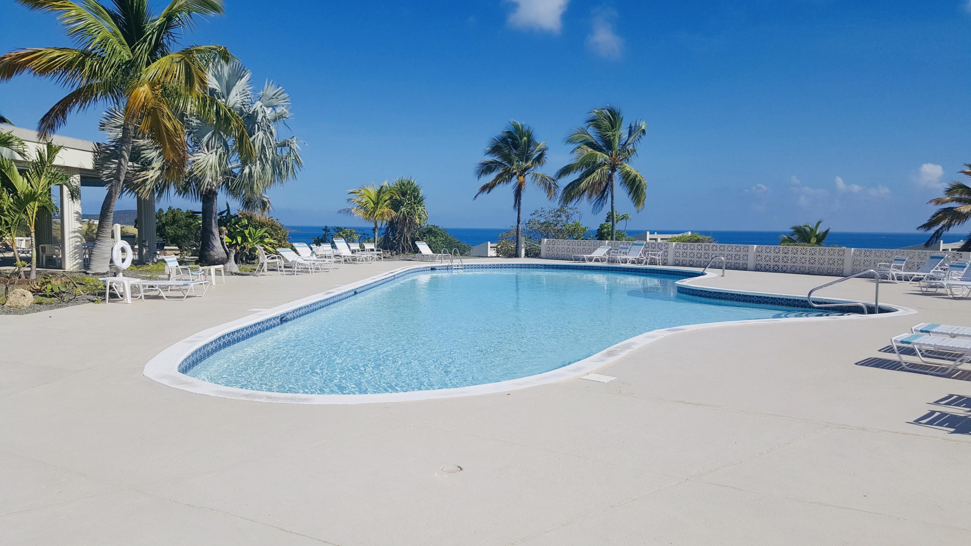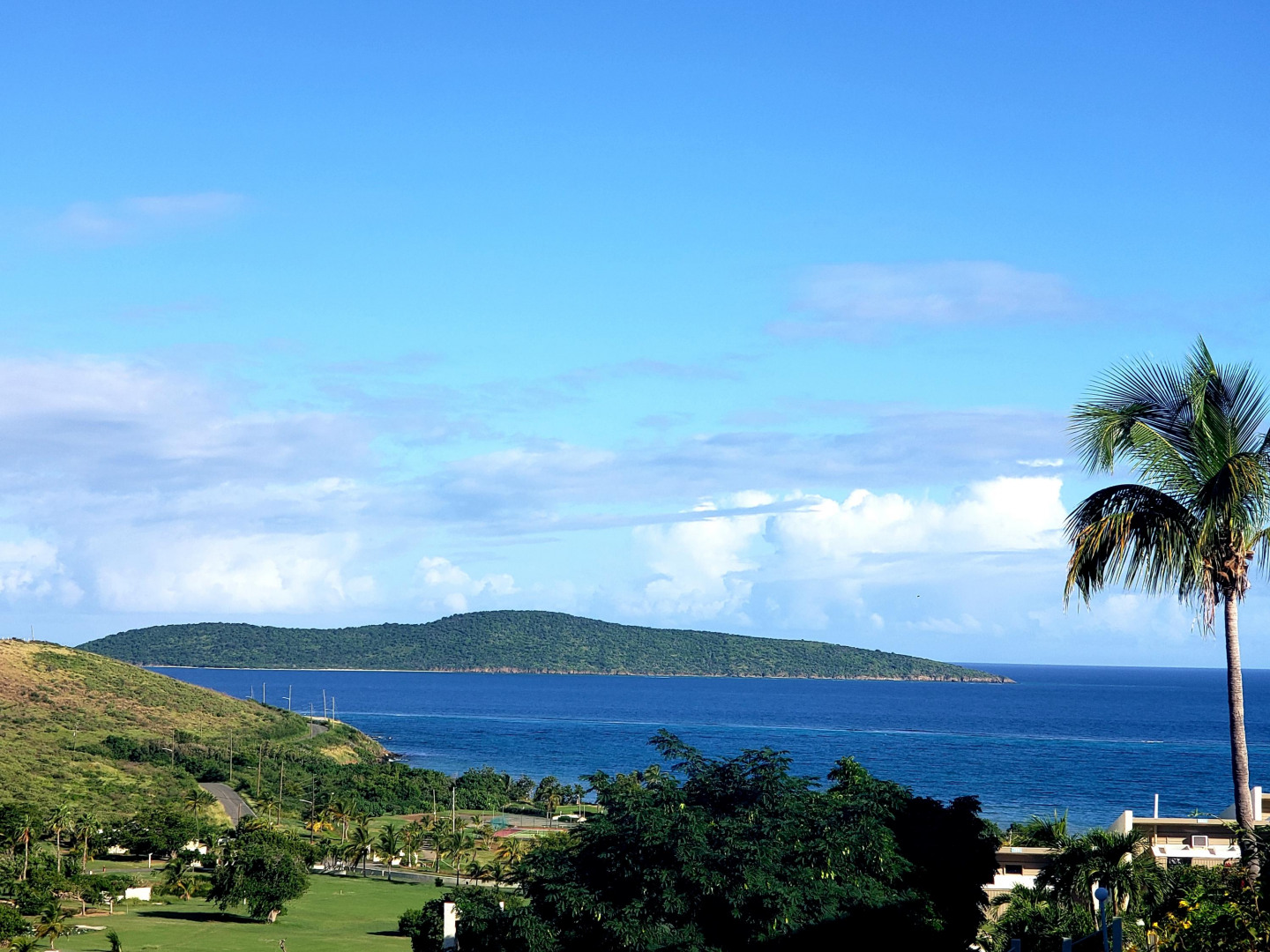 Paradise amongst the Golf Course and Palm Trees! This immaculately presented unit set amongst manicured grounds within a private and secure community, comes complete with 2 bedrooms and 1.5 bath, and retains the value of peaceful living while being conveniently close to the beach, restaurants and Casino. This loft style beauty is an open plan living space awash with natural light. Unit is completely furnished with tasteful, like new furnishings and decor, nice tile floors, granite countertops, stainless steel appliances, self closing kitchen cabinets, completely creating a style as timeless as the sparkling ocean view. Enjoy calming and captivating sea and Buck Island views from your spacious patio with your very own gas grill. Generator is hard-wired. Very good vacation rental history.