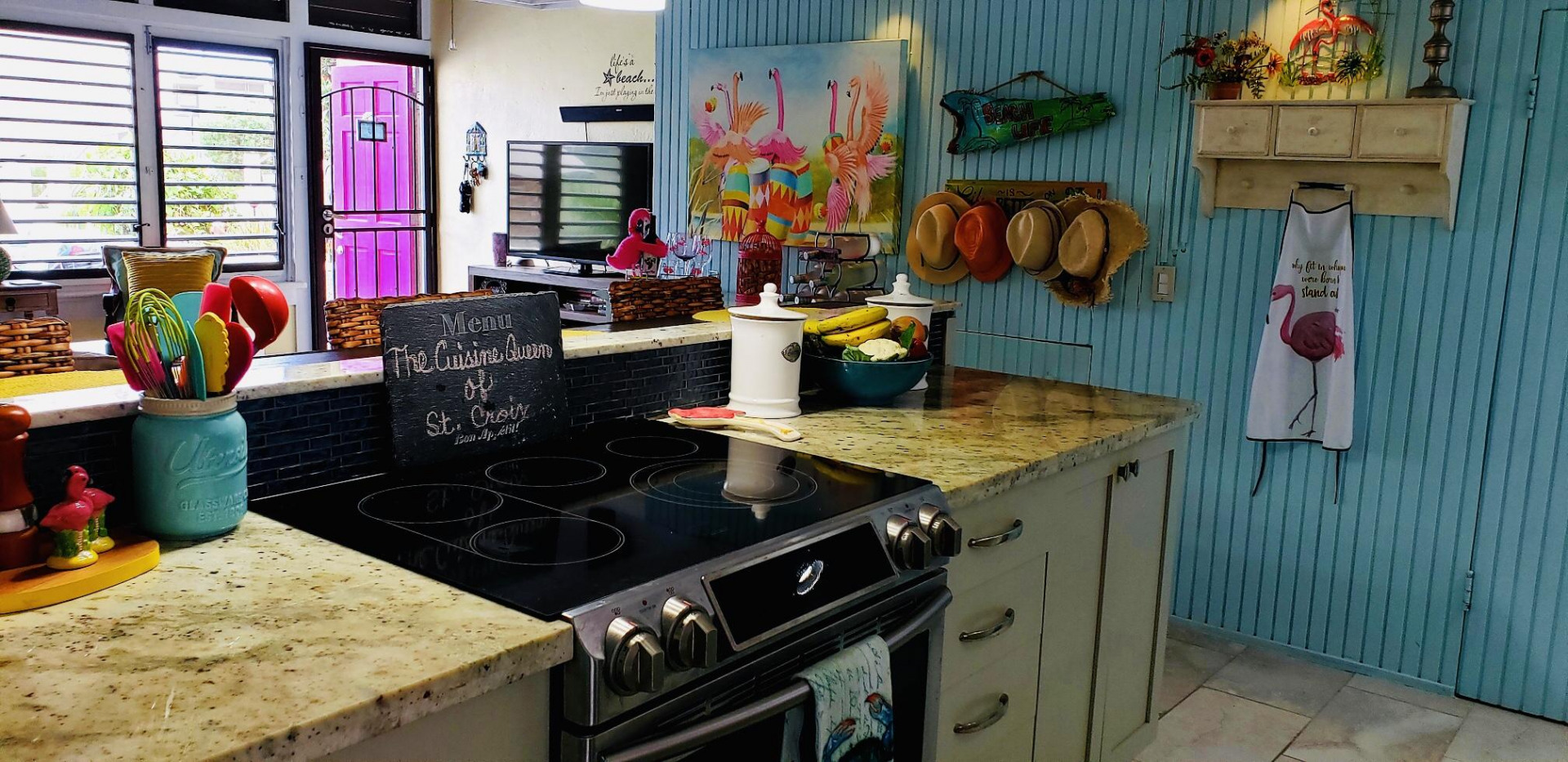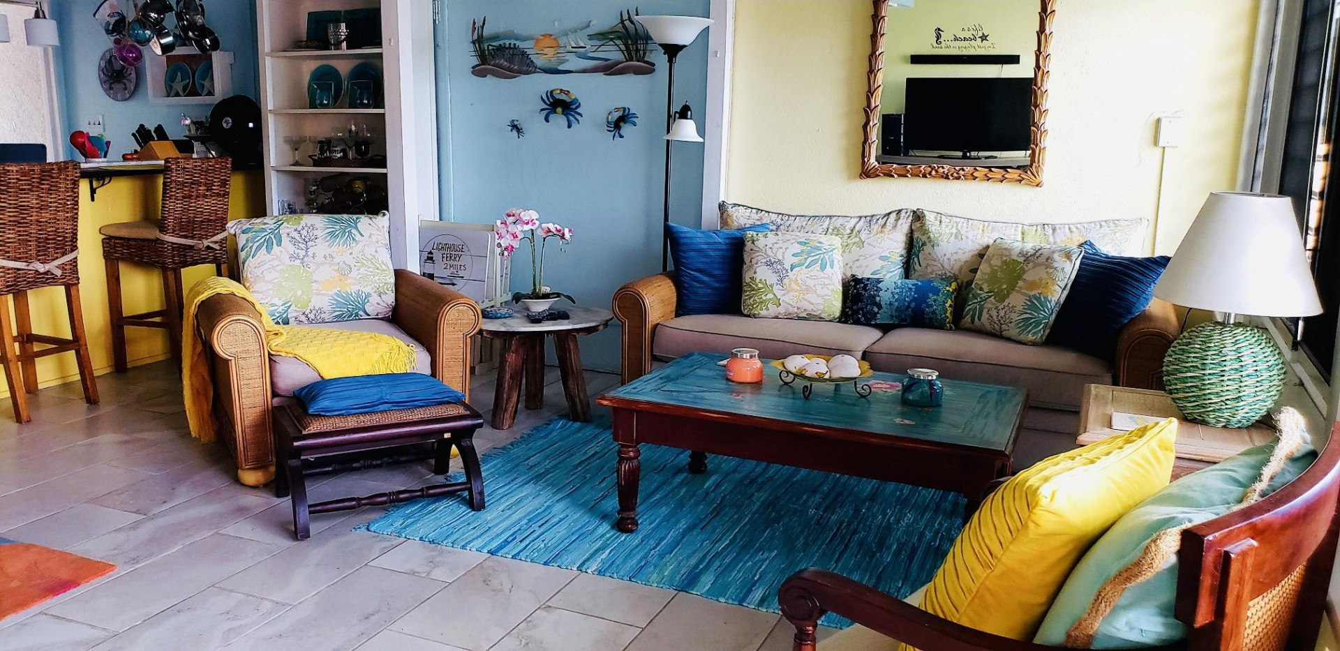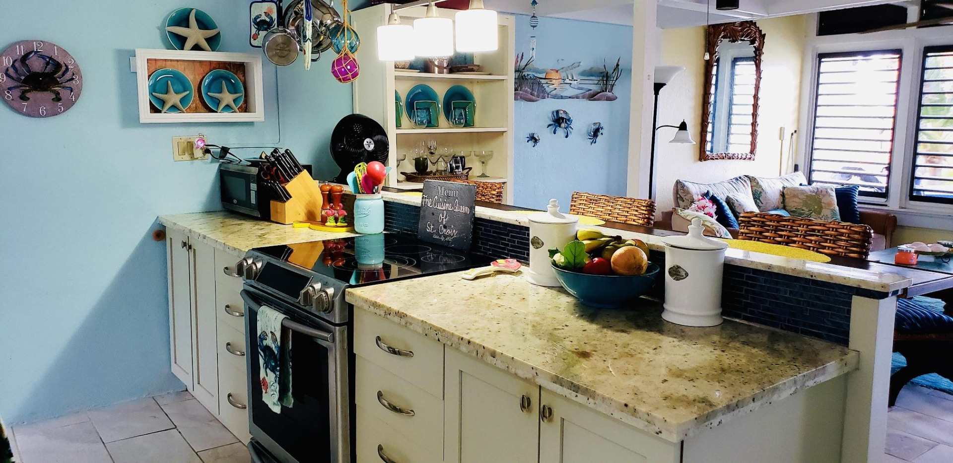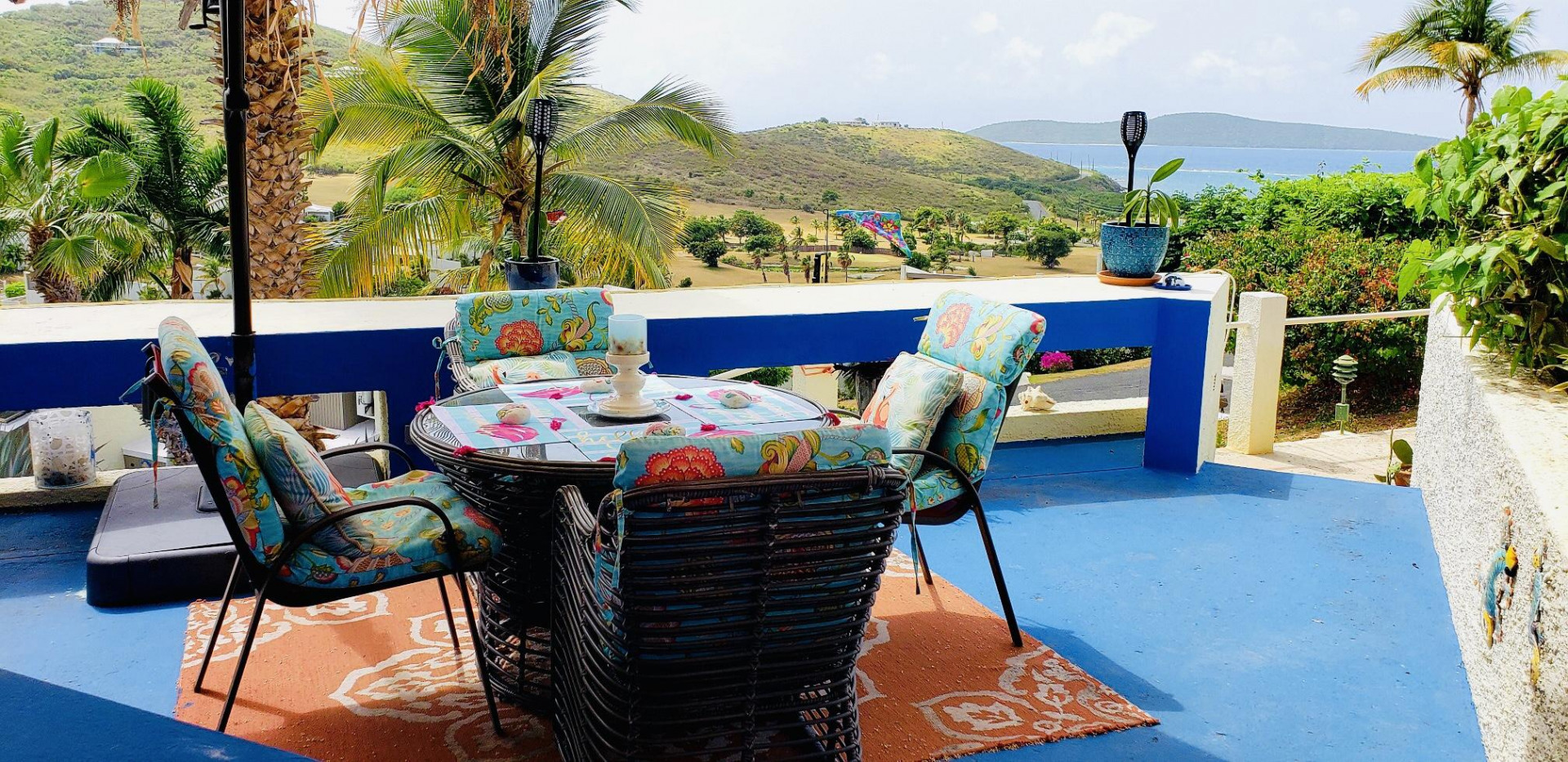 Paradise amongst the Golf Course and Palm Trees! This immaculately presented unit set amongst manicured grounds within a private and secure community, comes complete with 2 bedrooms and 1.5 bath, and retains the value of peaceful living while being conveniently close to the beach, restaurants and Casino. This loft style beauty is an open plan living space awash with natural light. Unit is completely furnished with tasteful, like new furnishings and decor, nice tile floors, granite countertops, stainless steel appliances, self closing kitchen cabinets, completely creating a style as timeless as the sparkling ocean view. Enjoy calming and captivating sea and Buck Island views from your spacious patio with your very own gas grill. Generator is hard-wired. Very good vacation rental history.