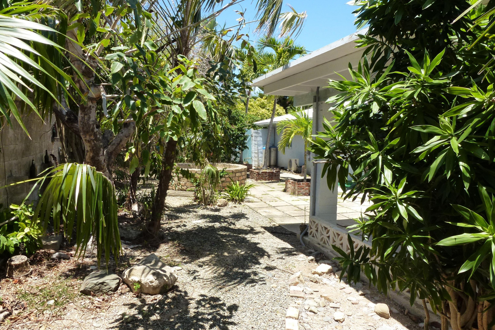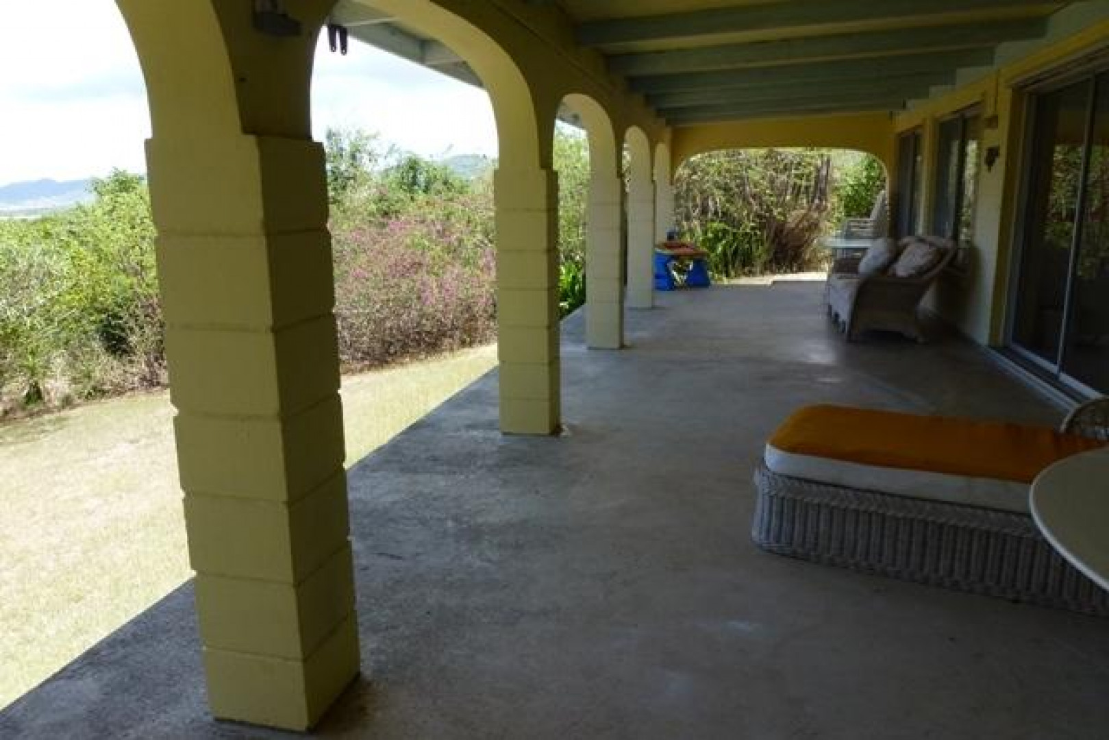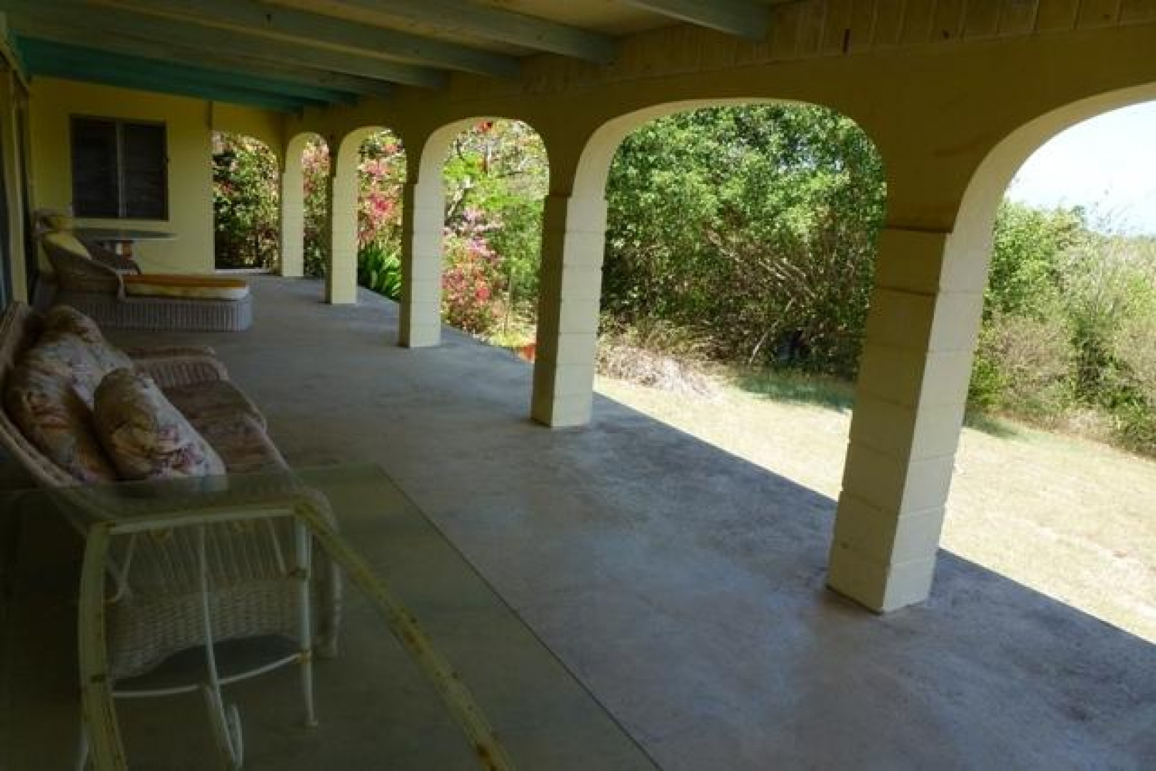 This well located & very private Crucian home on half acre located in Estate St. John offers great views, constant breezes thru wall to wall sliding glass doors, & easy, stress-free living. The expansive, arched, gallery overlooks the sea and C'sted harbor. A walled entrance patio, with fish pond (unstocked), that says "Come and Relax". Two large bedrooms, three bathrooms & another library/officeamong palm trees, bougainvillea and flowering trees which makes for a pleasant location to call a family home. Pets welcomed.
