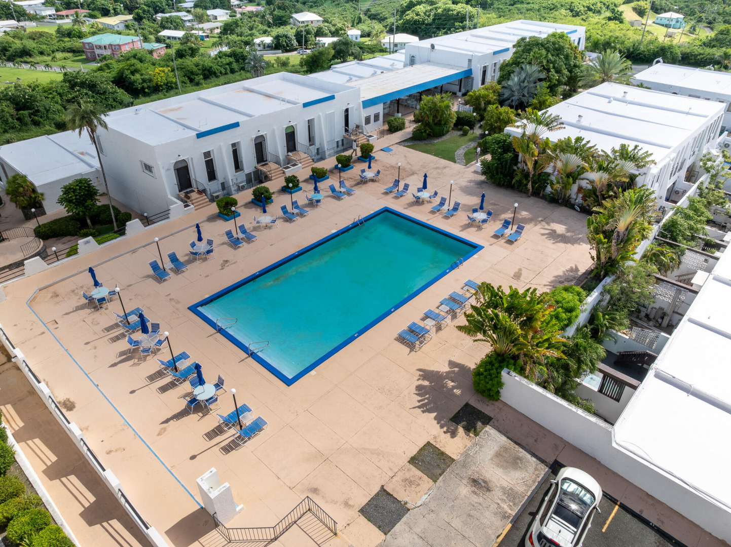 Enjoy easy island living from this freshly updated 2-story, 2-bedroom, 2.5-bath townhouse located just minutes from downtown Christiansted in a secure, gated complex. The walk-in floorplan features living, dining, kitchen, and laundry on the main level with both bedrooms upstairs for privacy.Recent upgrades include fresh paint, new ceiling fans, a new washer/dryer combo, soft-close cabinetry, and a vent fanAa'plus cool comfort from window A/C units.The complex offers great amenities including a large swimming pool, spacious sundeck, common areas, and an on-site management office. Whether you're looking for full-time island living or an easy lock-and-leave getaway, this home checks all the boxes!