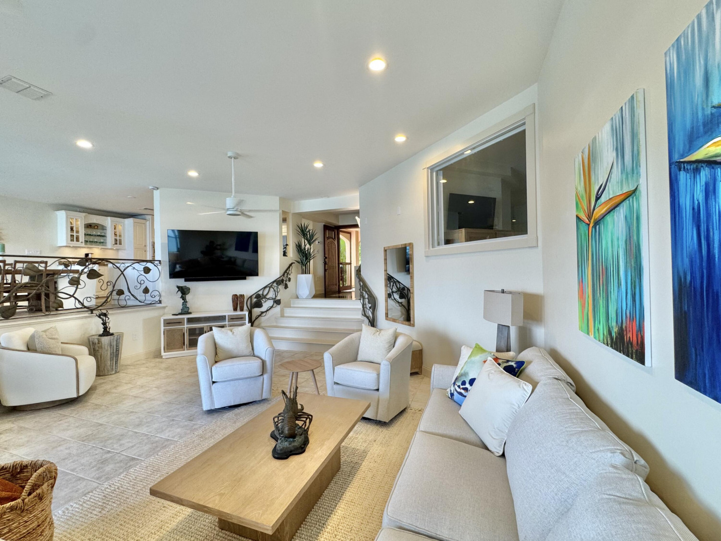 Luxurious and elegant 3-bedroom, 2-bath waterfront condo in the exclusive gated community of Carden Beach on St. Croix's East End. This split-level residence features vaulted ceilings, large windows, and panoramic views of the Caribbean Sea and Buck Island. A Chefs kitchen with granite counters, custom cabinetry, and high-end appliances and opened to a raised dining area overlooking the blue Caribbean Sea! Step onto the spacious covered terrace to dine or unwind to the sound of waves and the cooling trade winds. Completely renovated, furnished and beautifully decorated. This turnkey condo offers resort-style amenities including a waterfront pool, tennis court, fitness center, storage, generator, and 24-hour security, all within 10 minutes from beaches, dining, and historic ChristianstedThis 3-bedroom, 2-bathroom waterfront condo is a showcase of craftsmanship and design, blending high-quality finishes with breathtaking views of Buck Island and the Caribbean Sea.