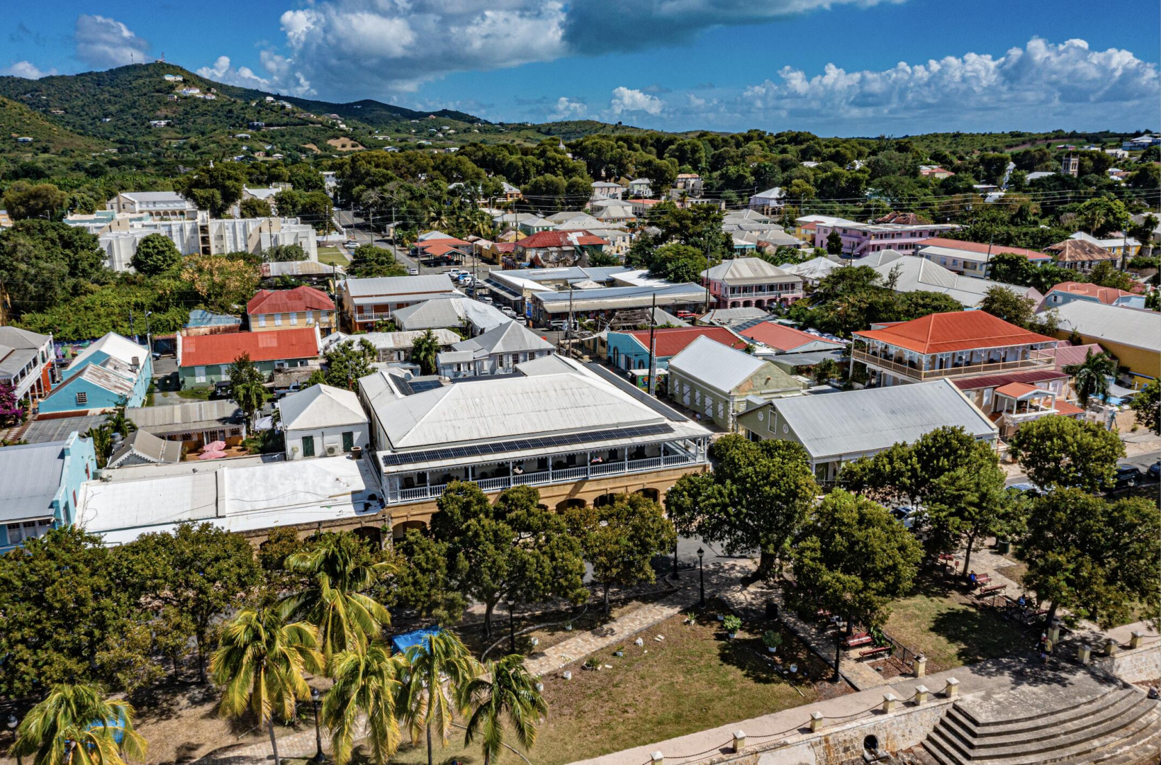 Located on the waterfront in historic Frederiksted, this versatile property offers prime commercial potential and comes with solar and a large generator. Fully renovated, the upper level features modern office spaces and an apartment, all complemented by a charming wraparound gallery with stunning views of the Caribbean Sea. Below, an updated space currently operates as a laboratory, with an adjacent expansive and high-ceilinged area ideal for retail, restaurant, or hospitality use. Positioned along the vibrant Strand Street, this property presents endless possibilities, from boutique hotel conversion to a dynamic mixed-use space, all within walking distance to beaches, restaurants, and the iconic Frederiksted Pier. The US Virgin Islands offers advantageous tax benefits to US companies.This exceptional commercial property in the heart of historic Frederiksted presents a rare opportunity to own a versatile, energy-efficient space in a prime waterfront location. Designed to accommodate a variety of business ventures, this building offers high-end office spaces, a modern laboratory, and expansive open commercial areas with endless possibilities.